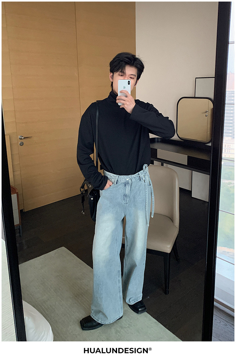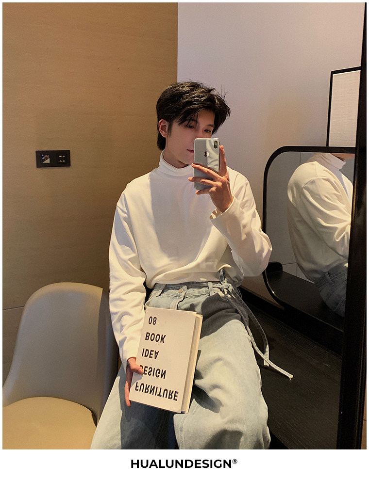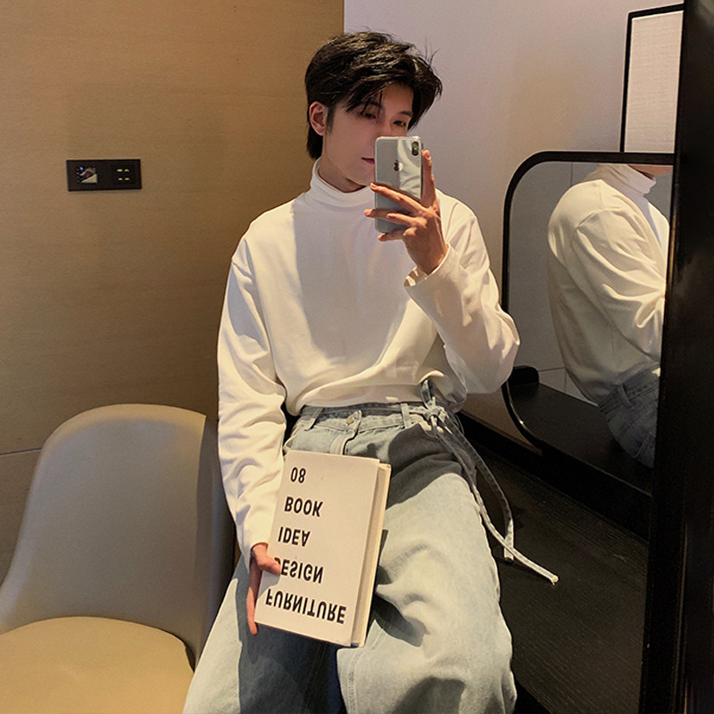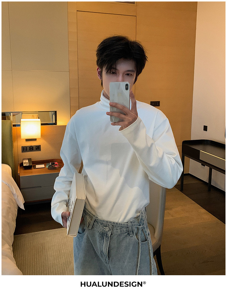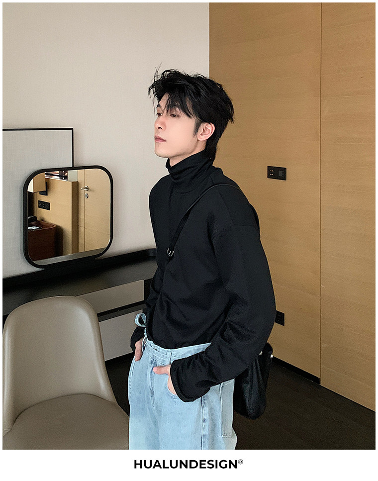 Демисезонная черная футболка, базовый приятный телу трендовый лонгслив, в корейском стиле, высокий воротник