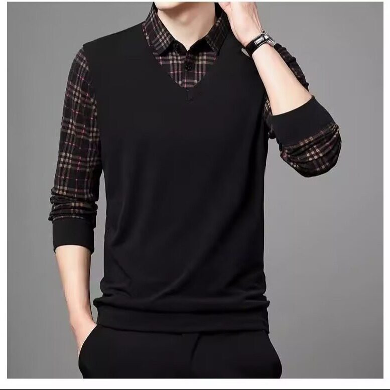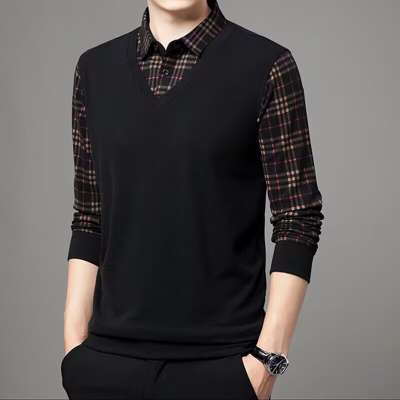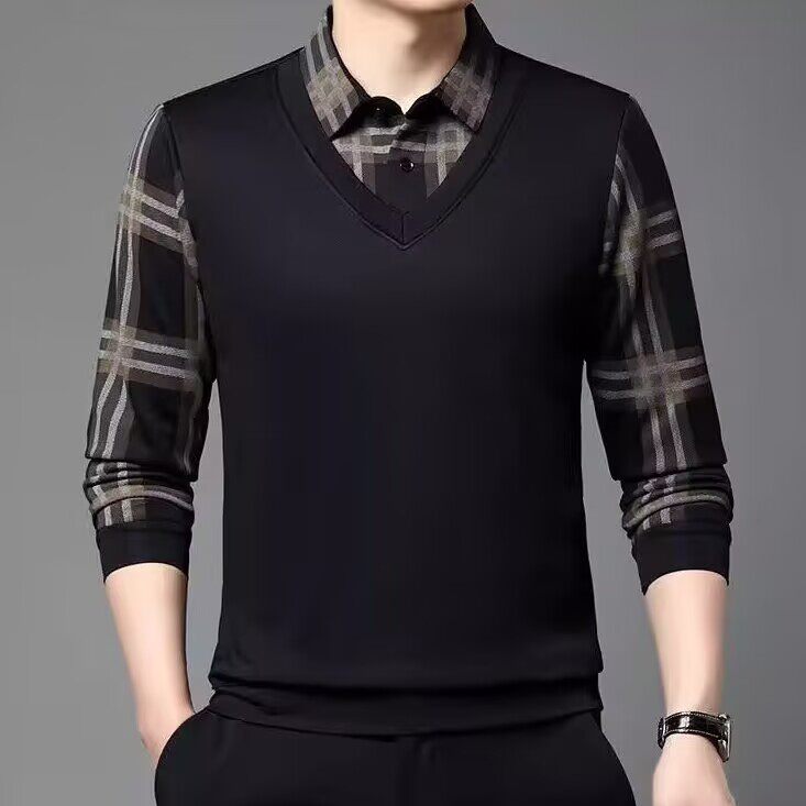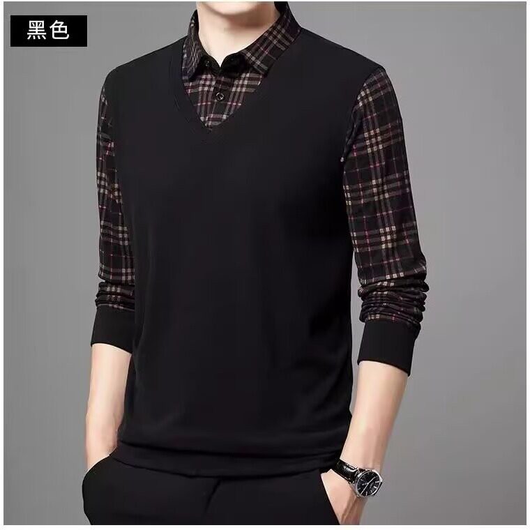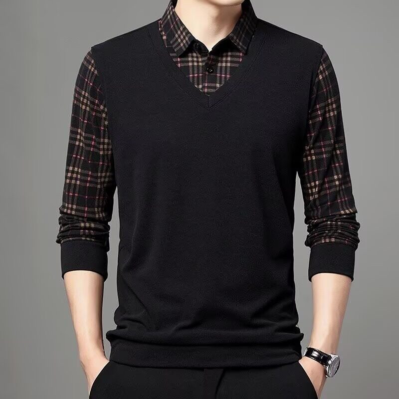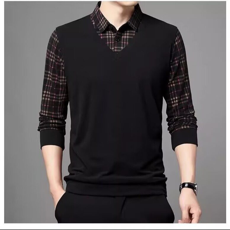 Высококлассный комплект, рубашка, демисезонная футболка polo, лонгслив, имитация рубашки, большой размер