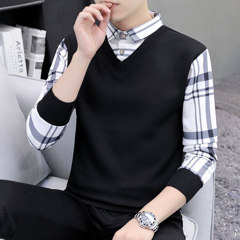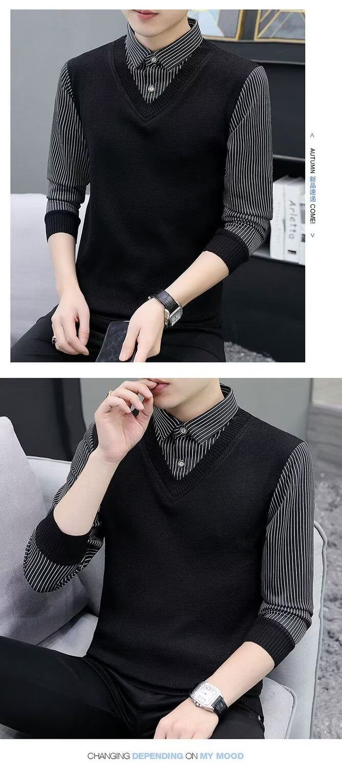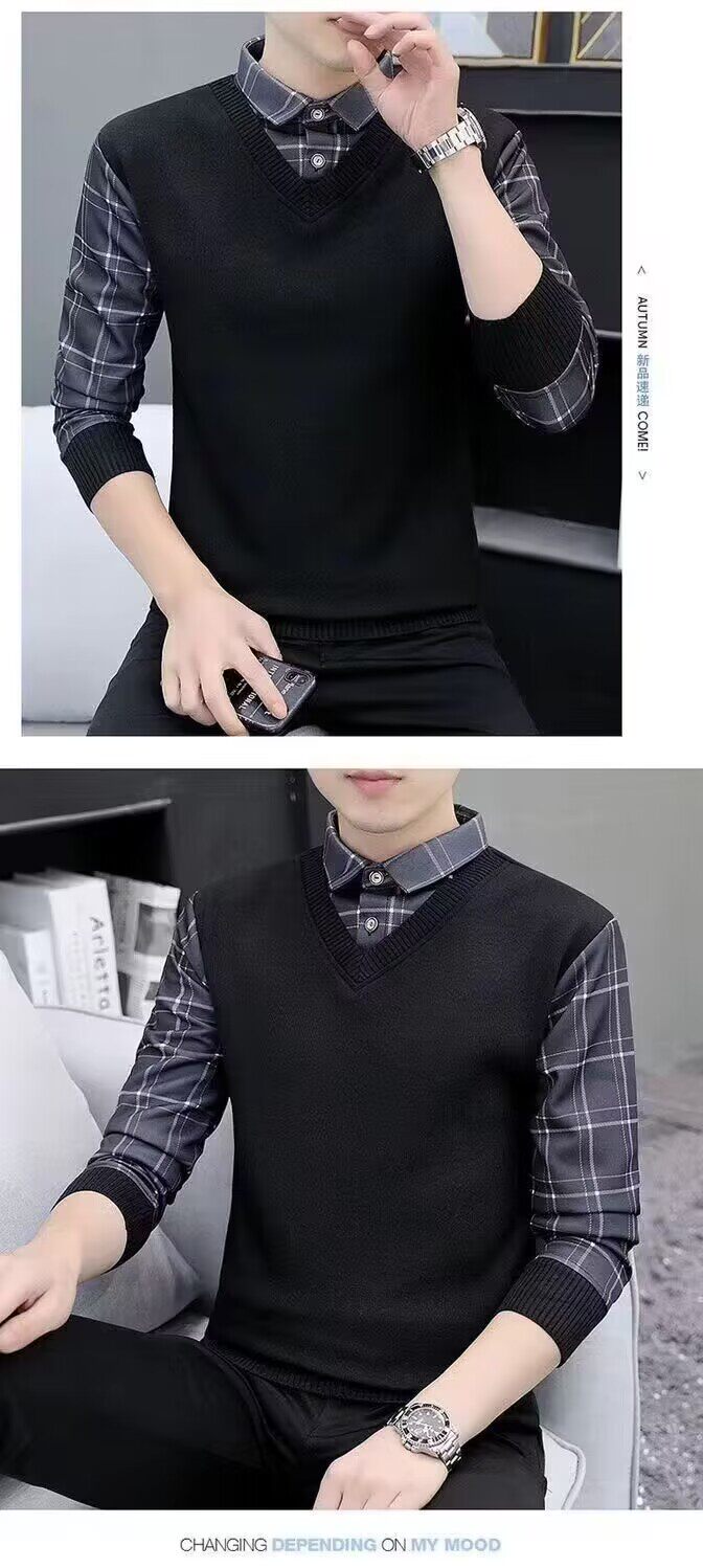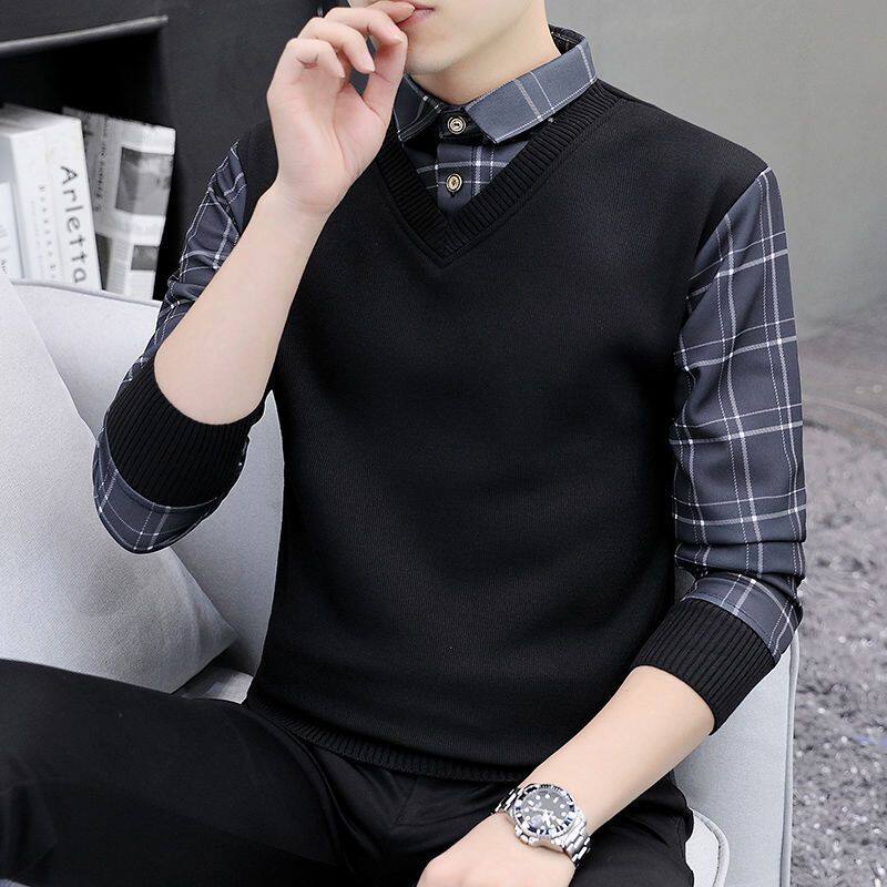 Высококлассный комплект, рубашка, демисезонная футболка polo, лонгслив, имитация рубашки, большой размер
