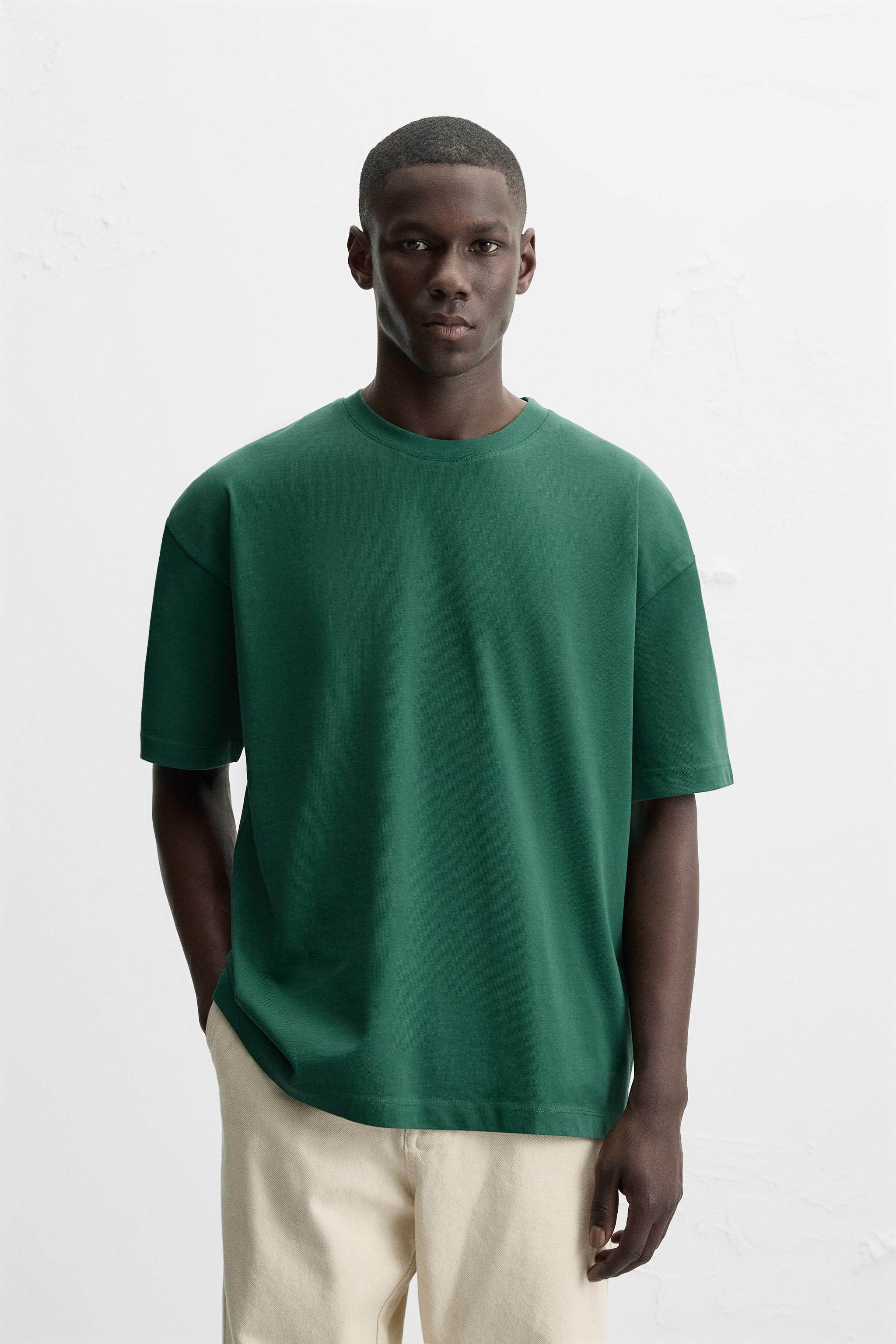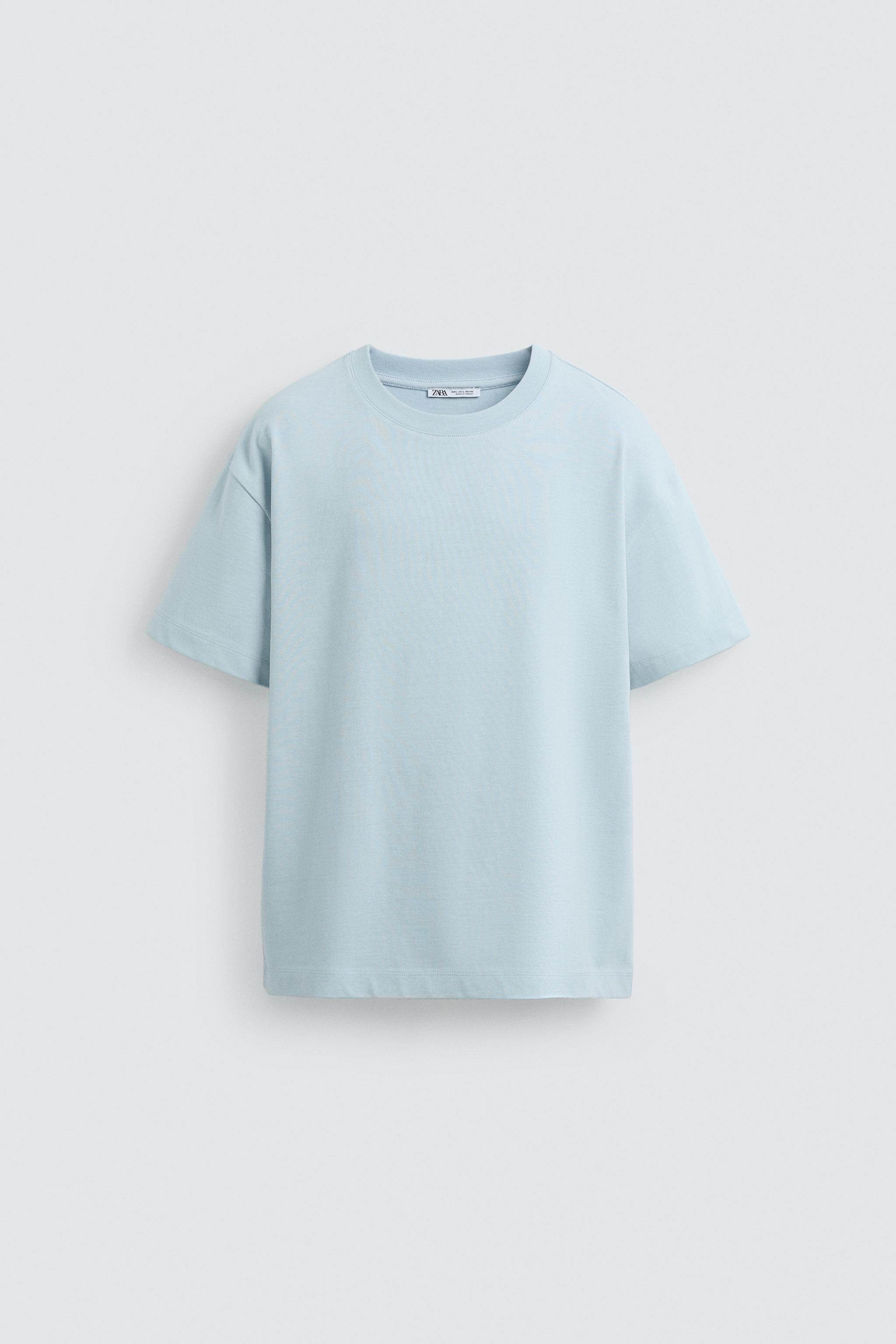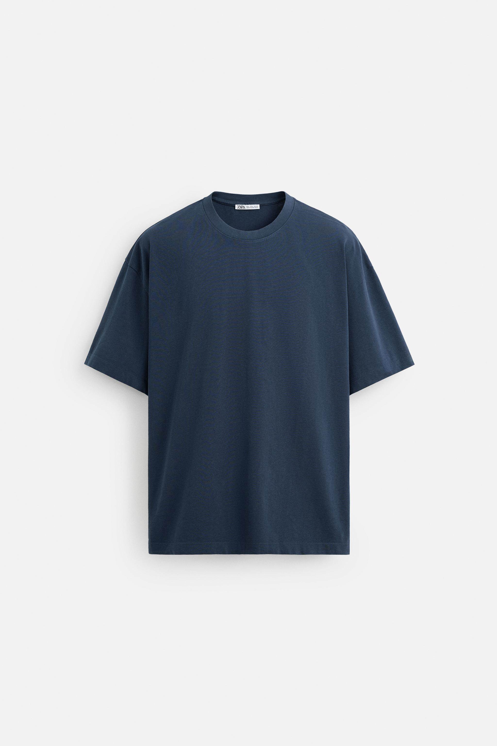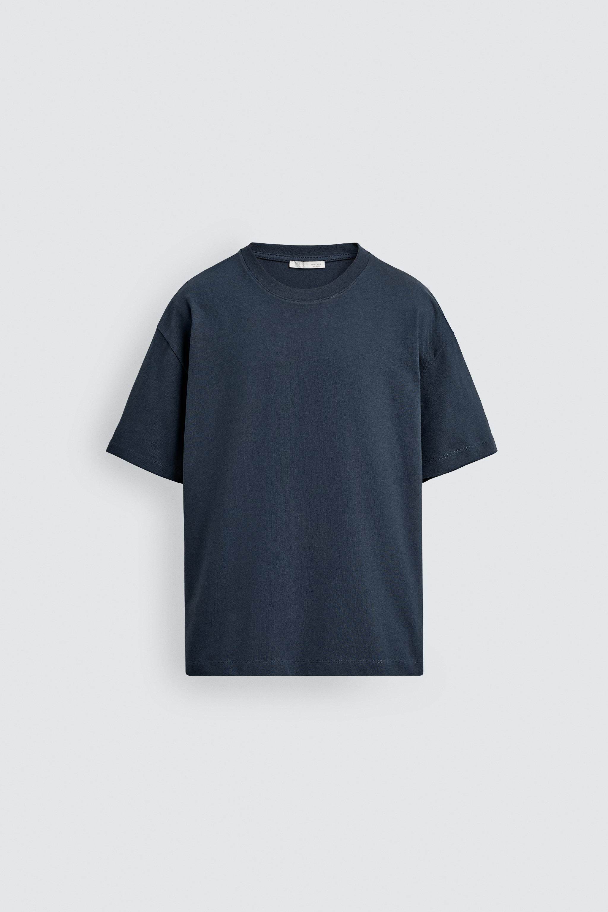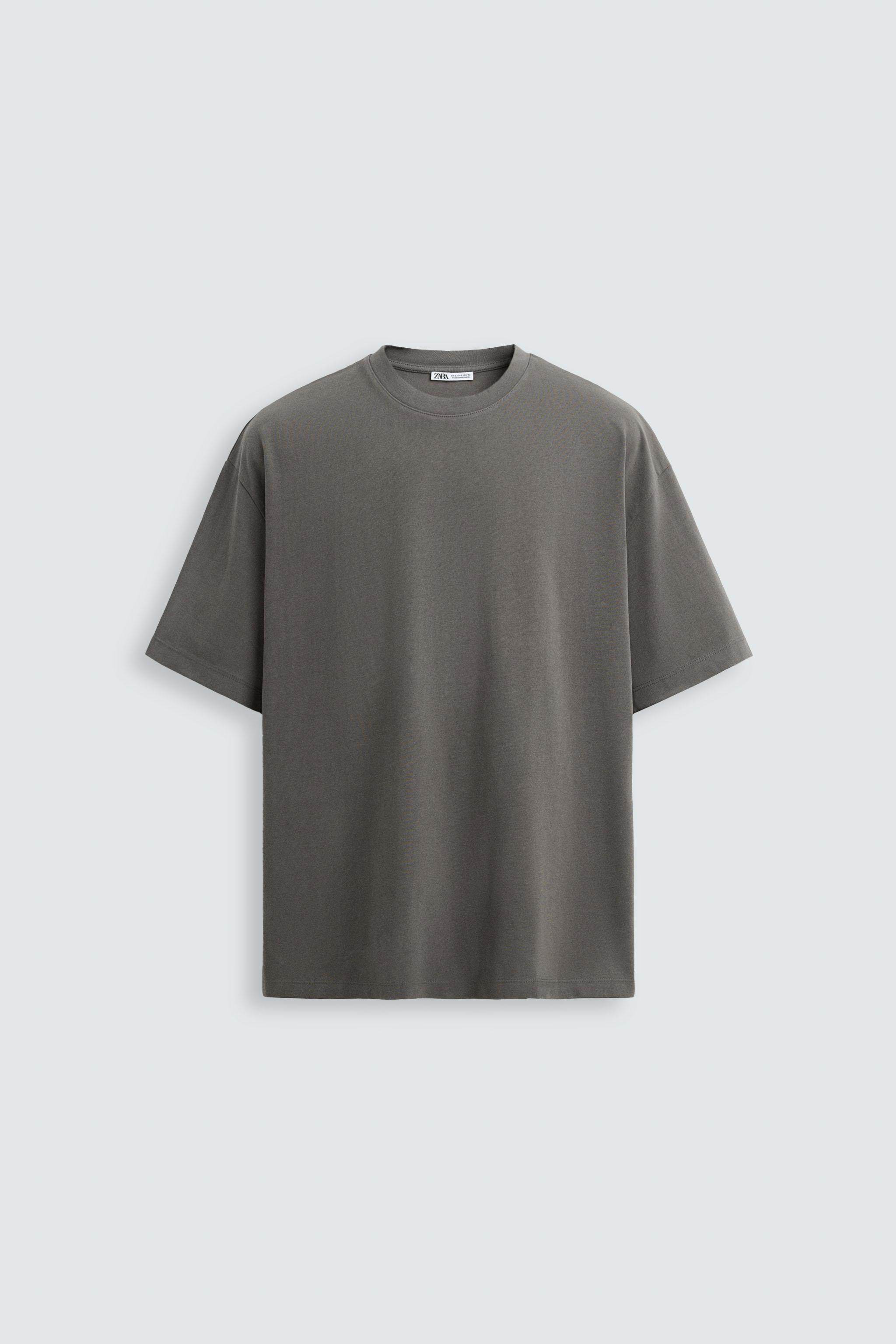 ZARA Сезонная мужская многоцветная хлопковая тяжелая свободная простая повседневная футболка с короткими рукавами со скидкой 1887455
