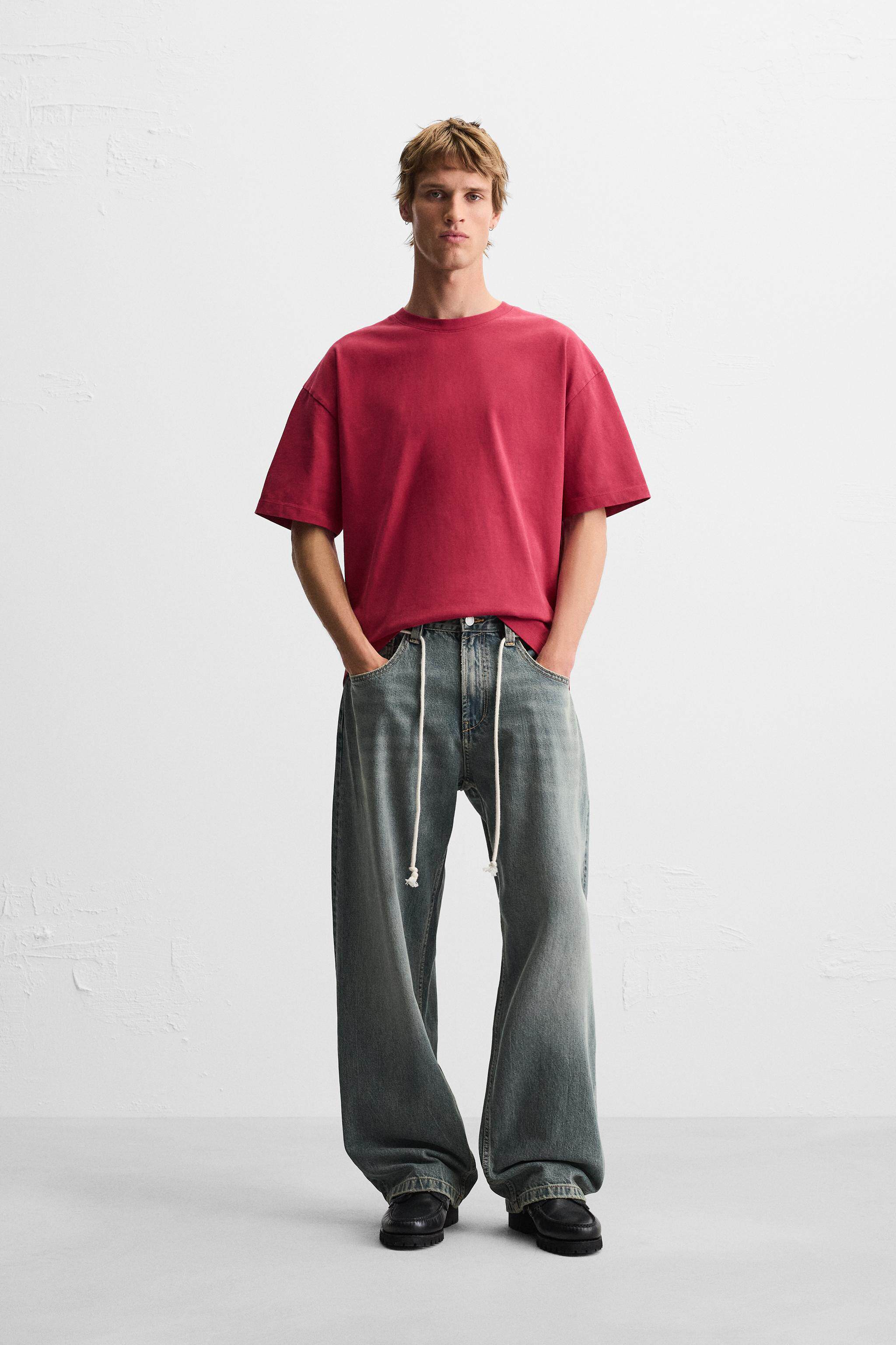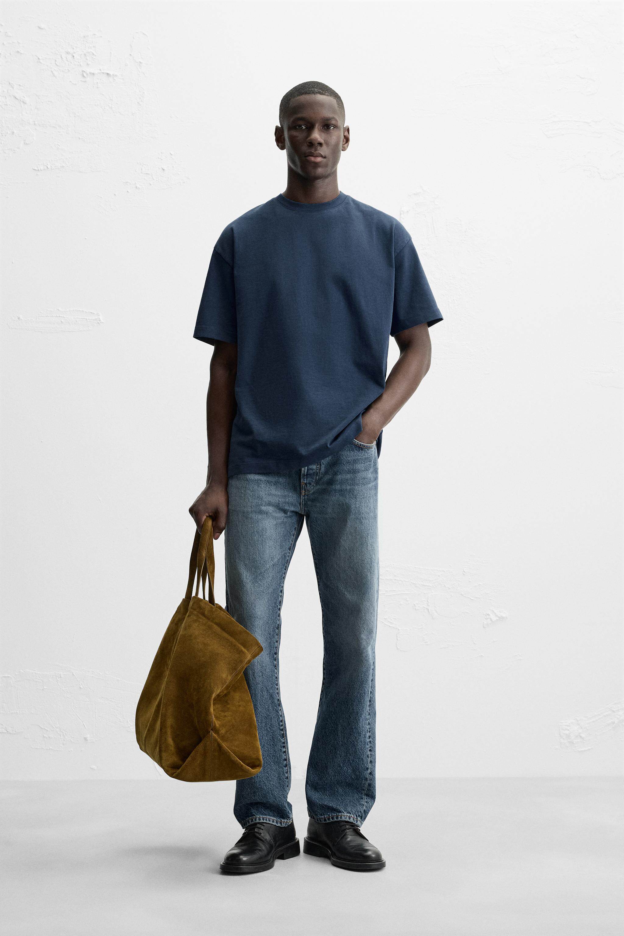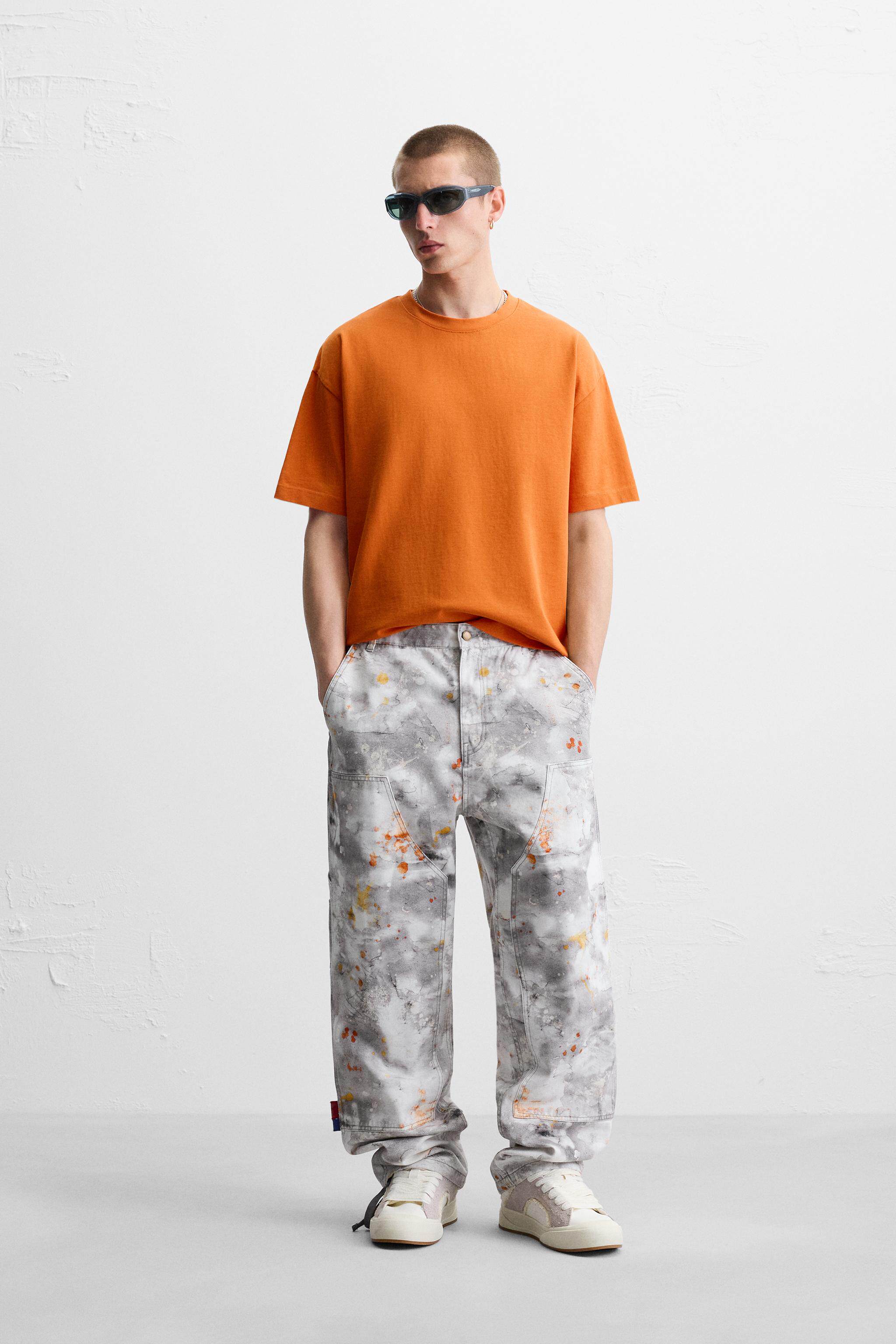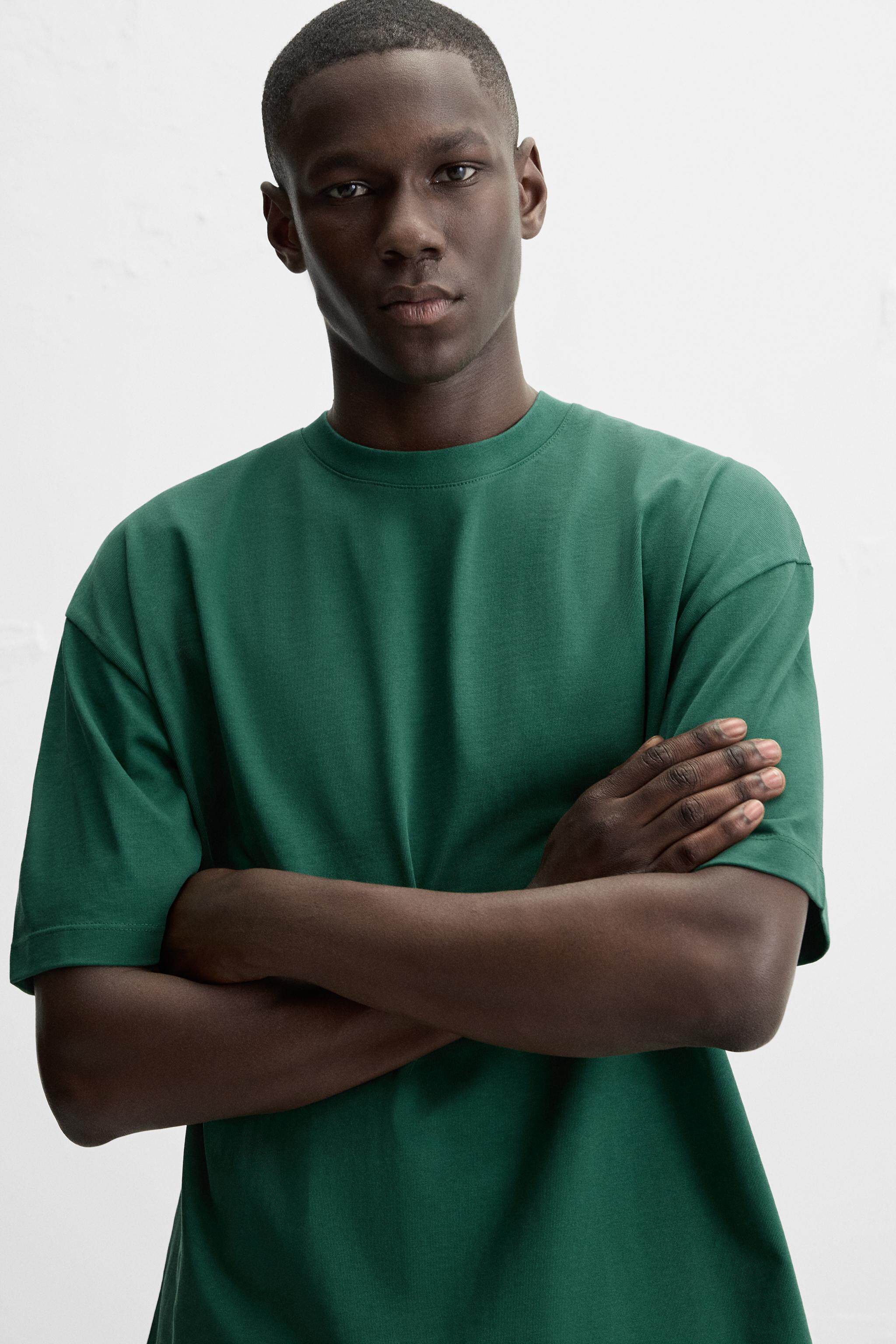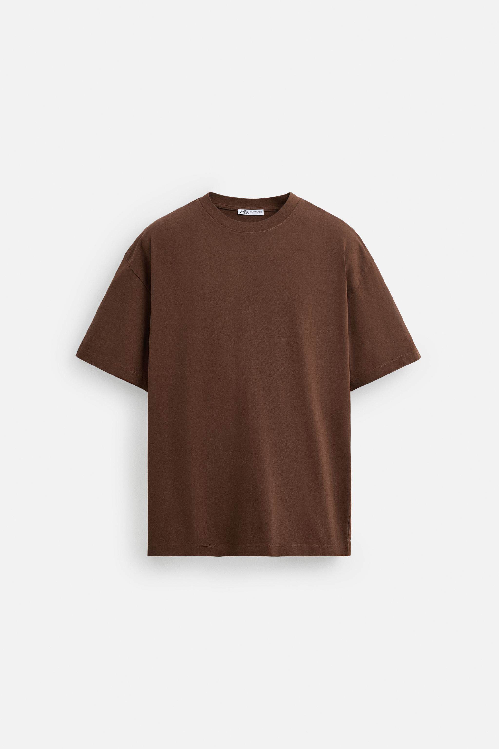ZARA Сезонная мужская многоцветная хлопковая тяжелая свободная простая повседневная футболка с короткими рукавами со скидкой 1887455
