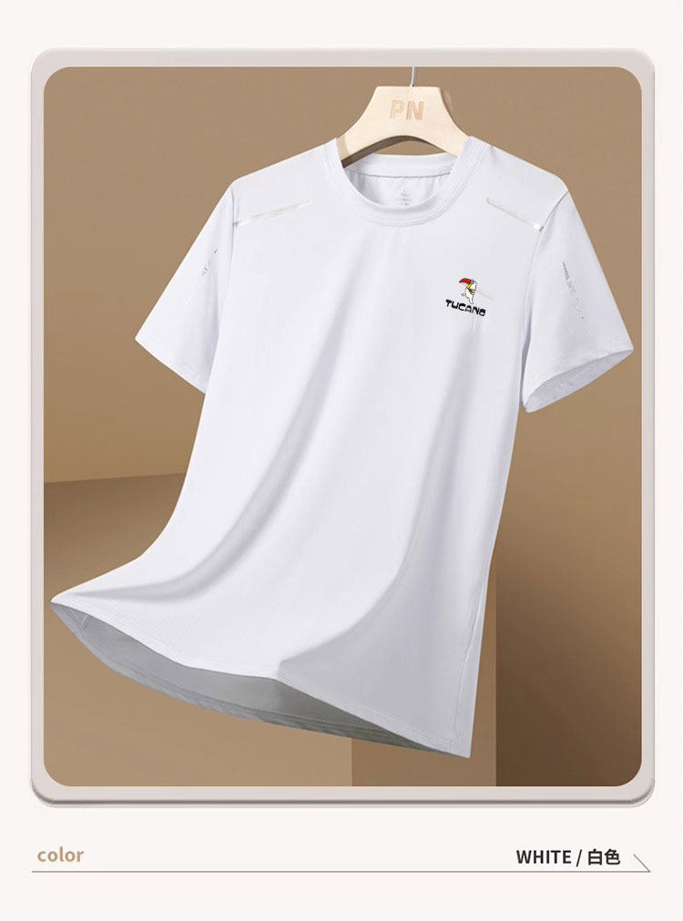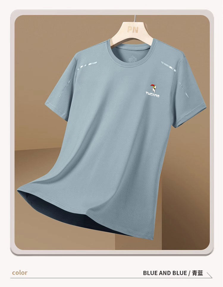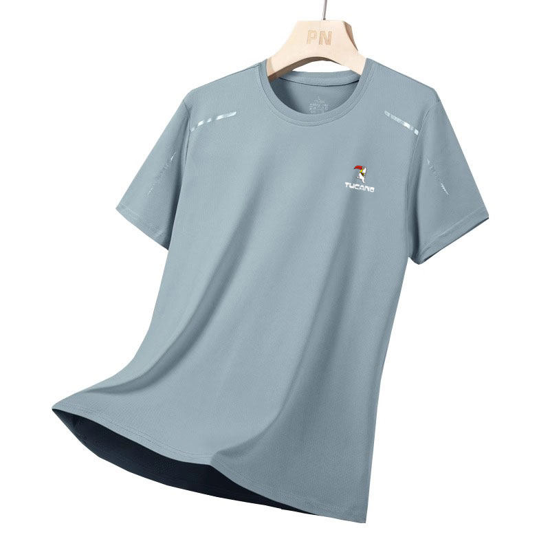 Тонкая спортивная летняя шелковая дышащая быстросохнущая футболка с коротким рукавом для отдыха, для бега