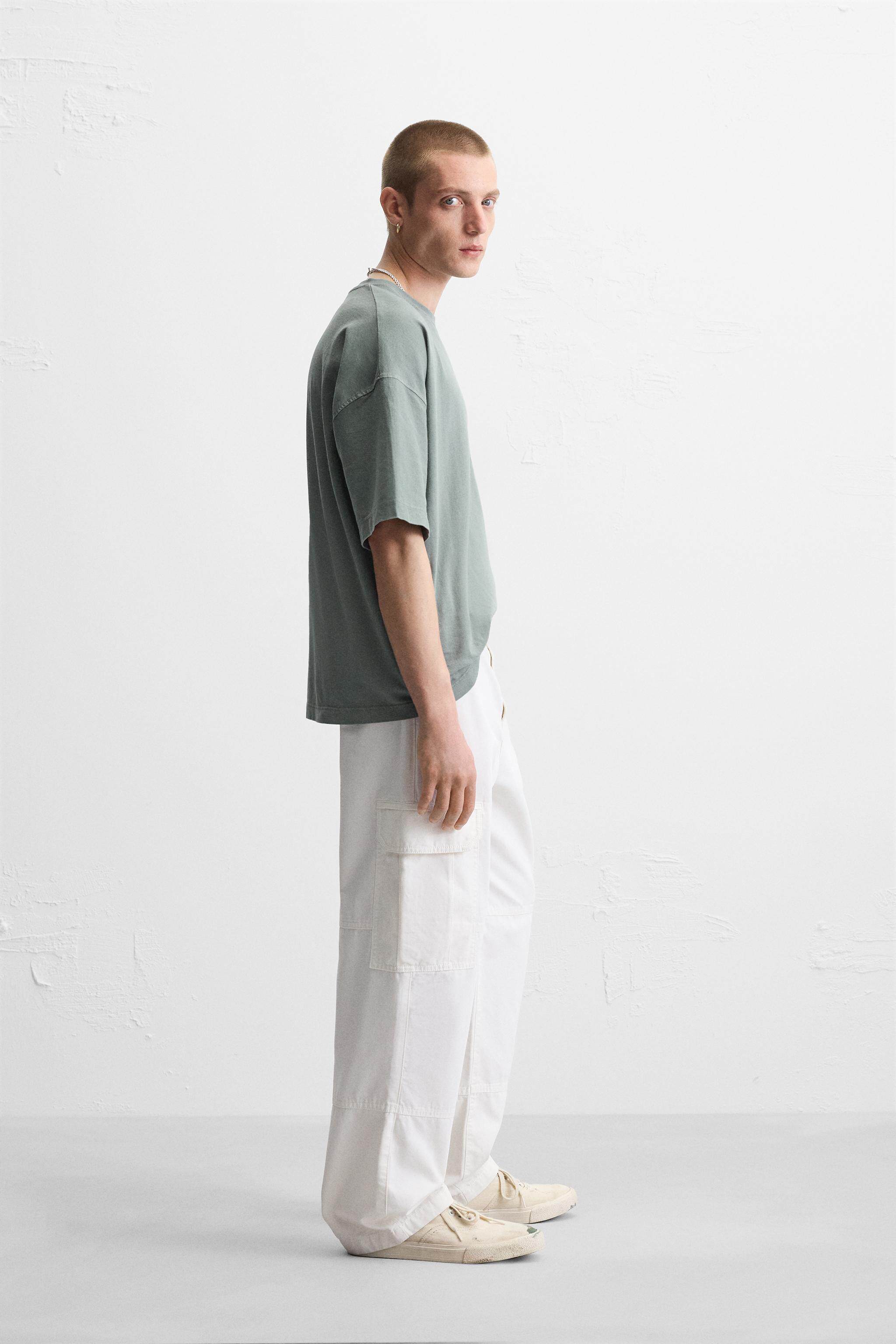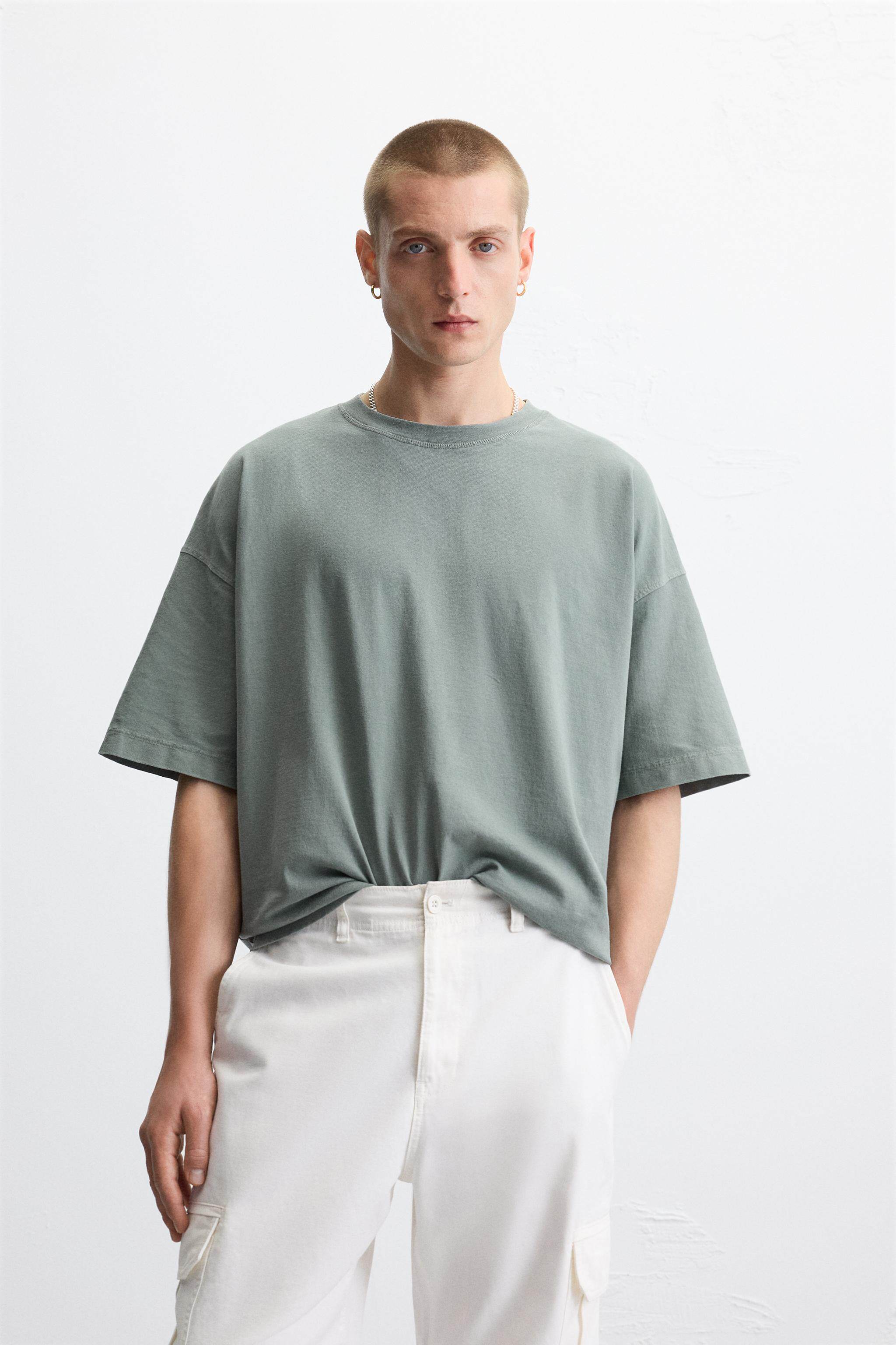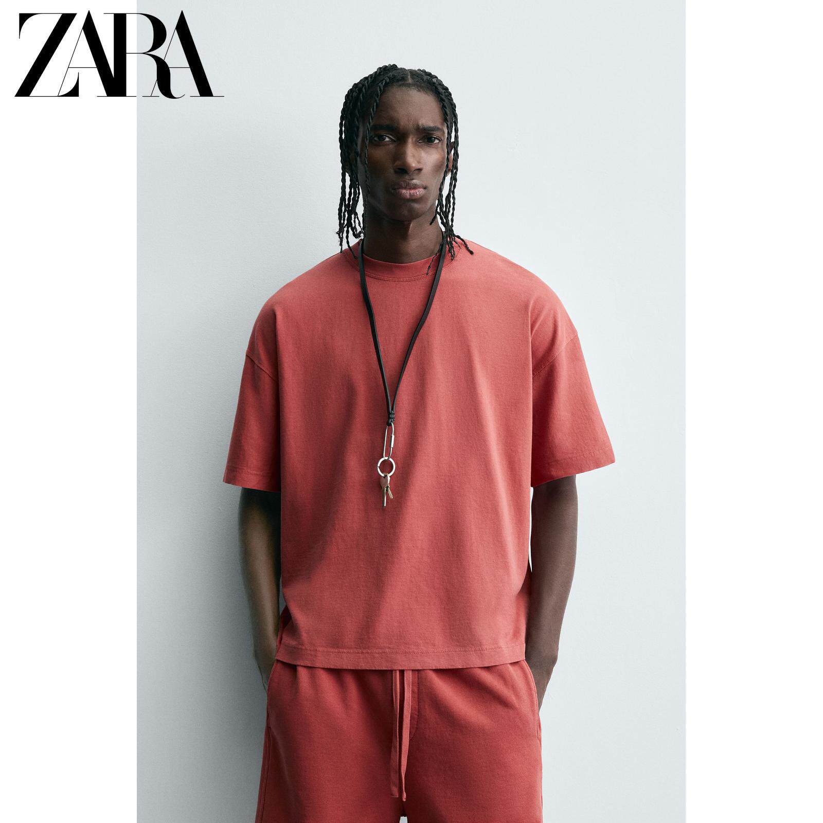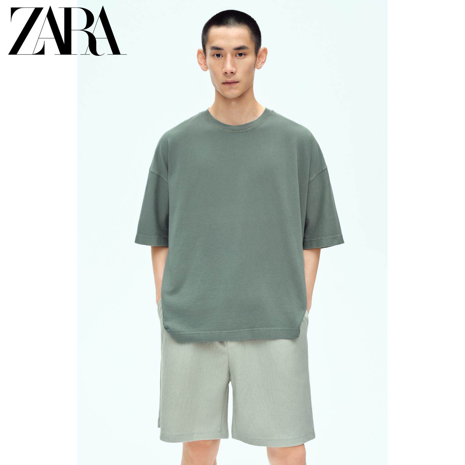 ZARA Сезонная мужская многоцветная футболка свободного кроя с круглым вырезом и короткими рукавами со скидкой 6462400
