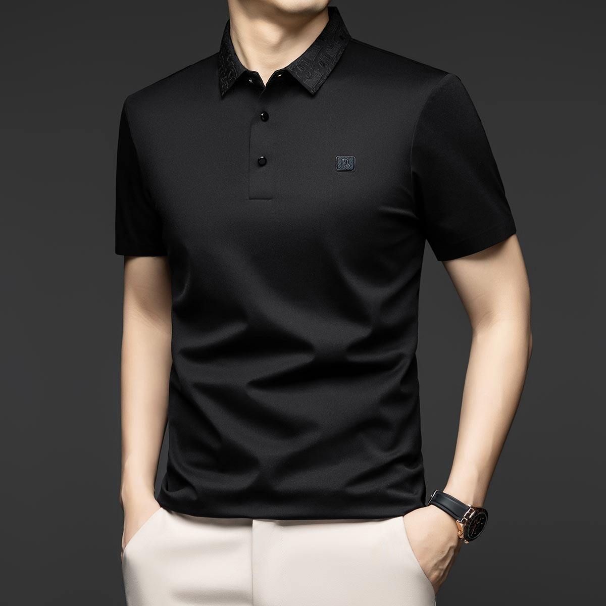 Шелковая летняя футболка с коротким рукавом, модная футболка polo, с вышивкой