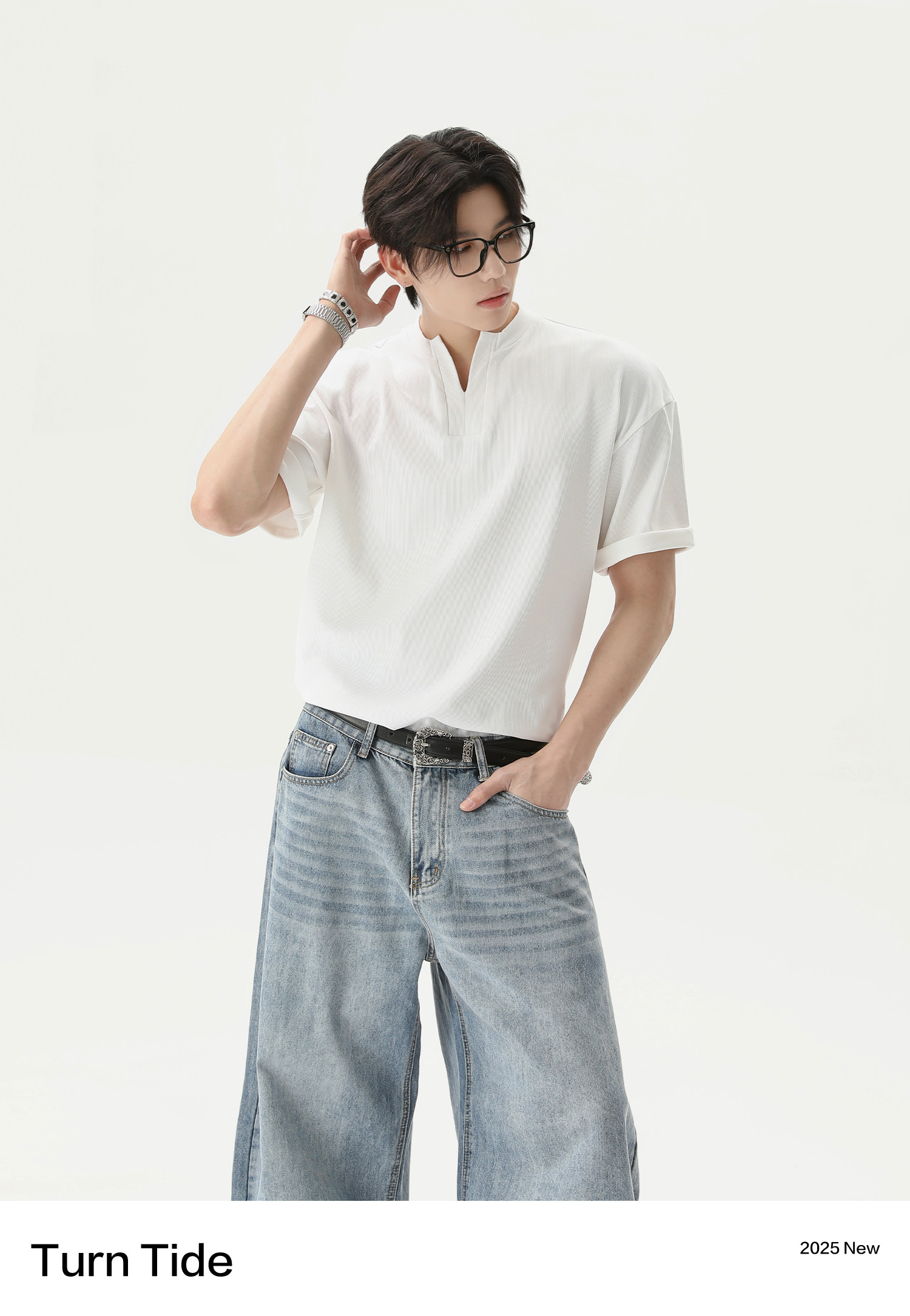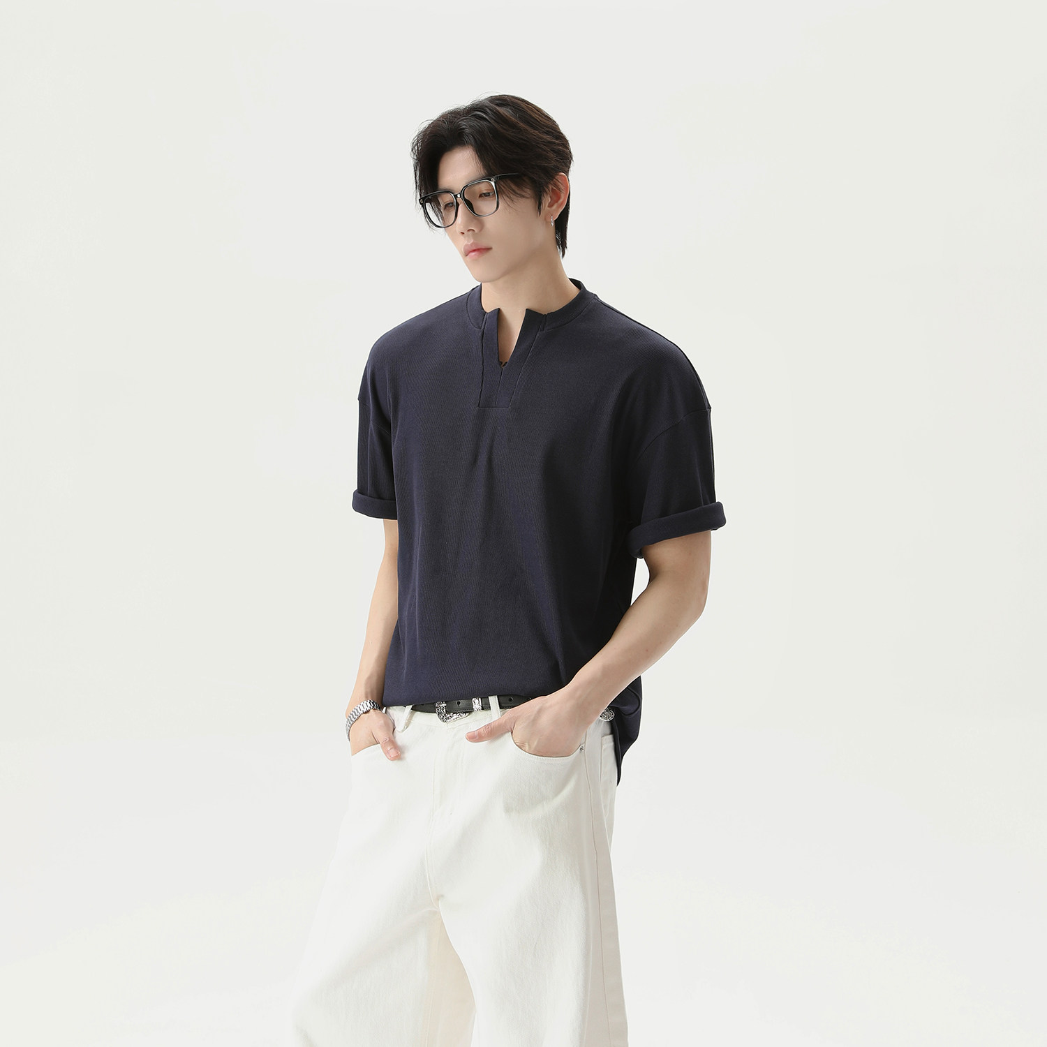 Ретро дизайнерская летняя футболка, в американском стиле, V-образный вырез, оверсайз