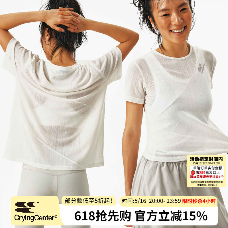CryingCenter Полупрозрачный с наклонным разрезом, тонкий/свободный, с короткими рукавами, плаксивый центр