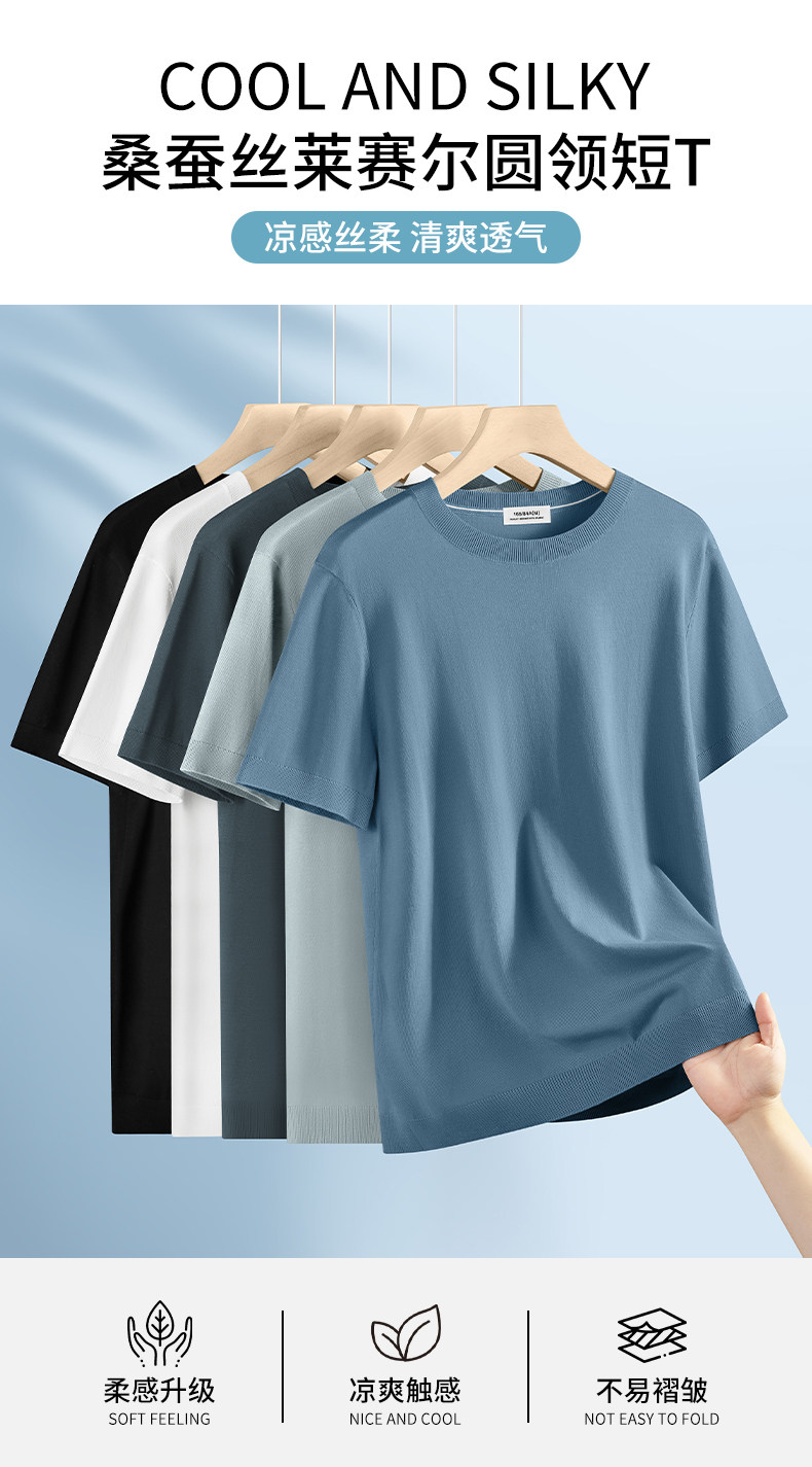 Шелковая демисезонная дышащая трикотажная футболка с коротким рукавом