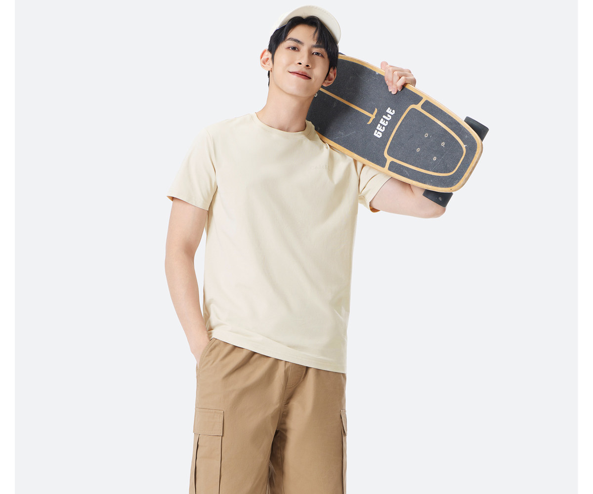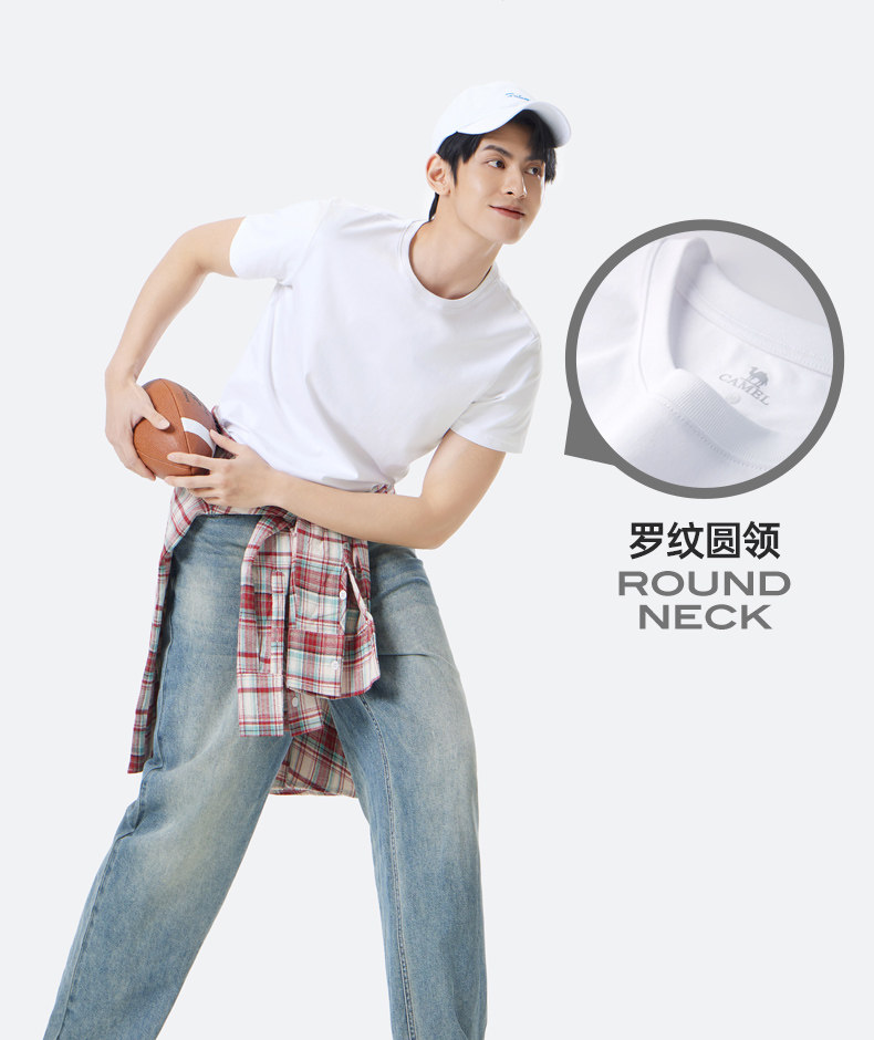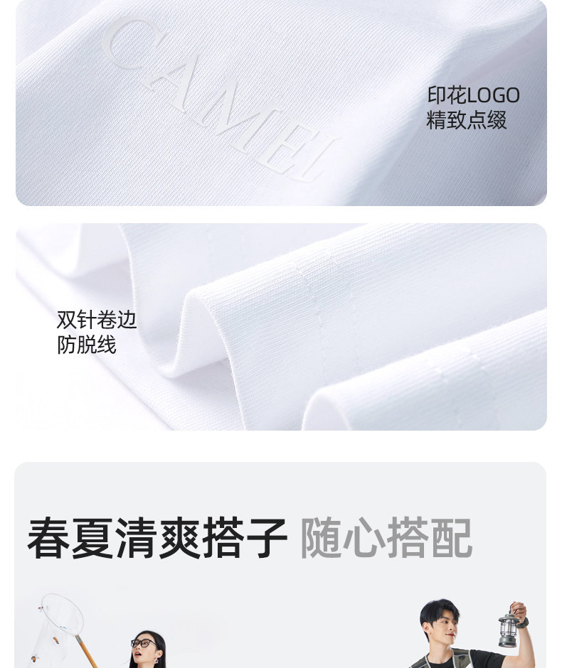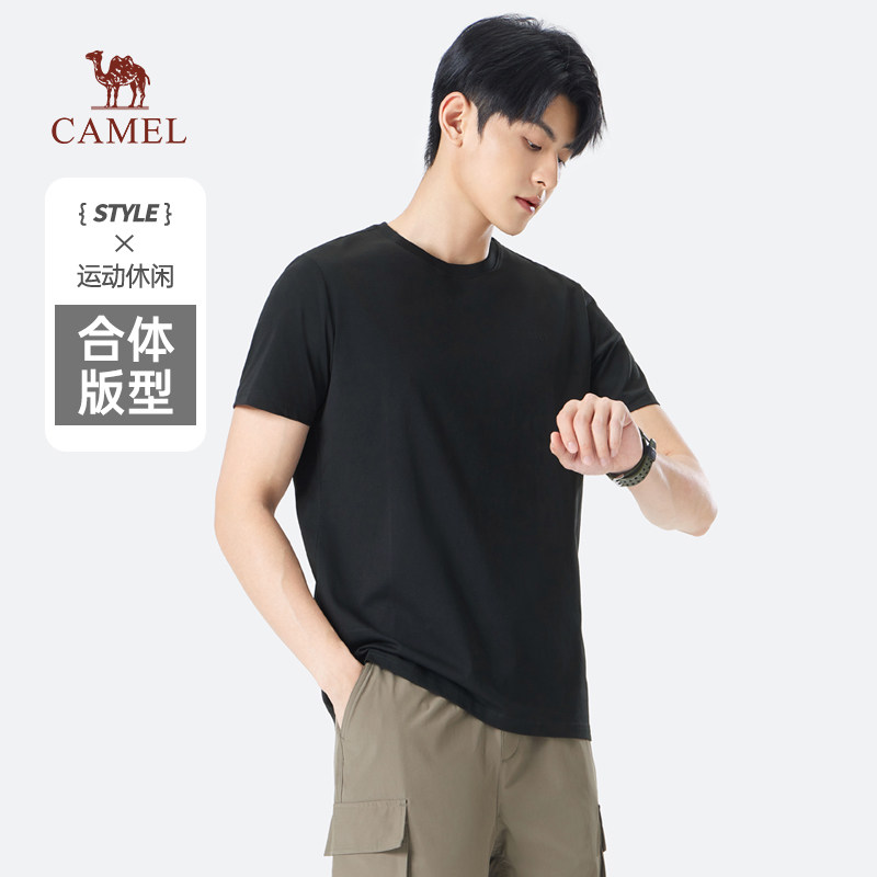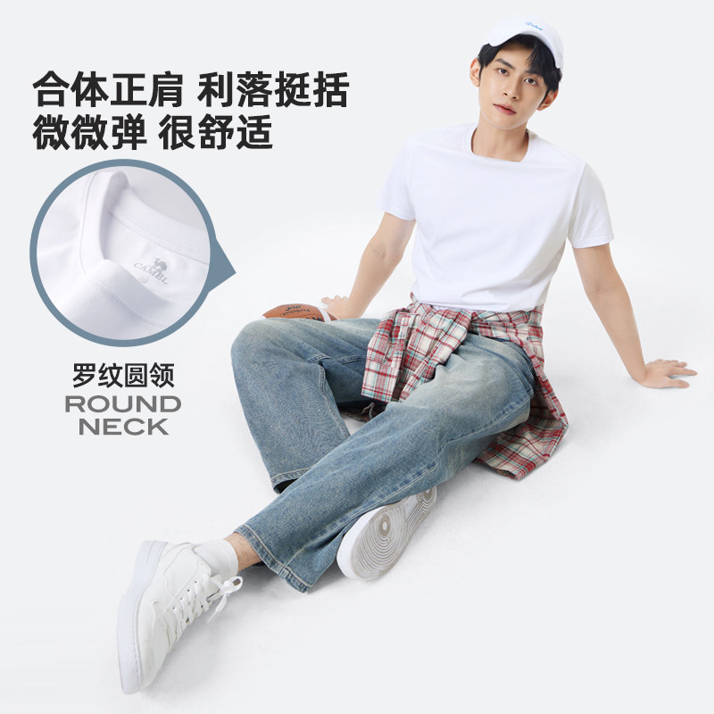 Мужская однотонная футболка Camel с коротким рукавом. Лето 2025. Новинка хлопка, дышащая, прохладная, повседневная. Белая мужская футболка в парном стиле.