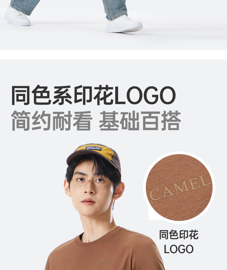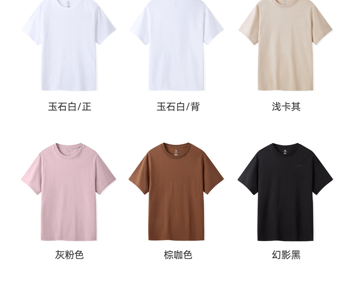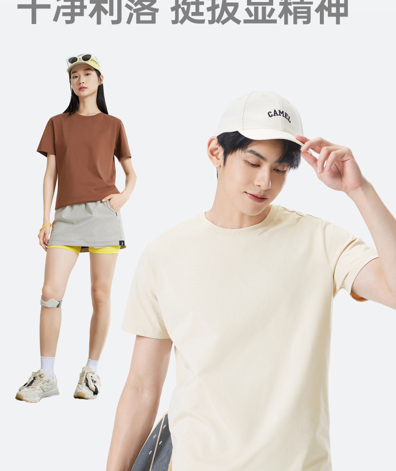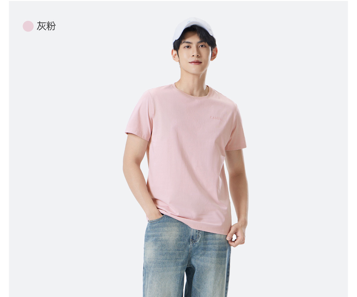Мужская однотонная футболка Camel с коротким рукавом. Лето 2025. Новинка хлопка, дышащая, прохладная, повседневная. Белая мужская футболка в парном стиле.