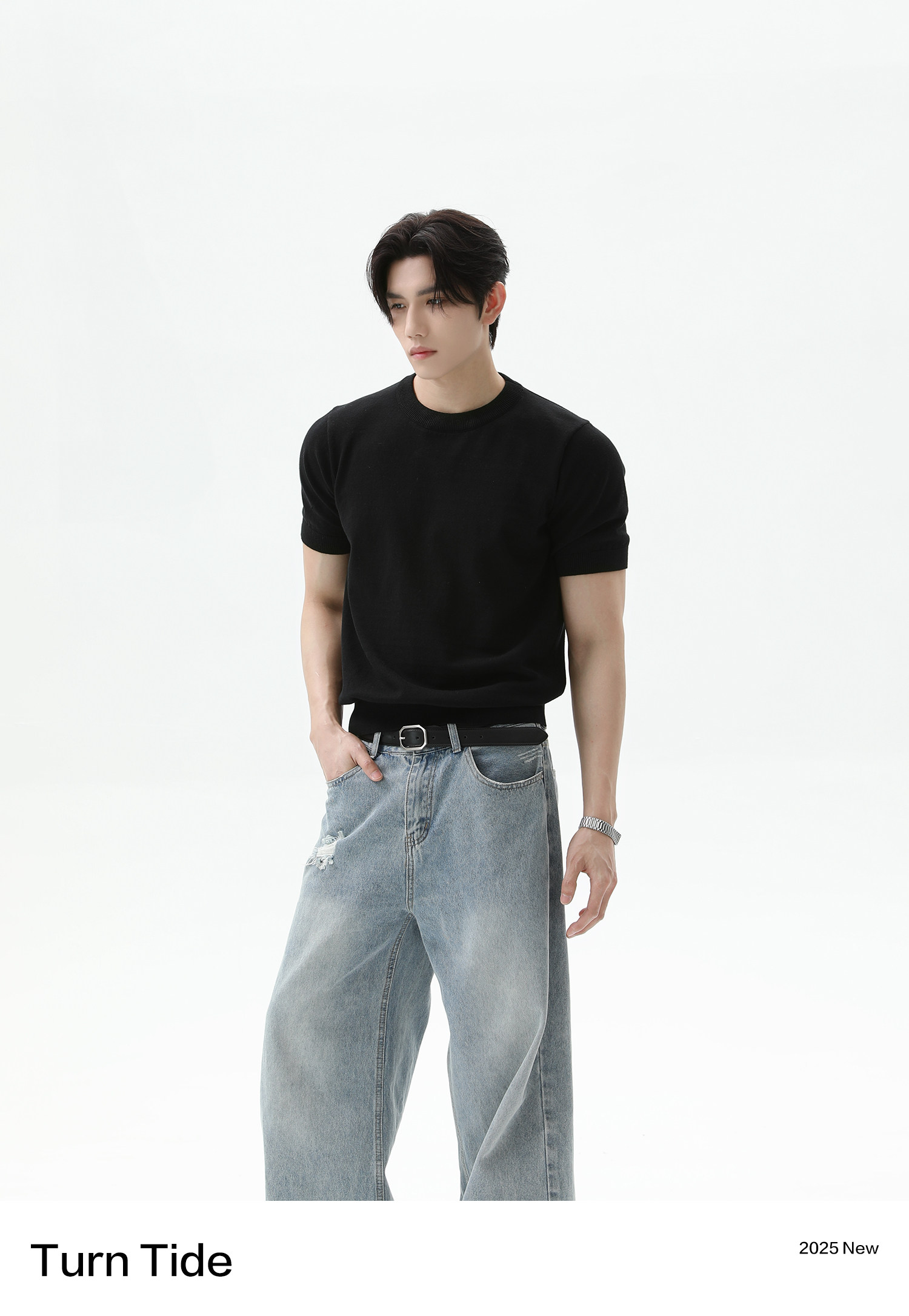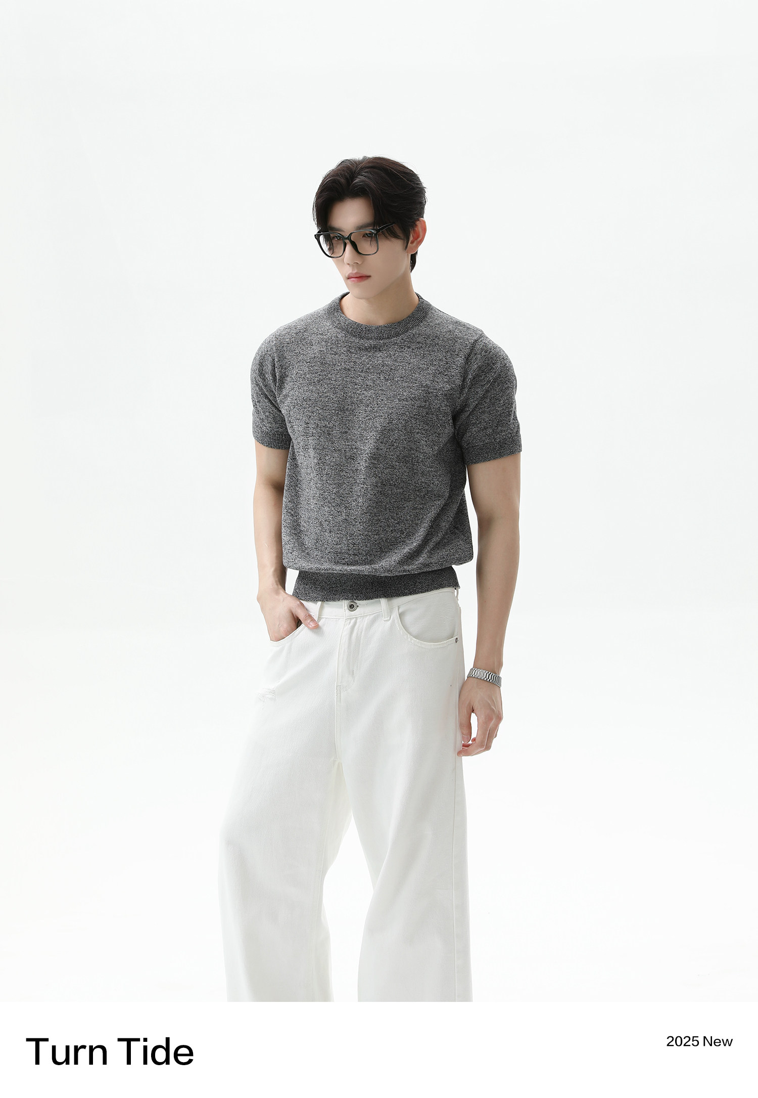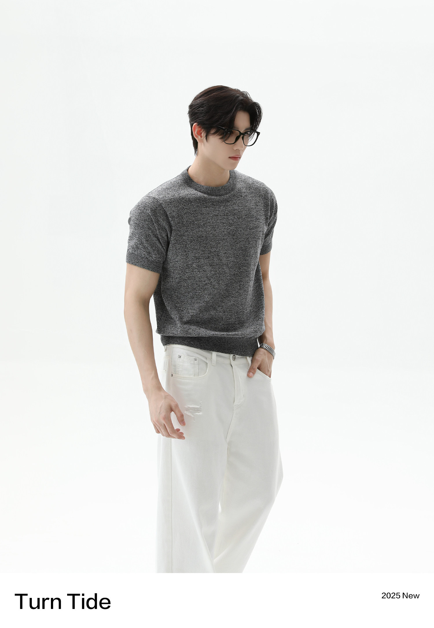 [TURNTIDE 320G纯棉针织透气短袖T恤休闲 𫔮合身百搭简约通勤男夏上衣]