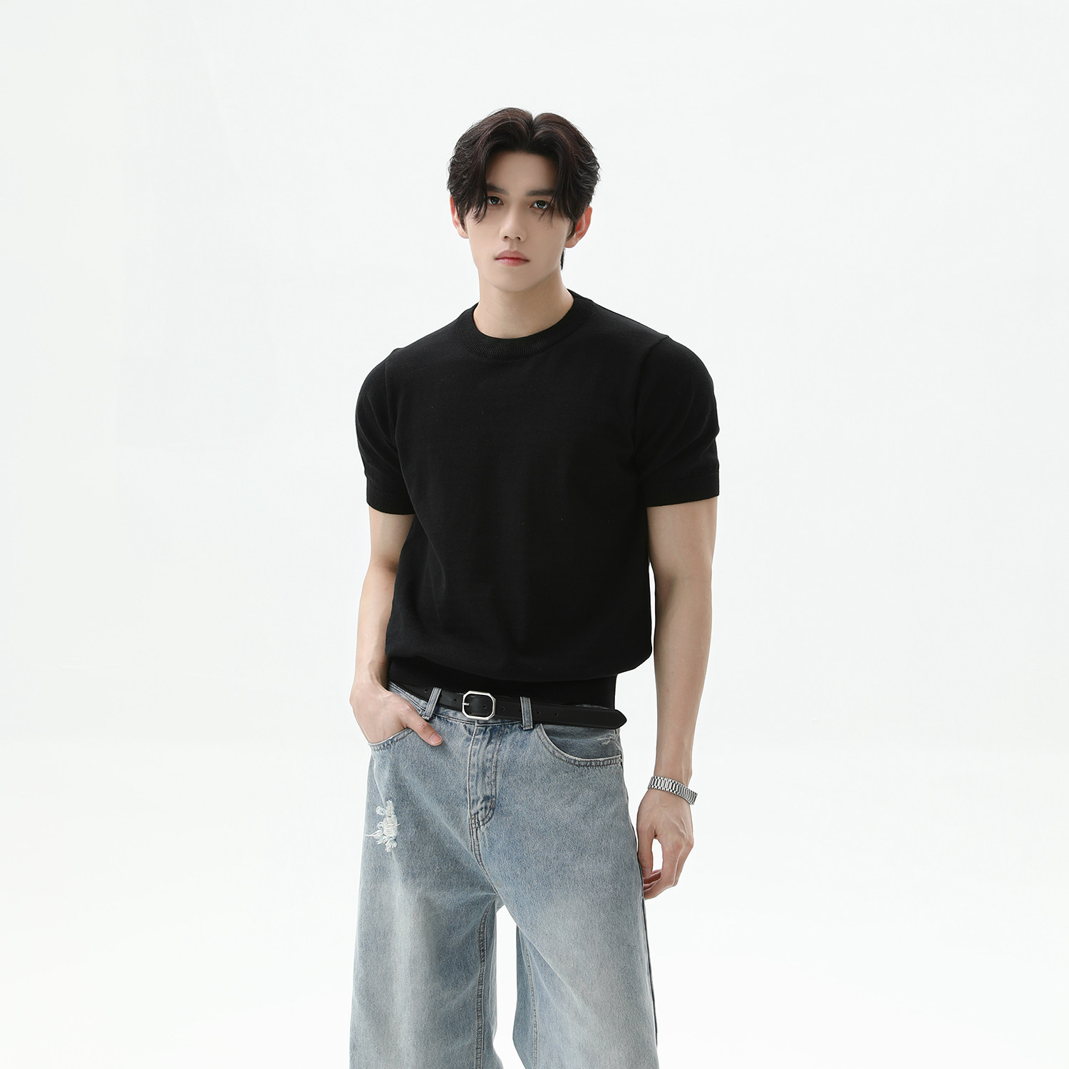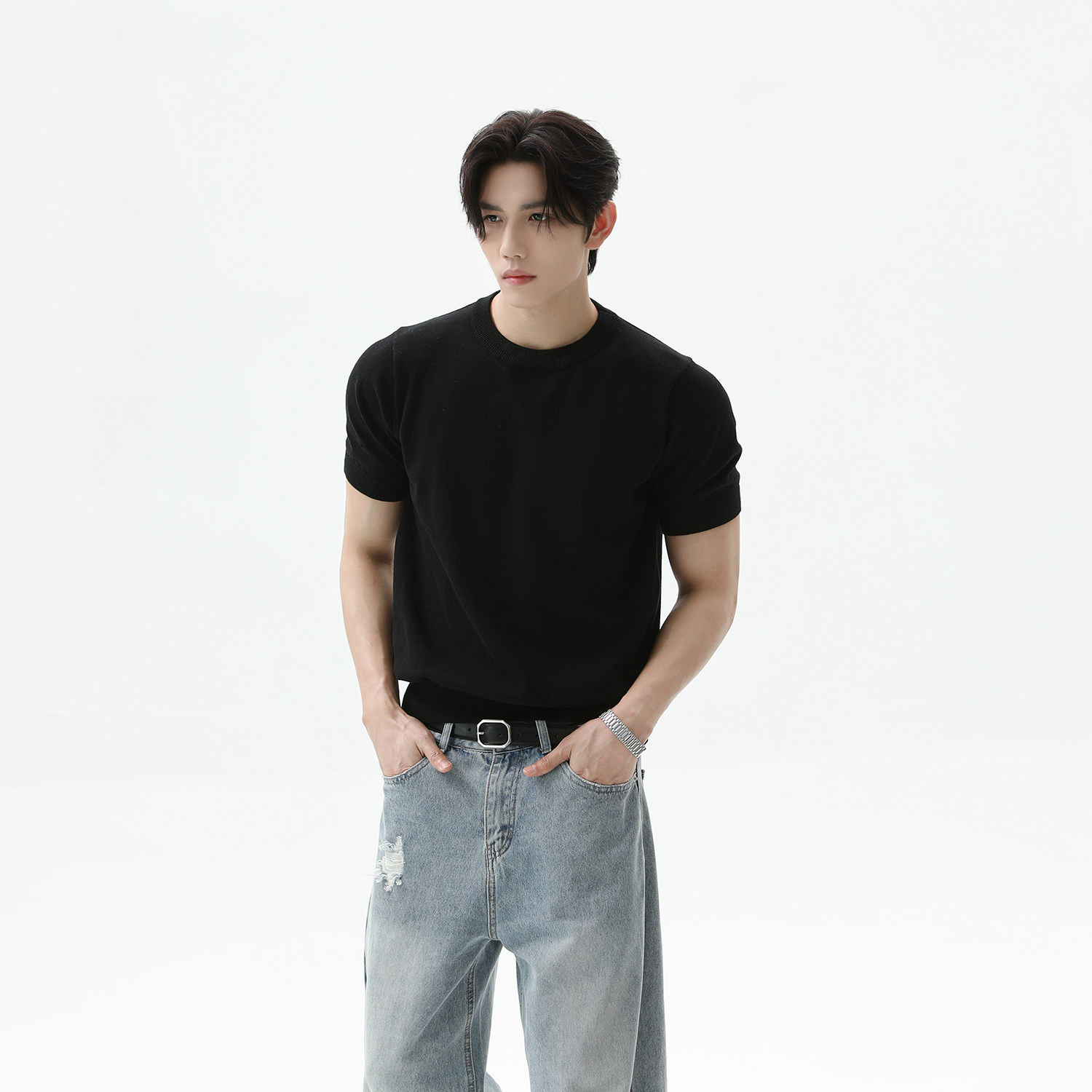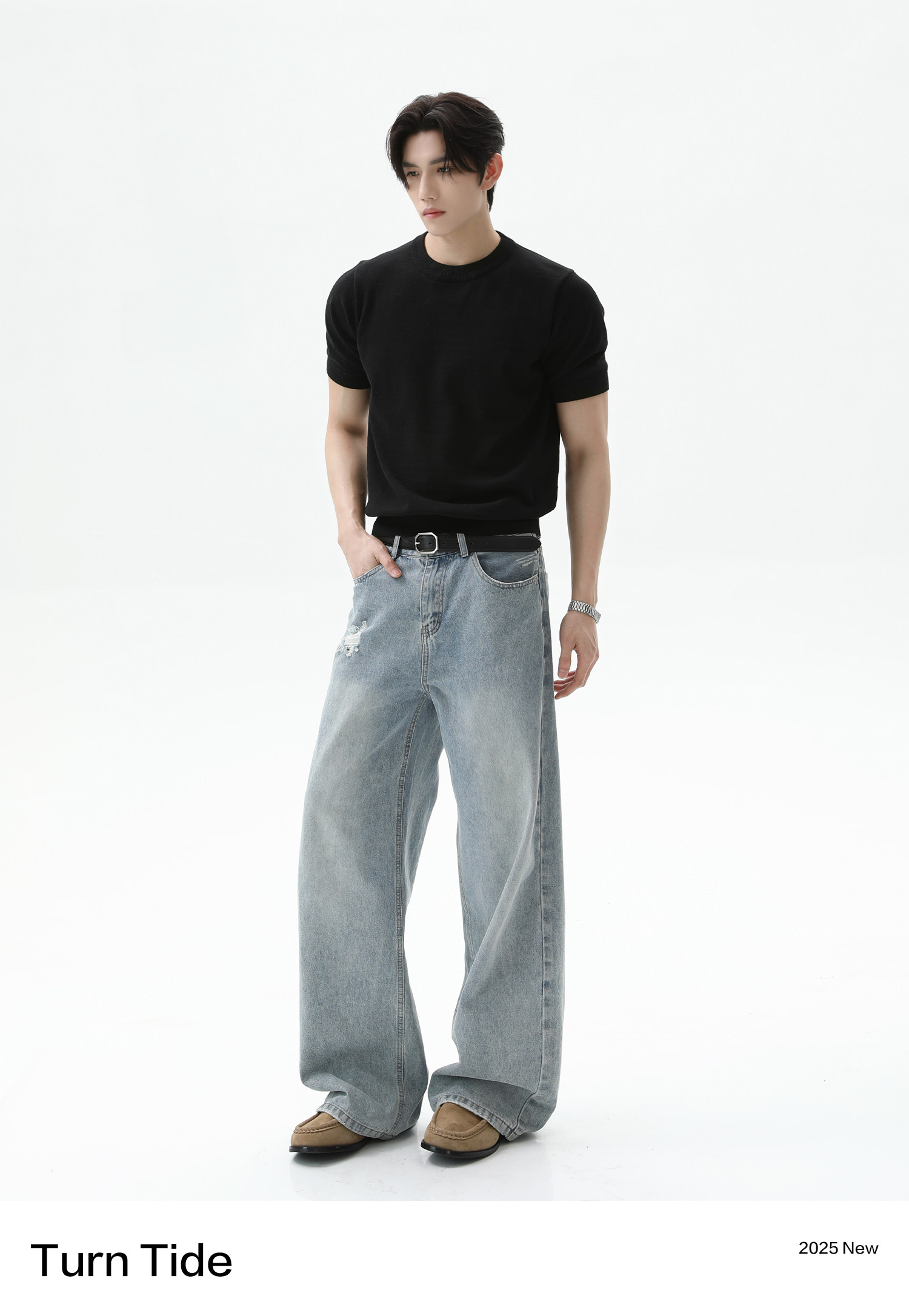 [TURNTIDE 320G纯棉针织透气短袖T恤休闲 𫔮合身百搭简约通勤男夏上衣]