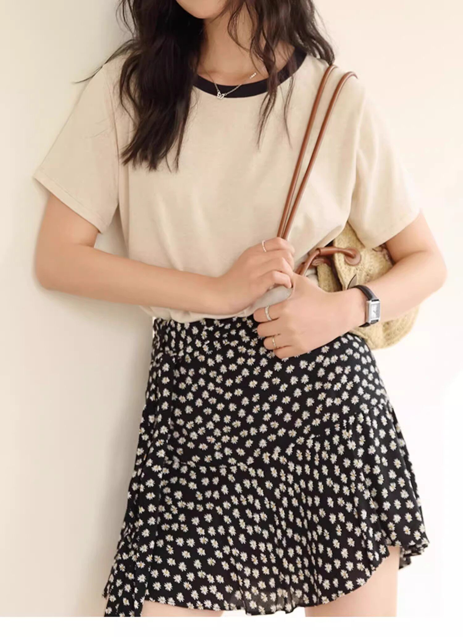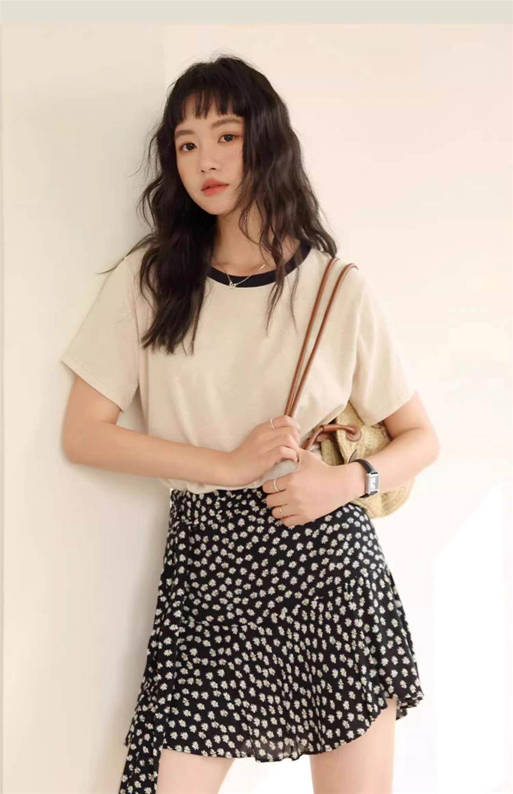 Летняя ретро футболка с круглым воротником