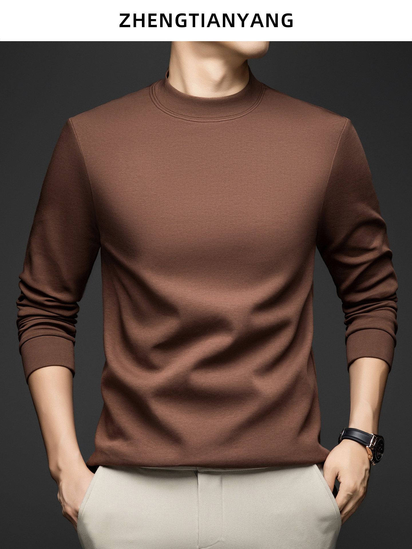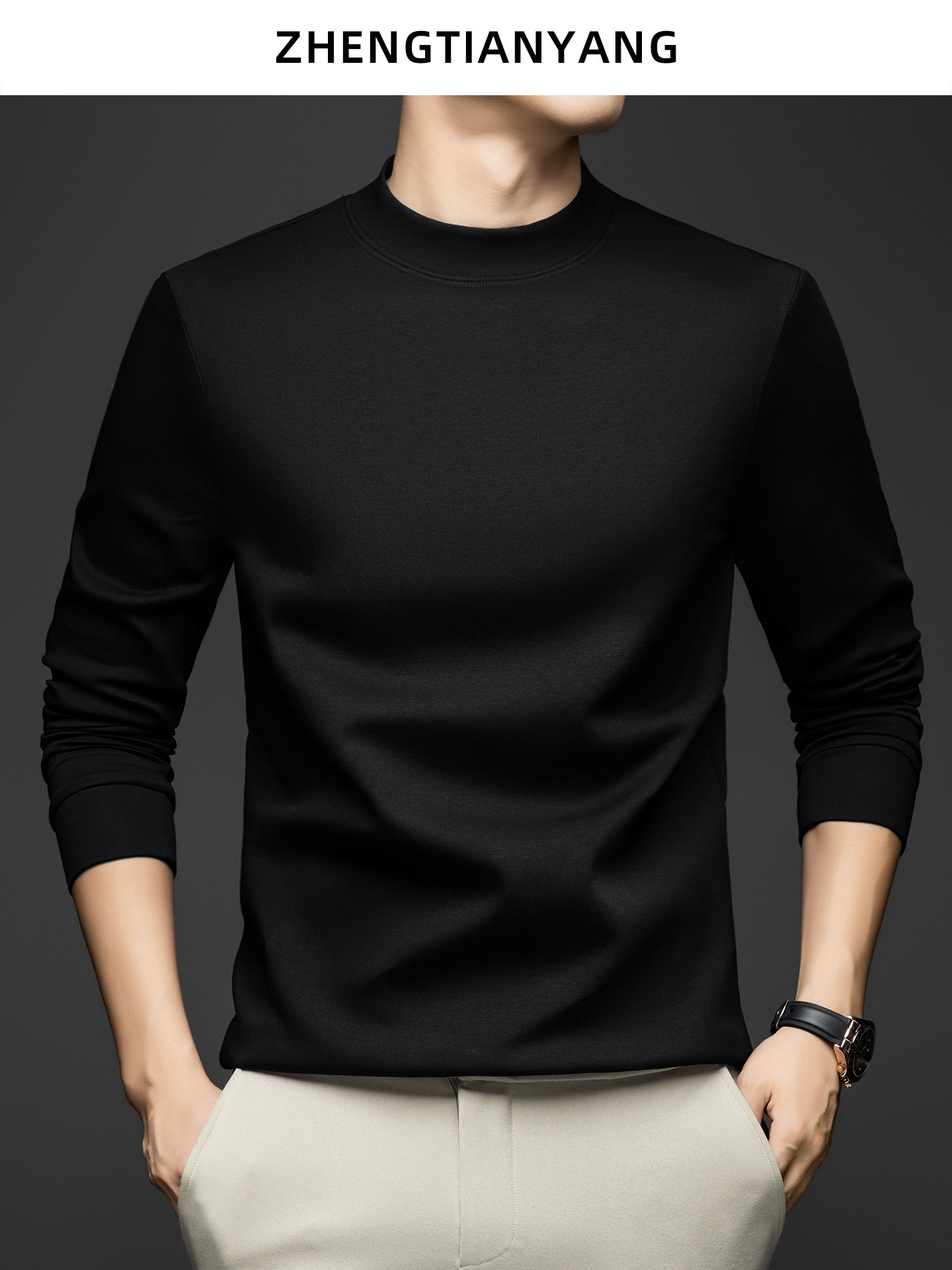 Осенний базовый приятный телу лонгслив для отдыха, высокий воротник