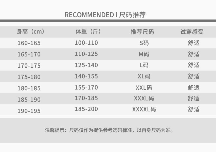 | Размер: | S (рекомендовать 100-110 кот), М (рекомендуется 110-125 кот), L (рекомендуется 125-140 кот), XL (рекомендуется 140-155 кот), 2xl (рекомендуется 155-170 Catties), 3xl (рекомендуется 170-185 котли, 4xl (рекомендуется 185-200 кот) |