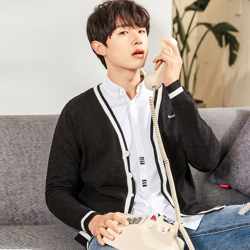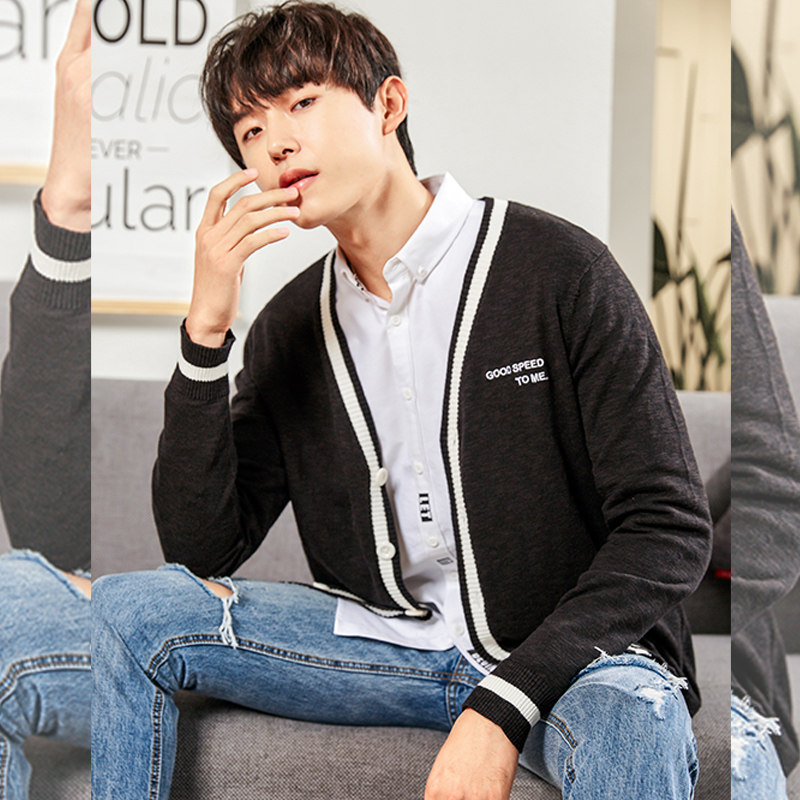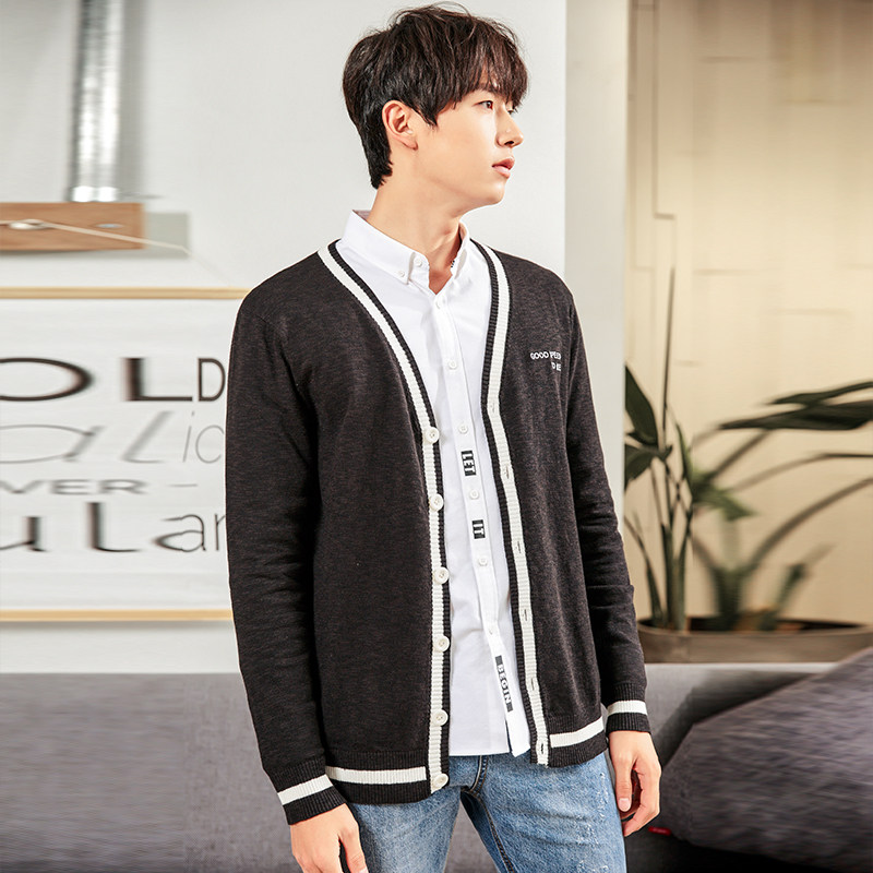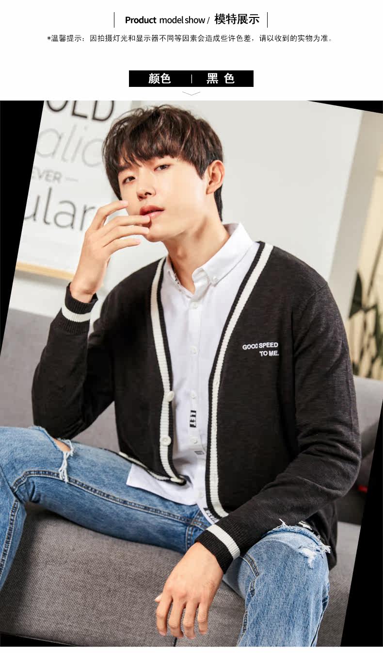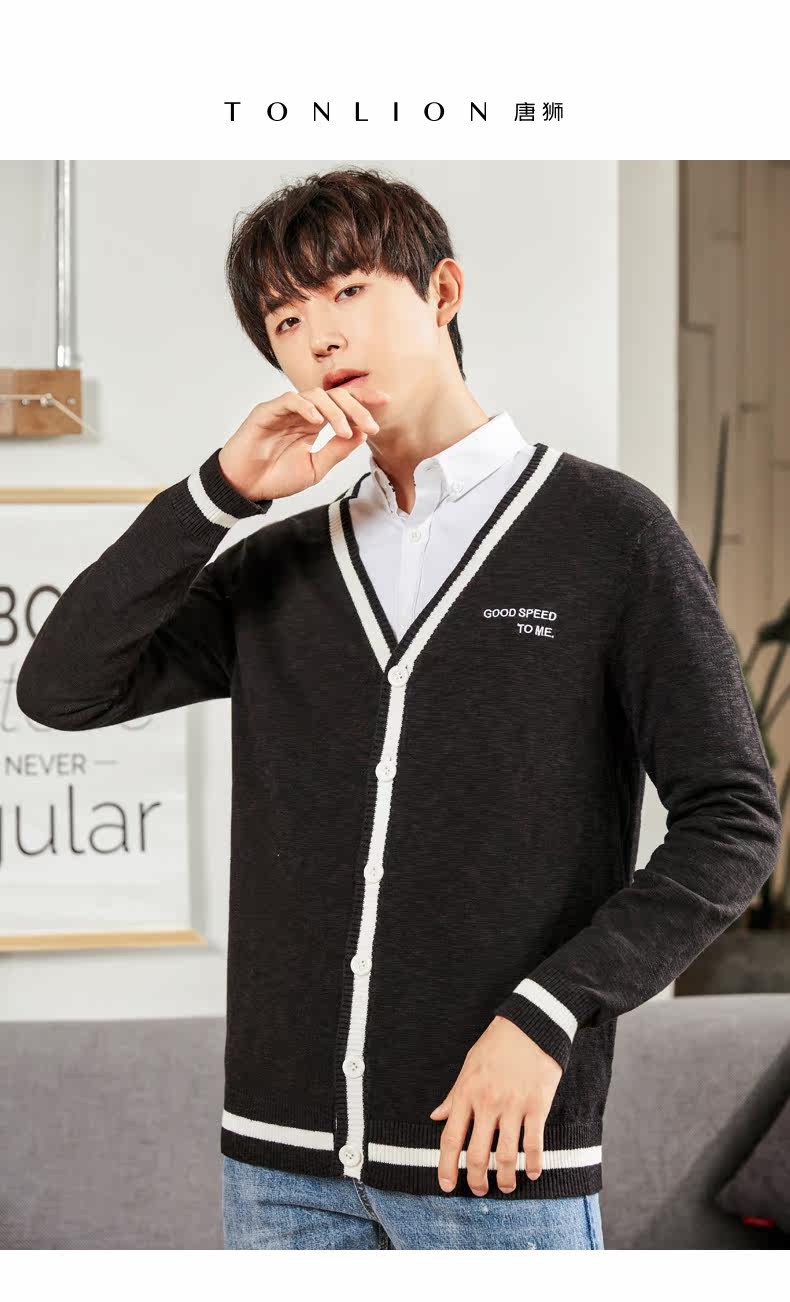 | наименование товара | Tang Lion 2018 Новый свитер мужской контрастный цвет кардиган |