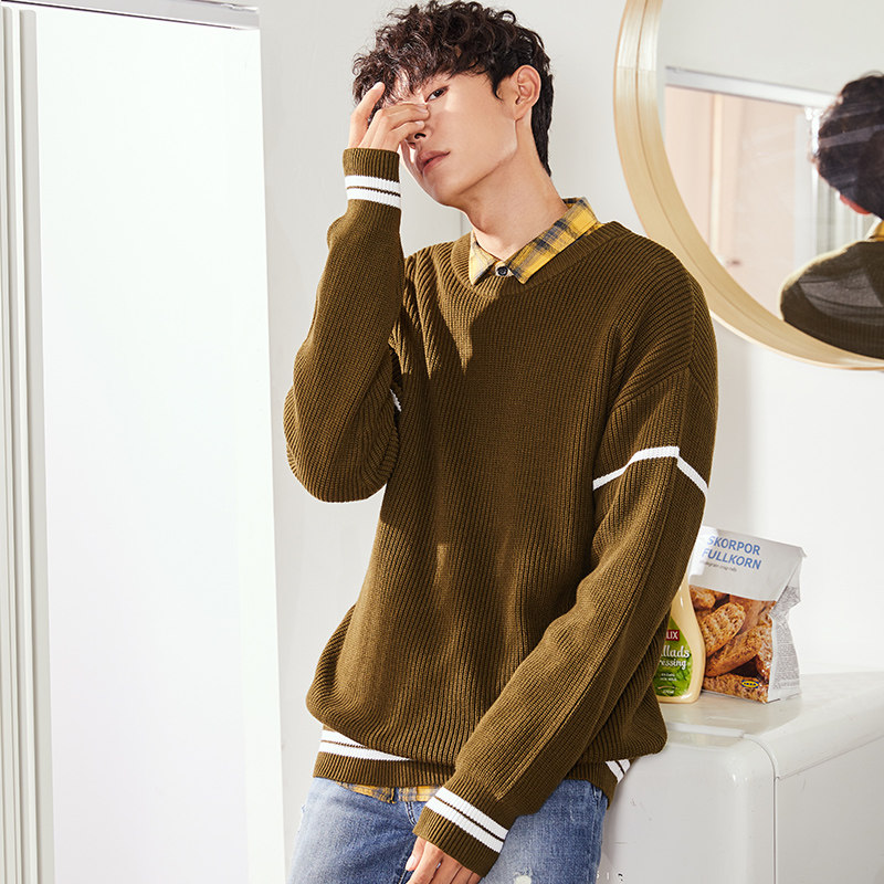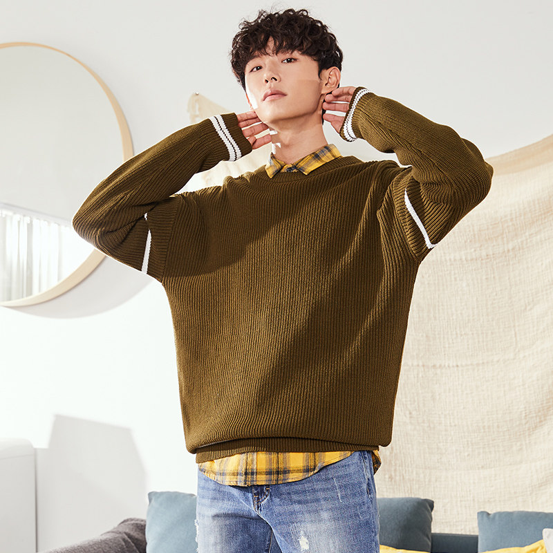 Демисезонный пуховик, трикотажный трендовый свитер с круглым воротником