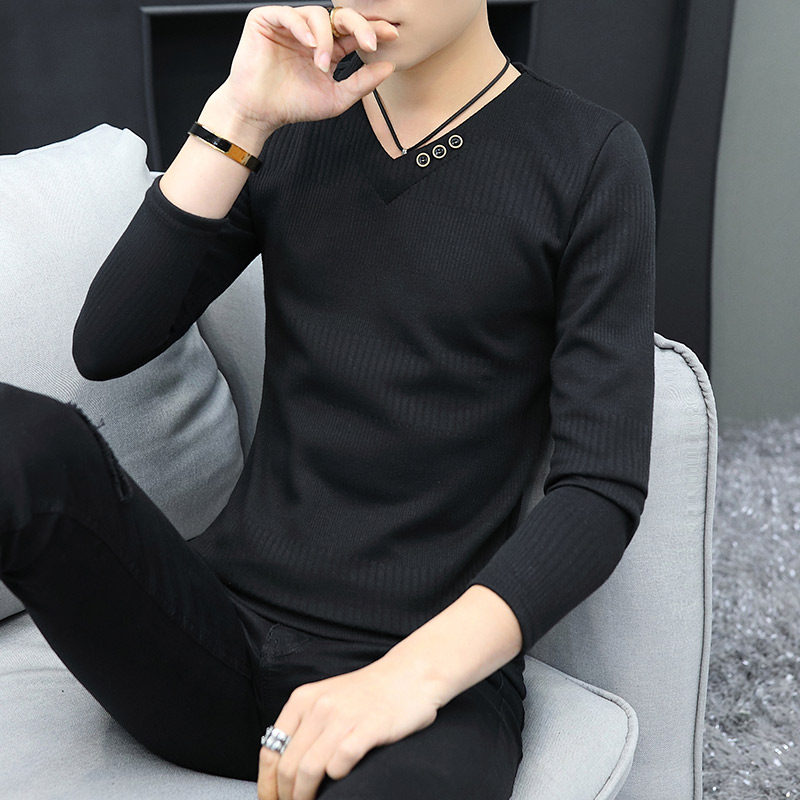 Трикотажный тонкий осенний базовый приятный телу свитер для школьников и студентов, V-образный вырез, в корейском стиле