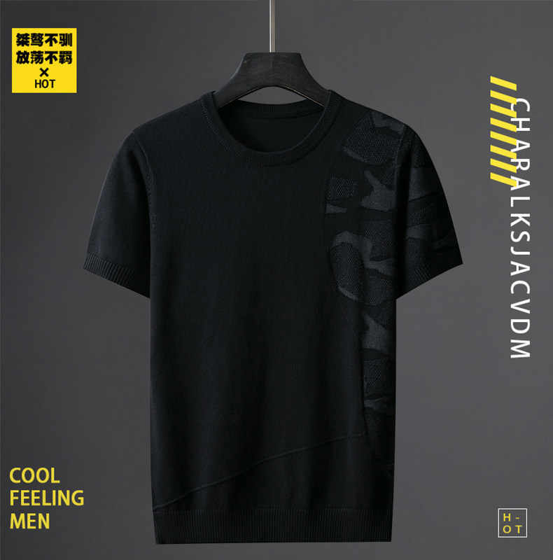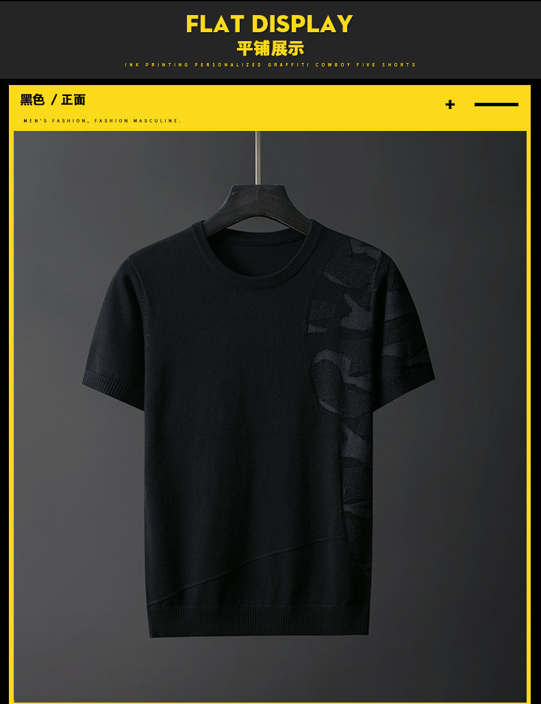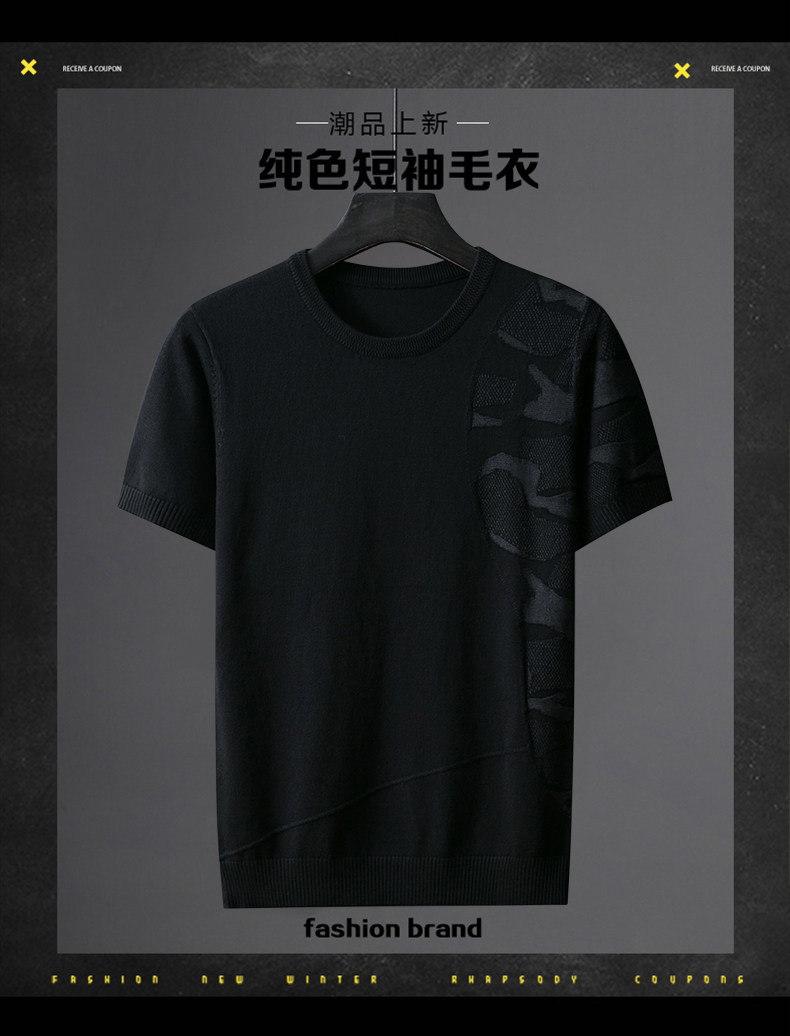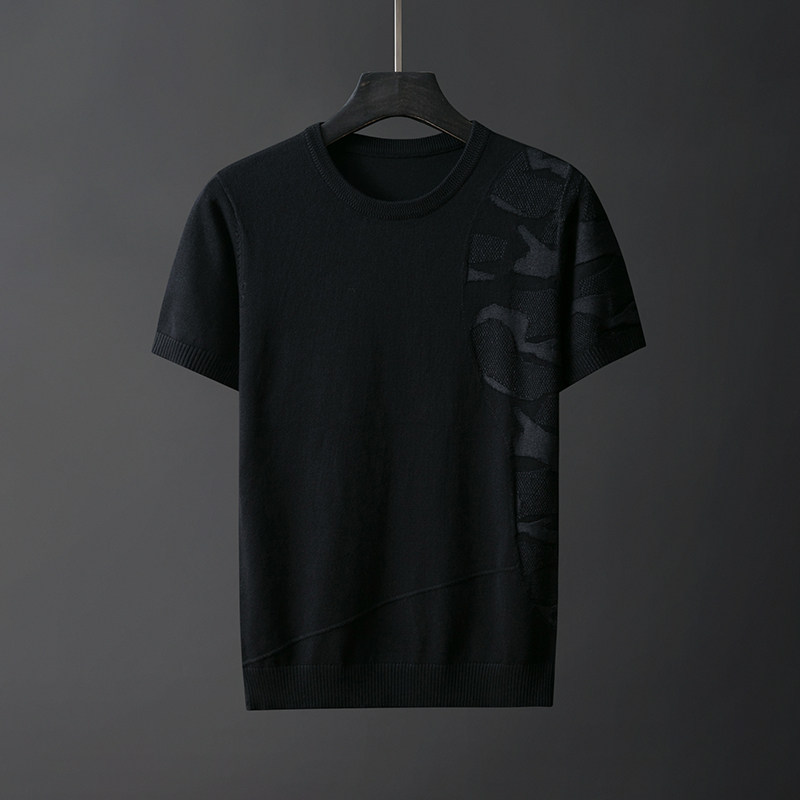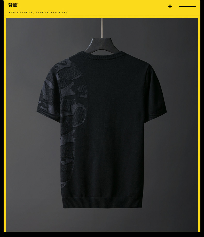 Трикотажный трендовый демисезонный камуфляжный свитер, короткий рукав, коллекция 2023