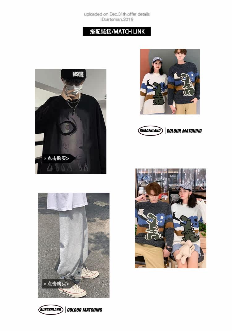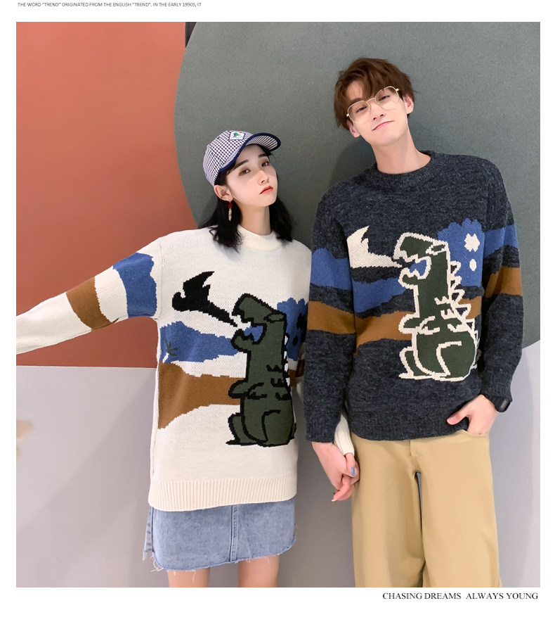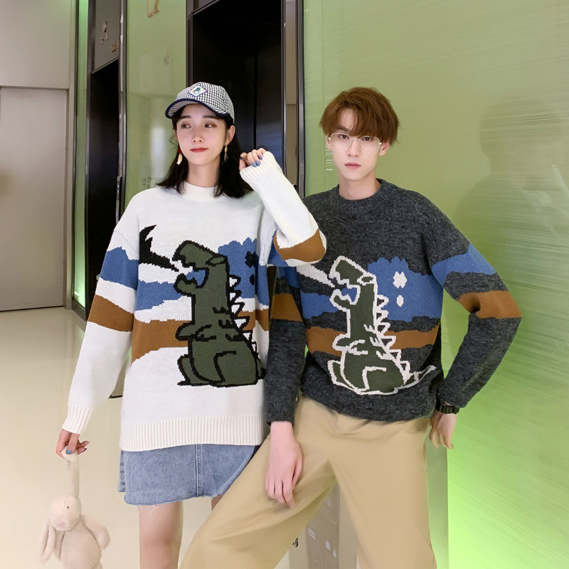 Динозавр, трикотажный демисезонный трендовый базовый приятный телу свитер, в корейском стиле