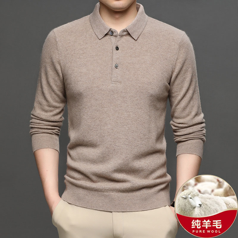 Свитер для мальчиков, бежевая трикотажная повязка на голову, демисезонный базовый шерстяной лонгслив, увеличенная толщина