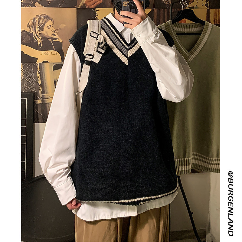Мужской демисезонный трендовый трикотажный брендовый свитер для школьников и студентов, жилет, оверсайз, в корейском стиле, для влюбленных