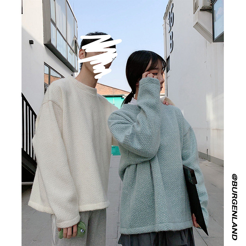 Демисезонный трендовый цветной трикотажный свитер для влюбленных с круглым воротником, оверсайз, в корейском стиле