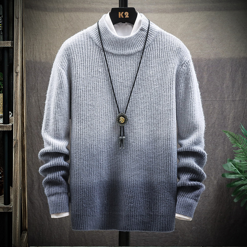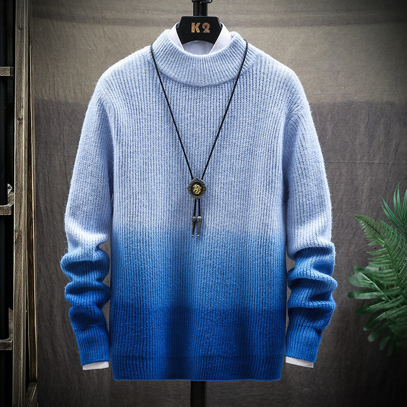 Цветной демисезонный трендовый трикотажный свитер, градиент, высокий воротник, 2020, в корейском стиле, увеличенная толщина