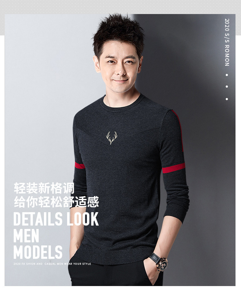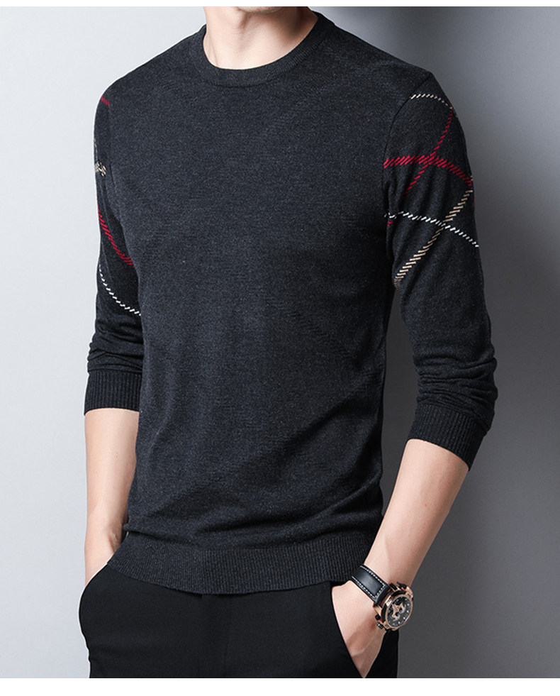 Осенний тонкий трикотажный свитер для отдыха с круглым воротником
