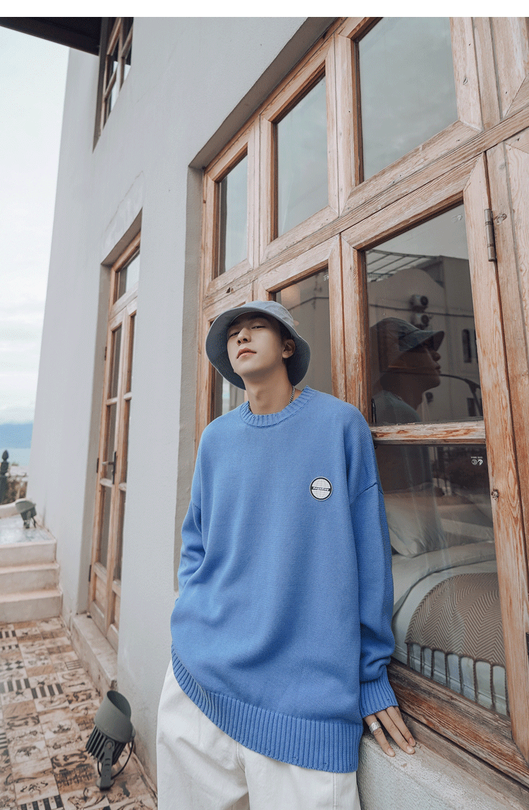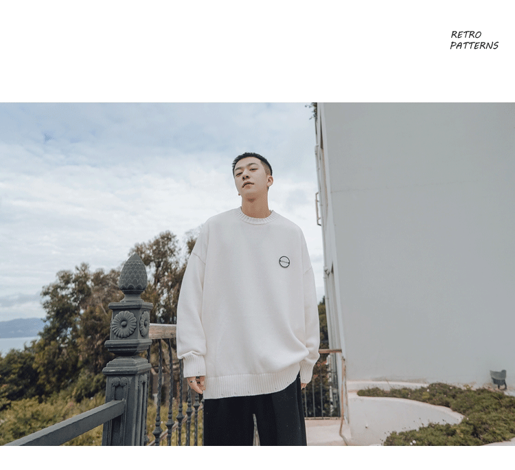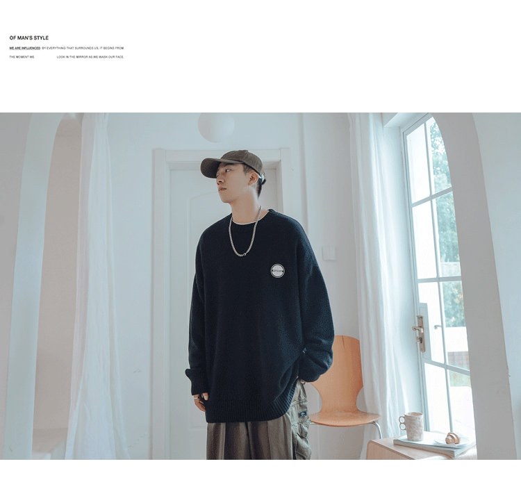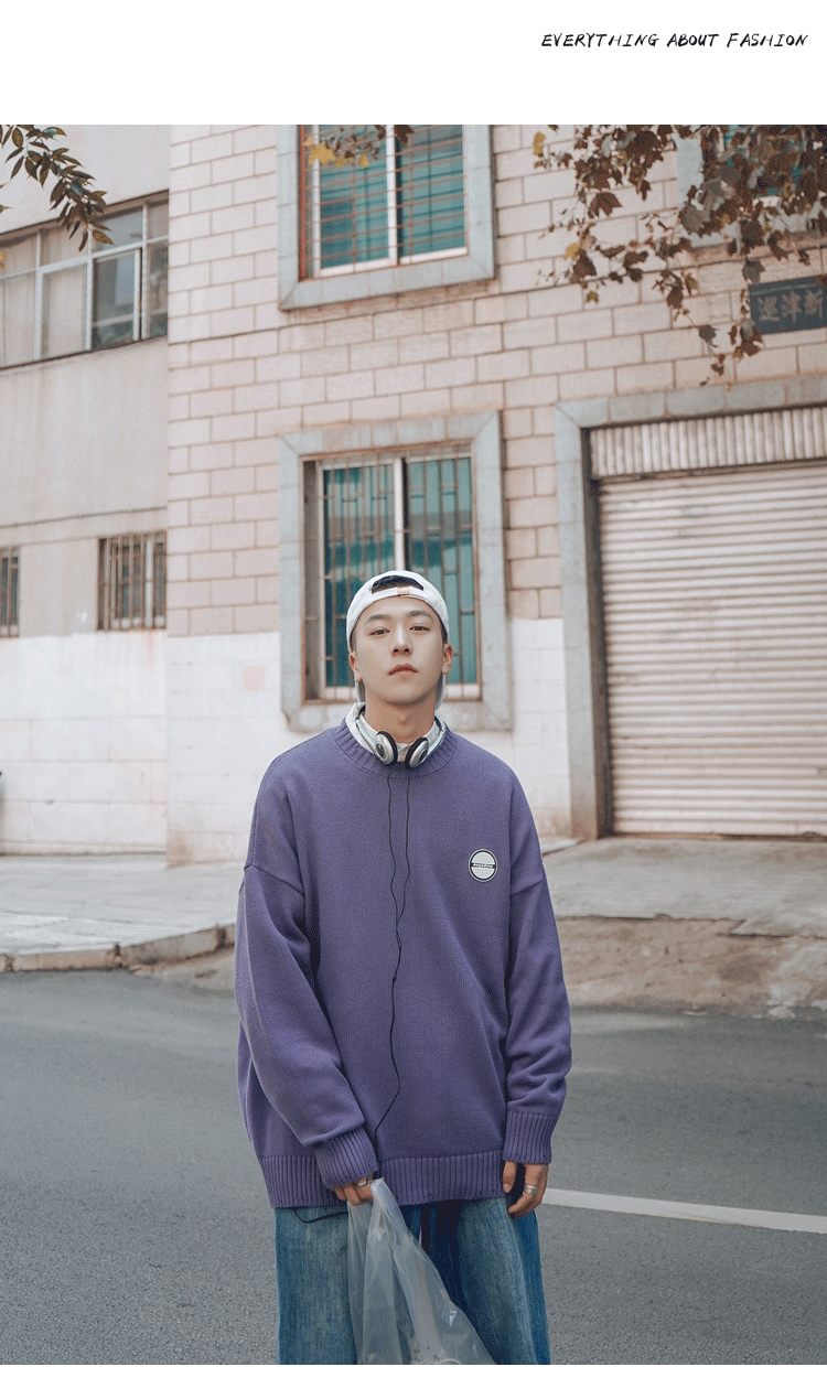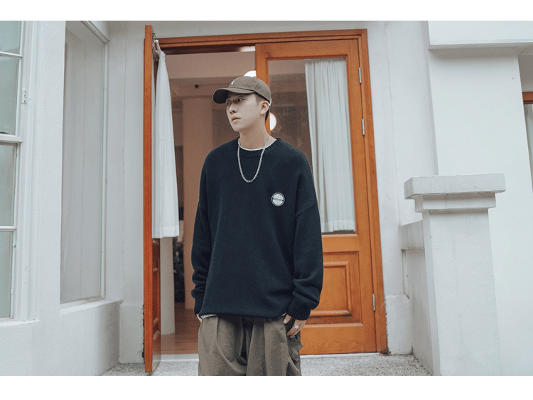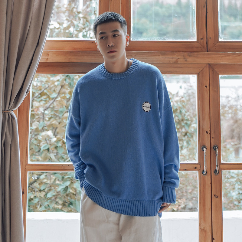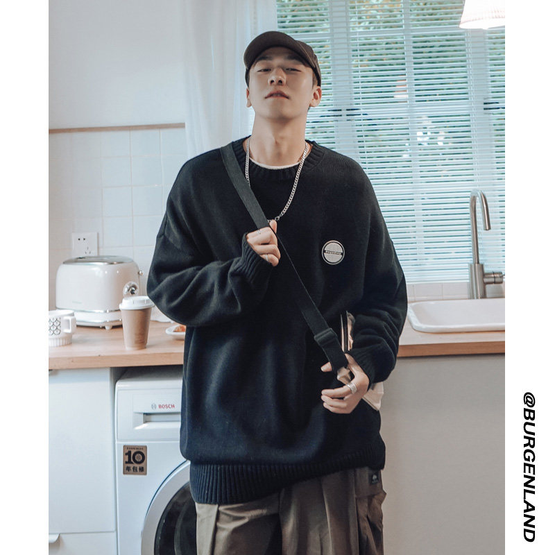 Свитер, трендовая брендовая шерстяная трикотажная демисезонная утепленный лонгслив с круглым воротником, оверсайз, в корейском стиле