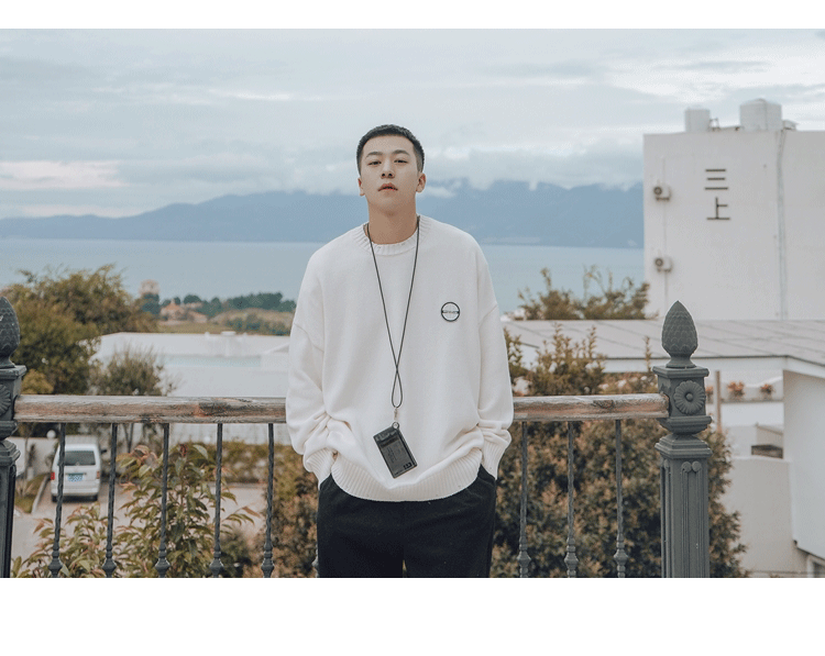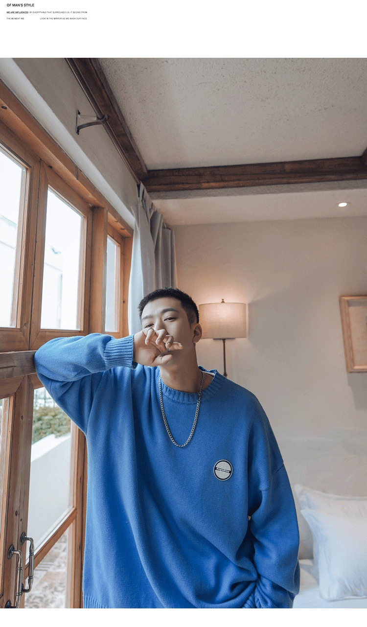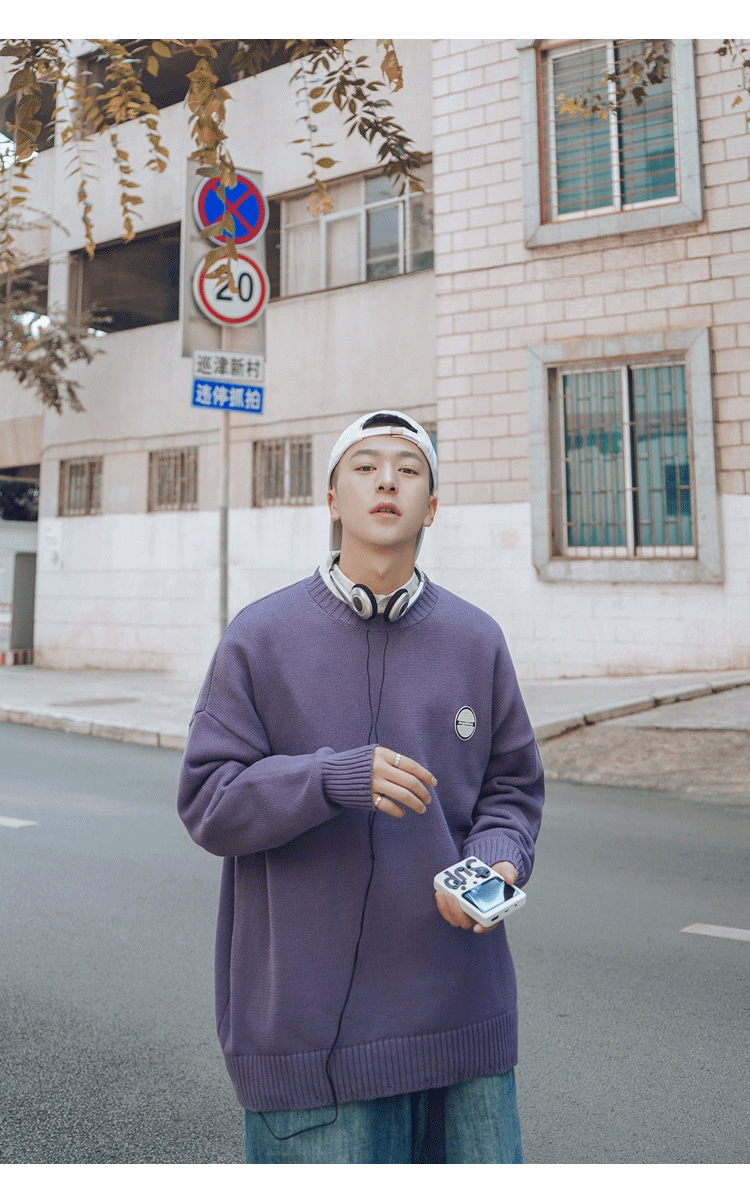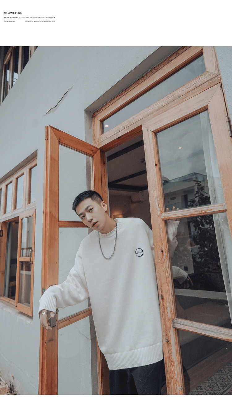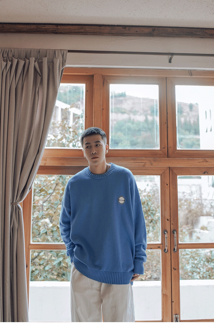 Свитер, трендовая брендовая шерстяная трикотажная демисезонная утепленный лонгслив с круглым воротником, оверсайз, в корейском стиле