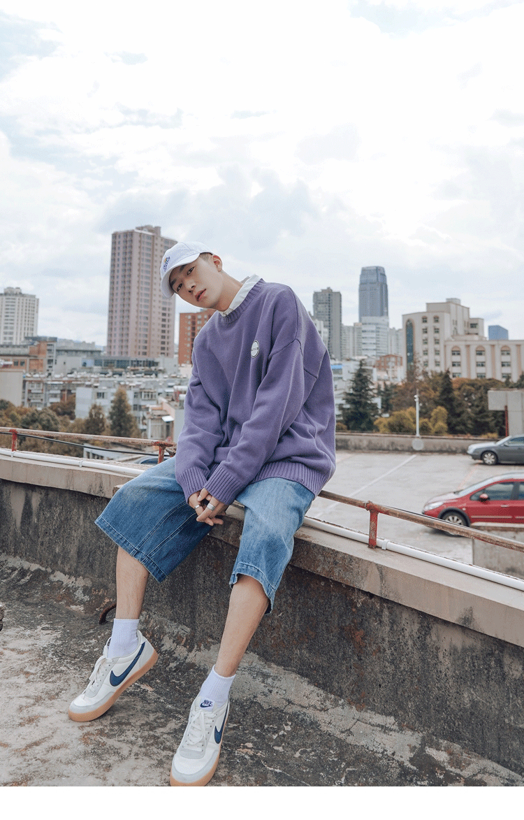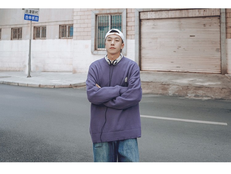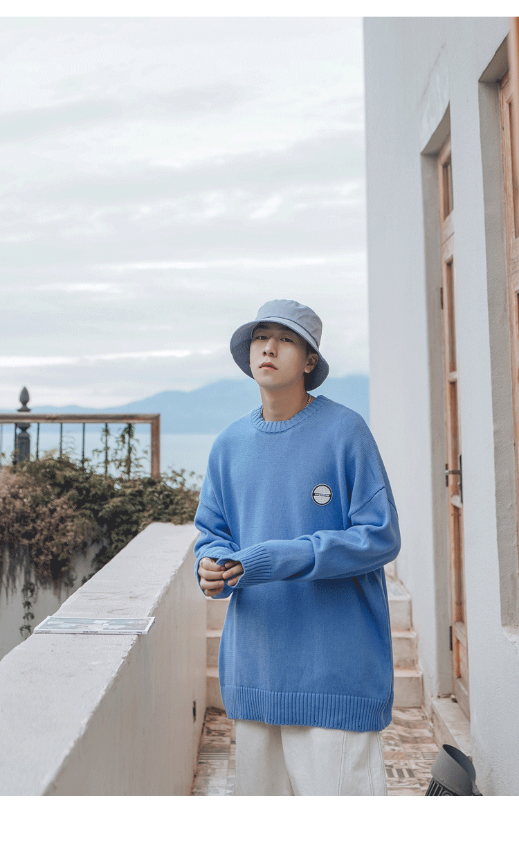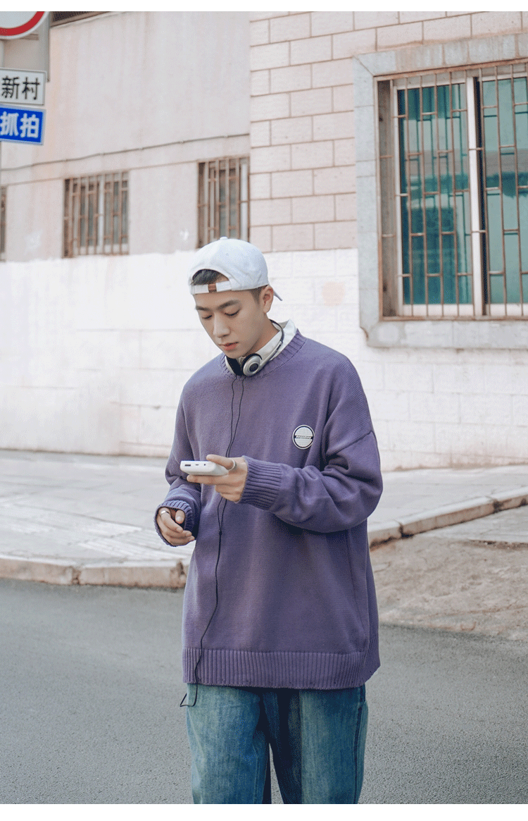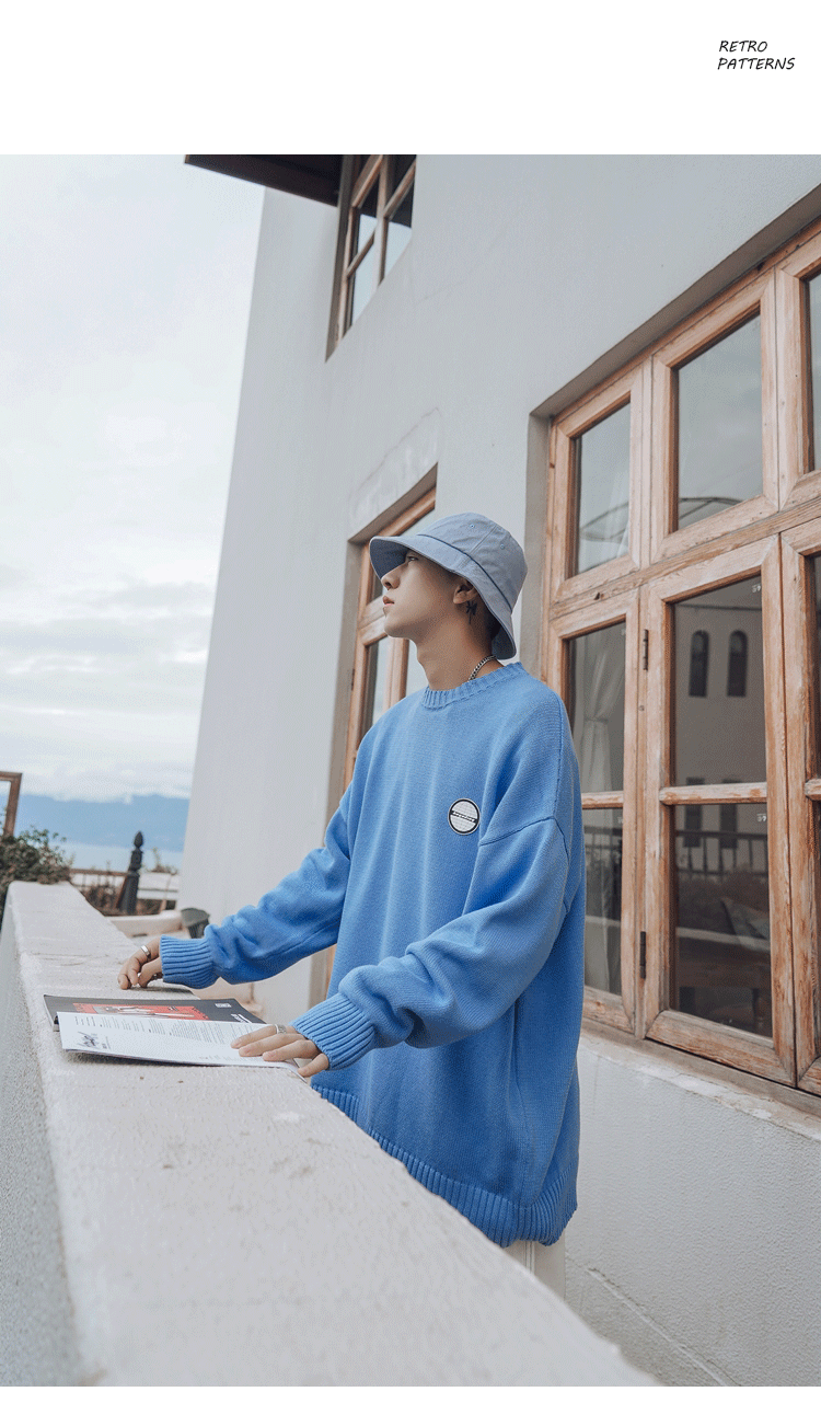 Свитер, трендовая брендовая шерстяная трикотажная демисезонная утепленный лонгслив с круглым воротником, оверсайз, в корейском стиле