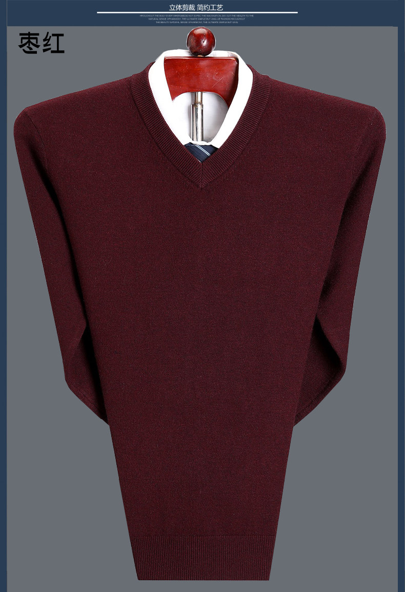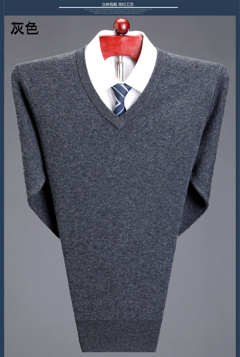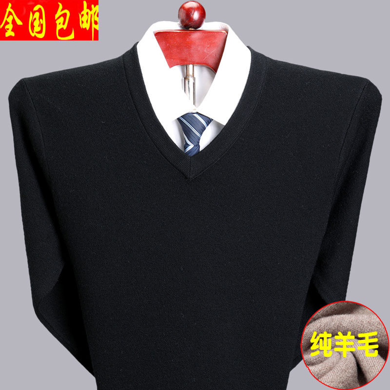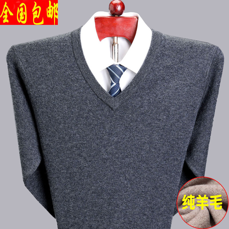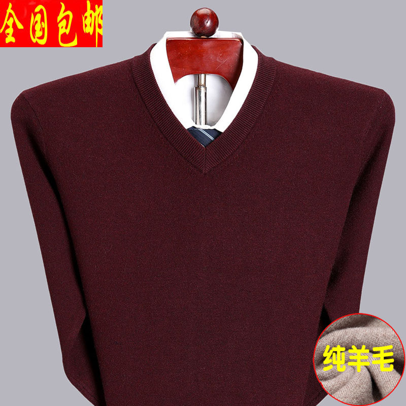 Мужской зимний шерстяной свитер, V-образный вырез, увеличенная толщина, для среднего возраста, большой размер