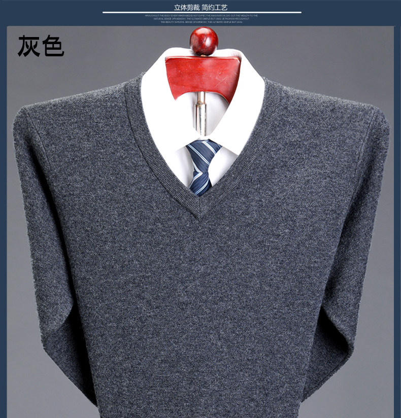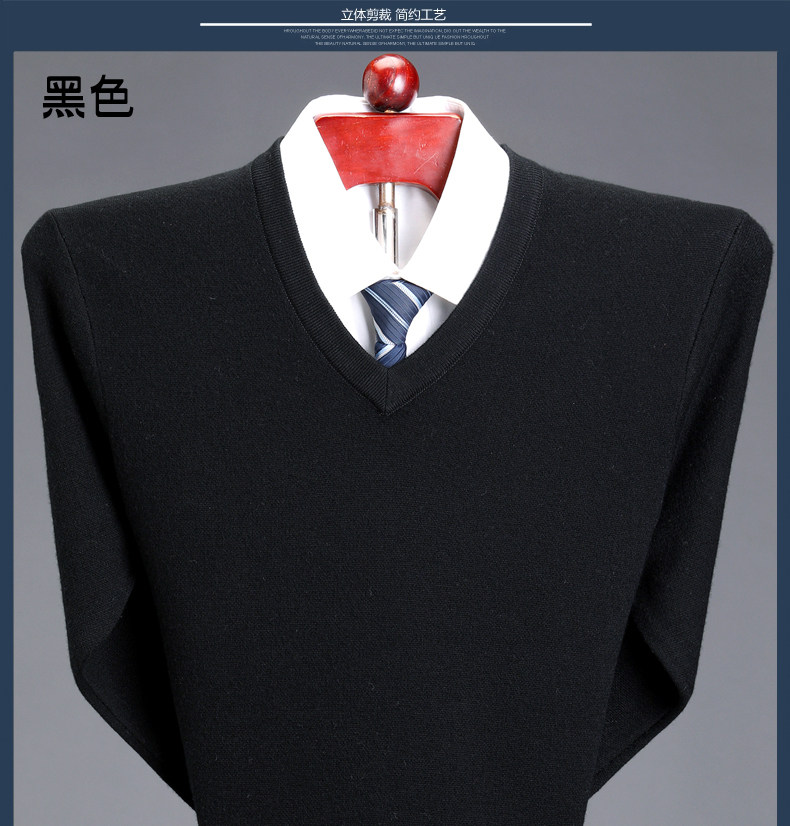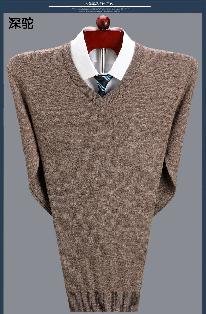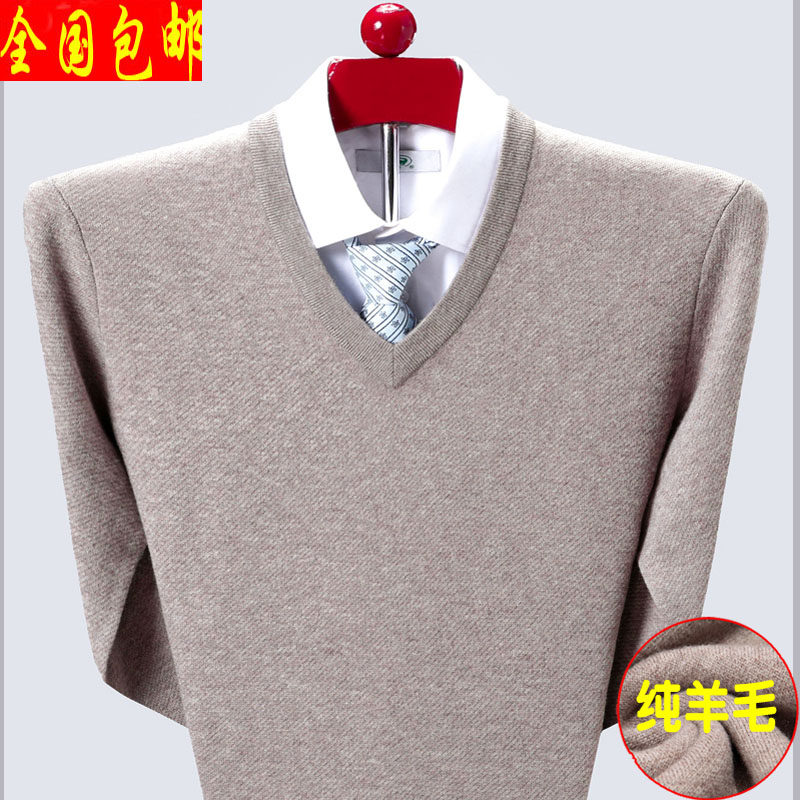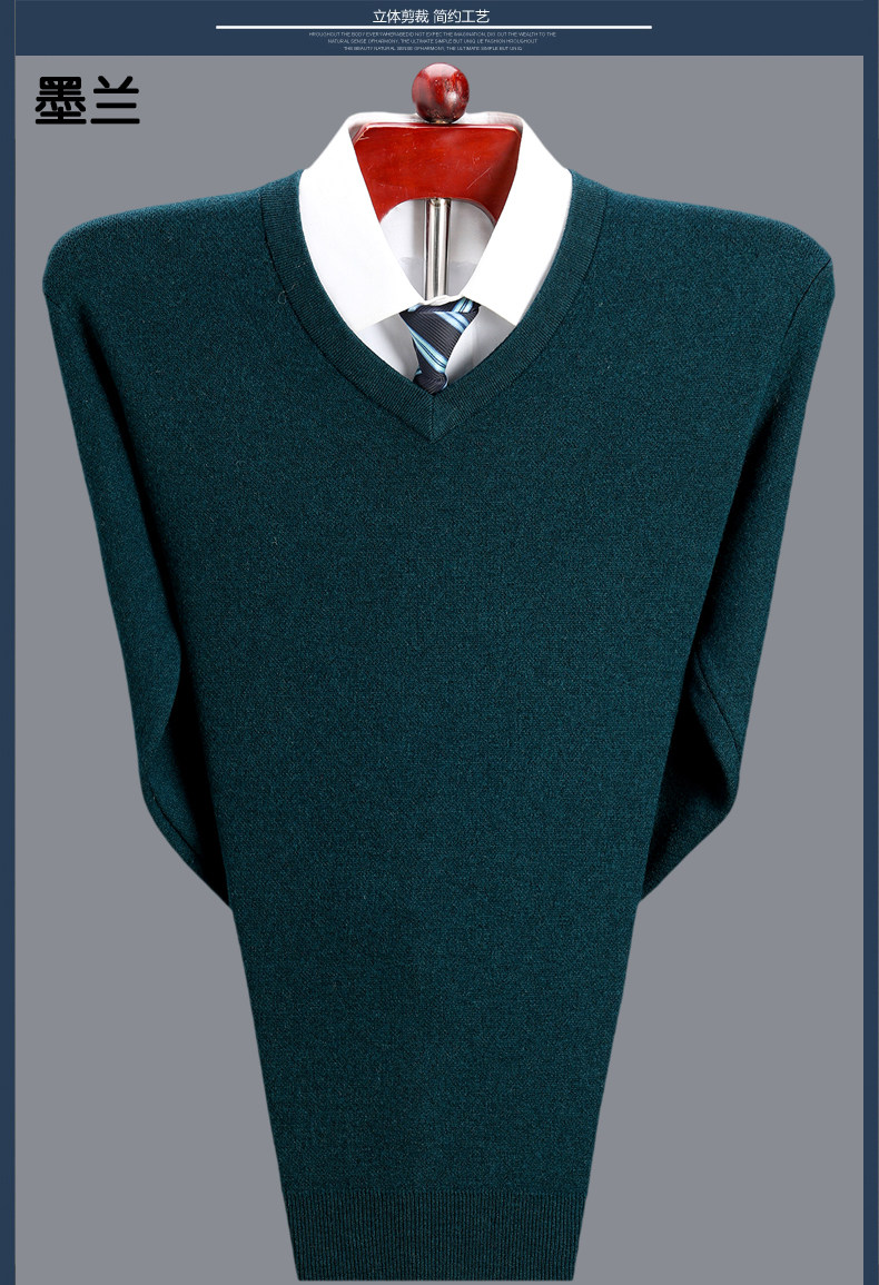Мужской зимний шерстяной свитер, V-образный вырез, увеличенная толщина, для среднего возраста, большой размер