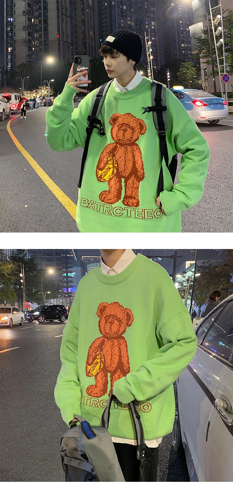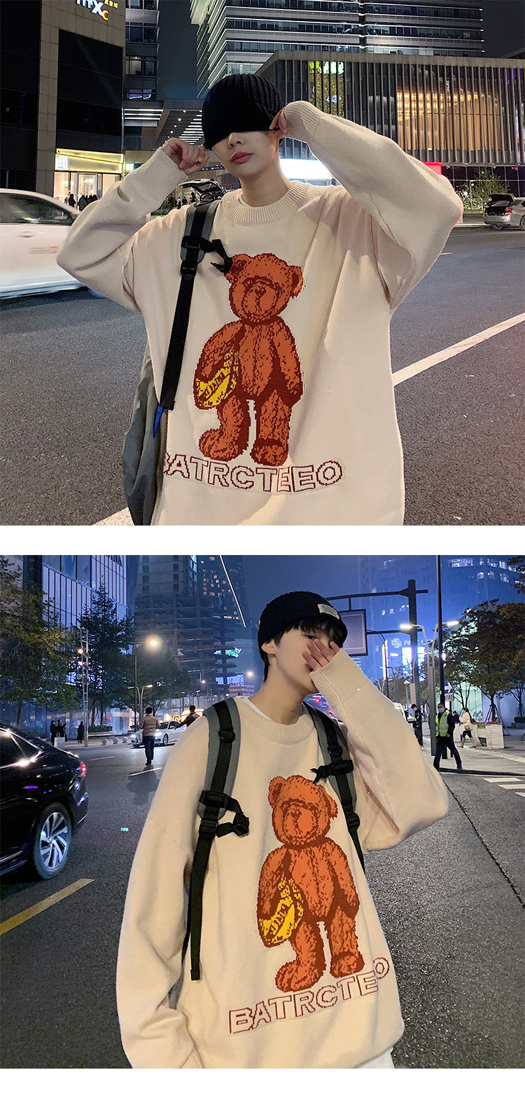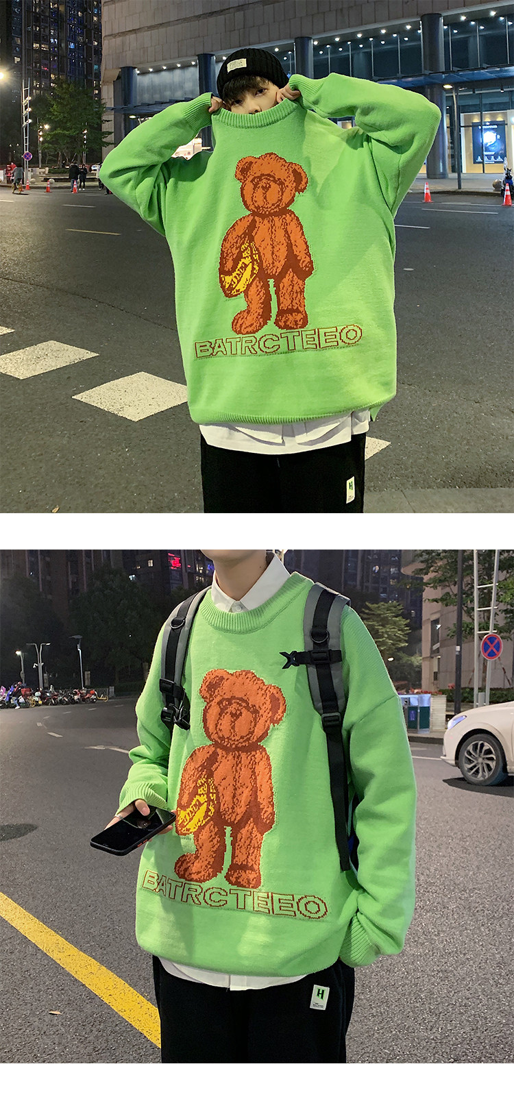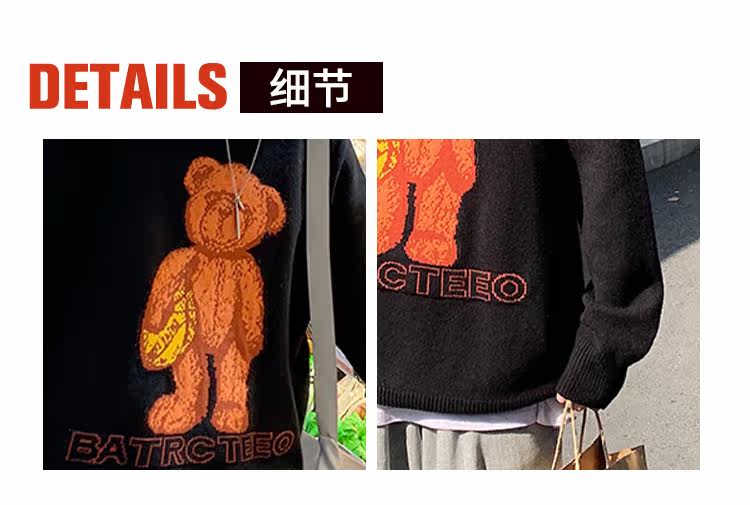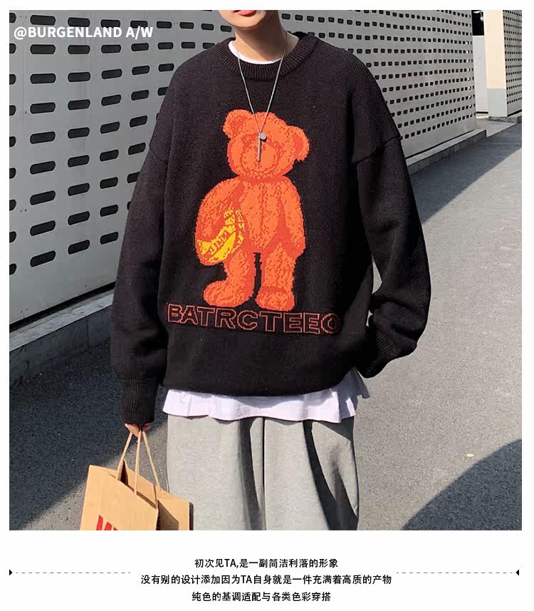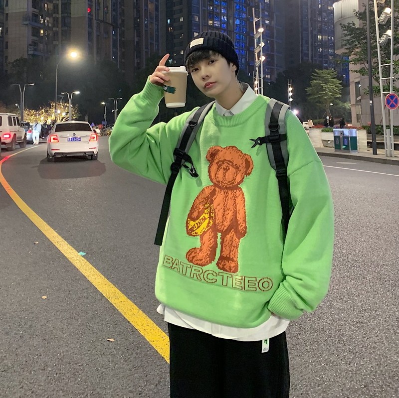 Демисезонный свитер для влюбленных, трендовый трикотажный кардиган с круглым воротником, с медвежатами, оверсайз, в корейском стиле