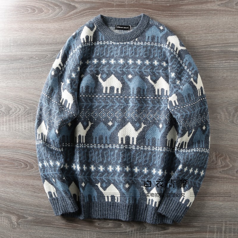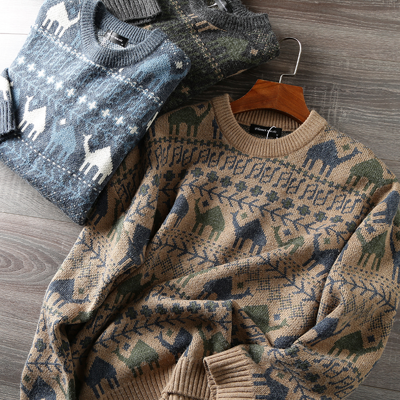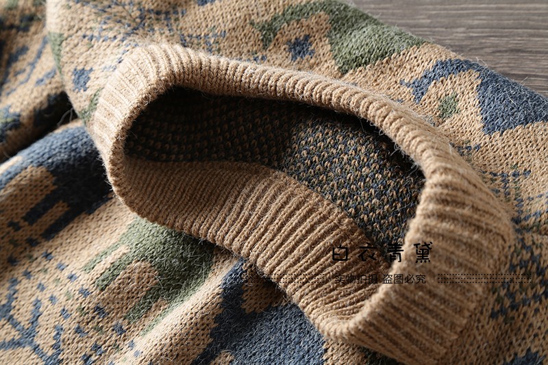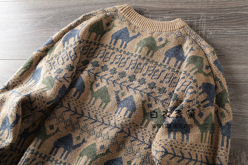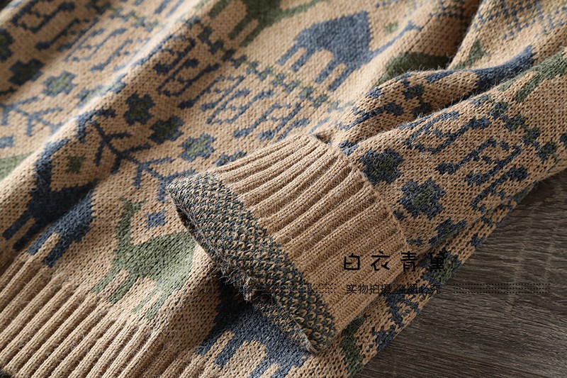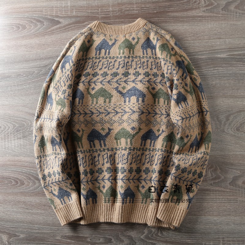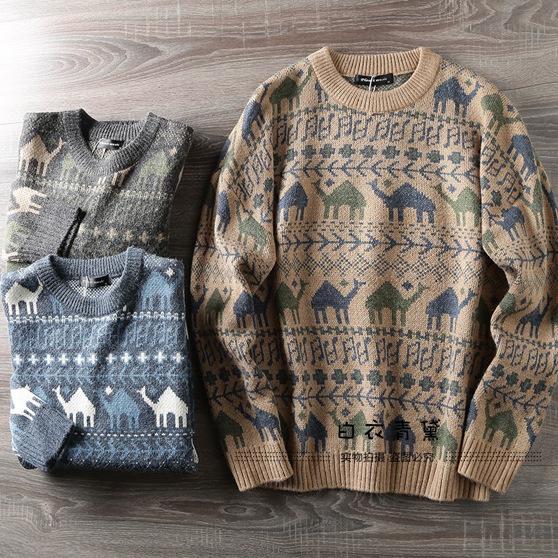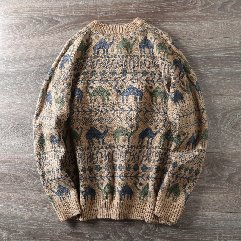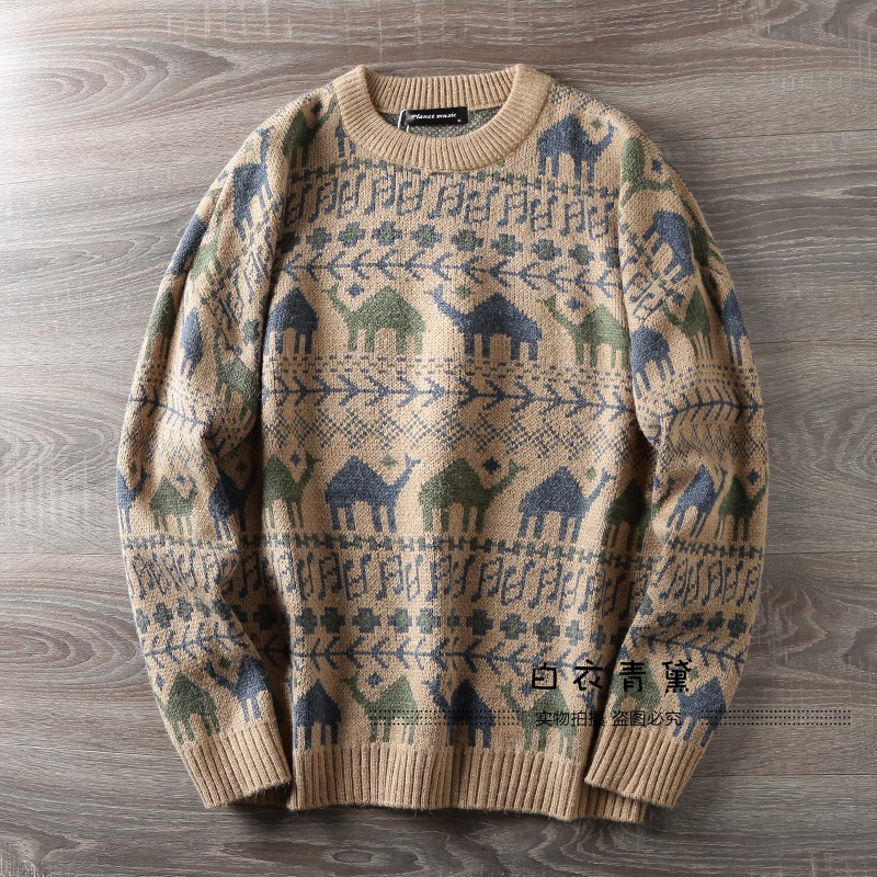 Этнический трикотажный свитер, приятный телу японский ретро лонгслив, этнический стиль, осенний, круглый воротник