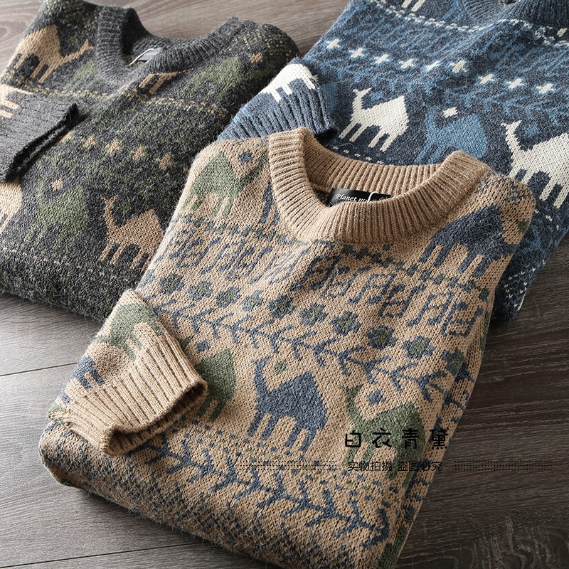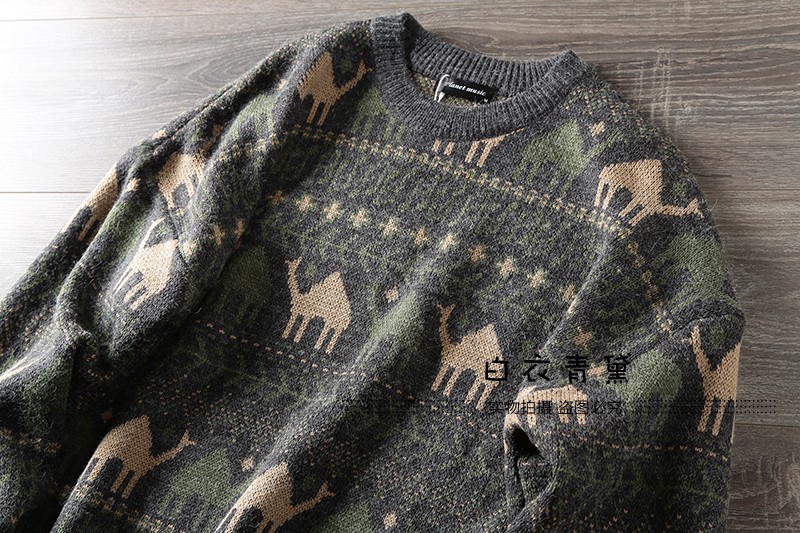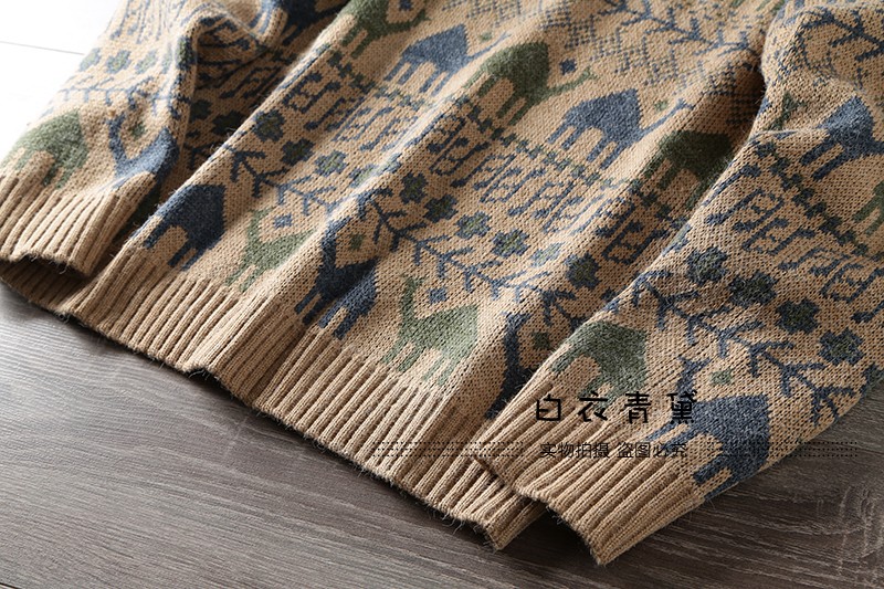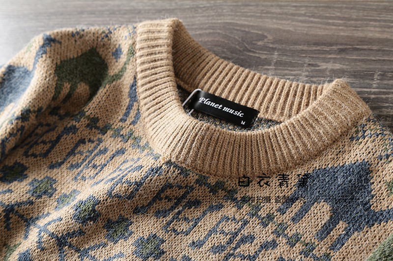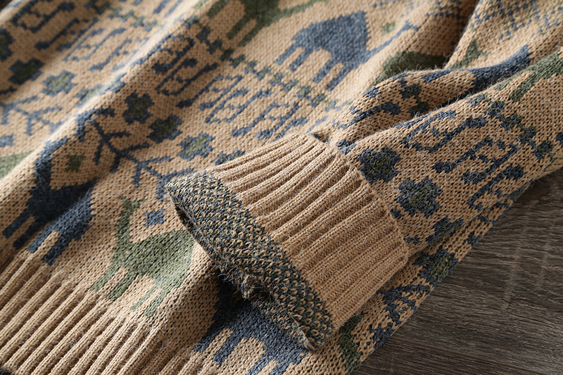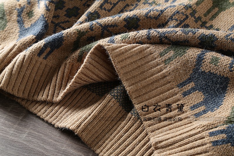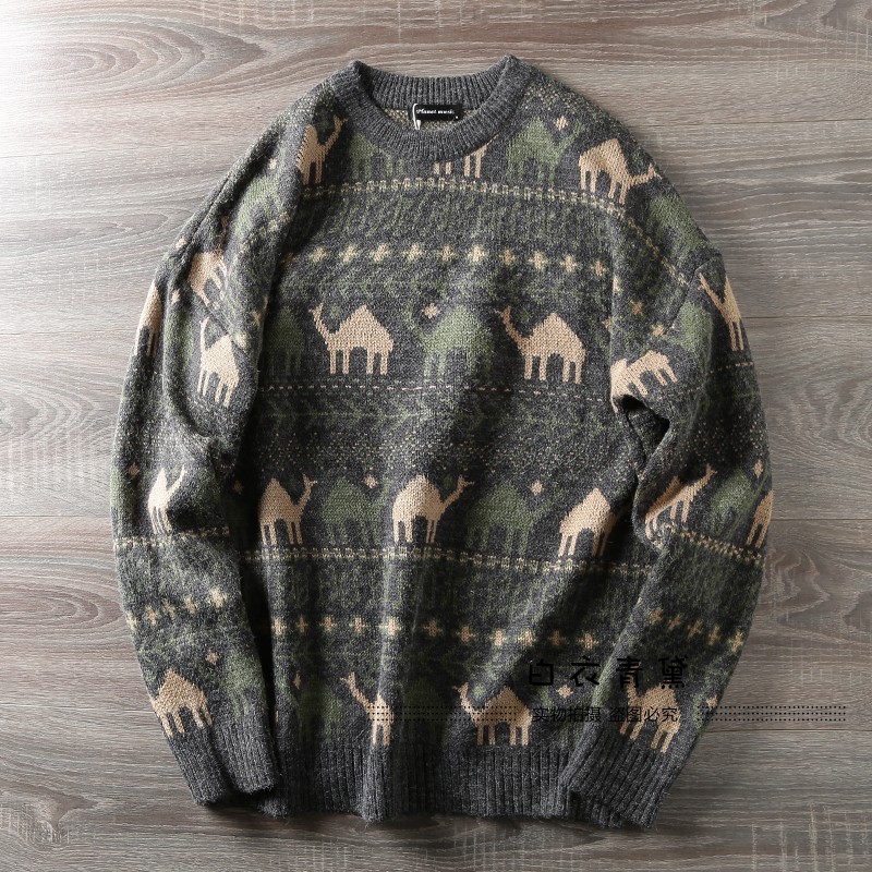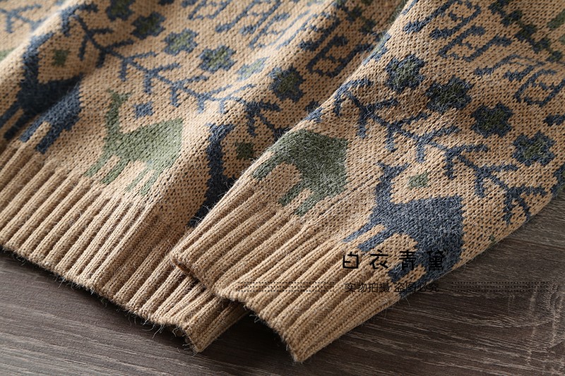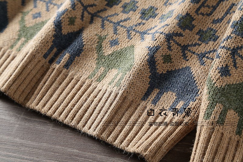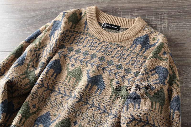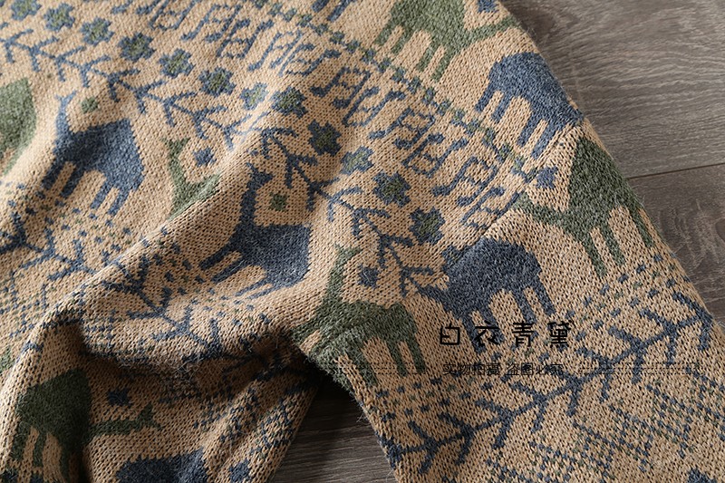 Этнический трикотажный свитер, приятный телу японский ретро лонгслив, этнический стиль, осенний, круглый воротник