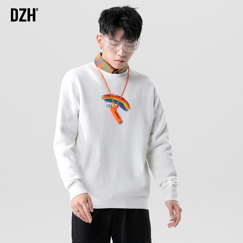 Белый осенний свитер с круглым воротником, трендовые трикотажные базовые приятные телу джинсы с начесом, в корейском стиле