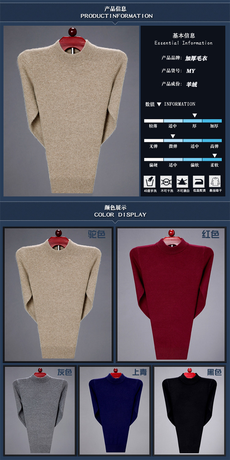 Зимний кашемировый утепленный шерстяной свитер с круглым воротником, пуховик, для среднего возраста