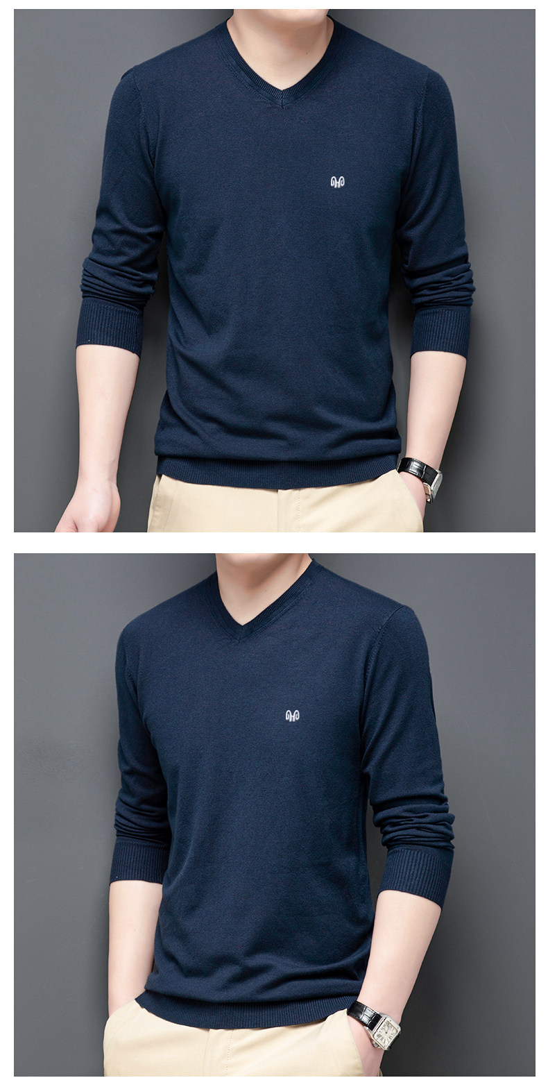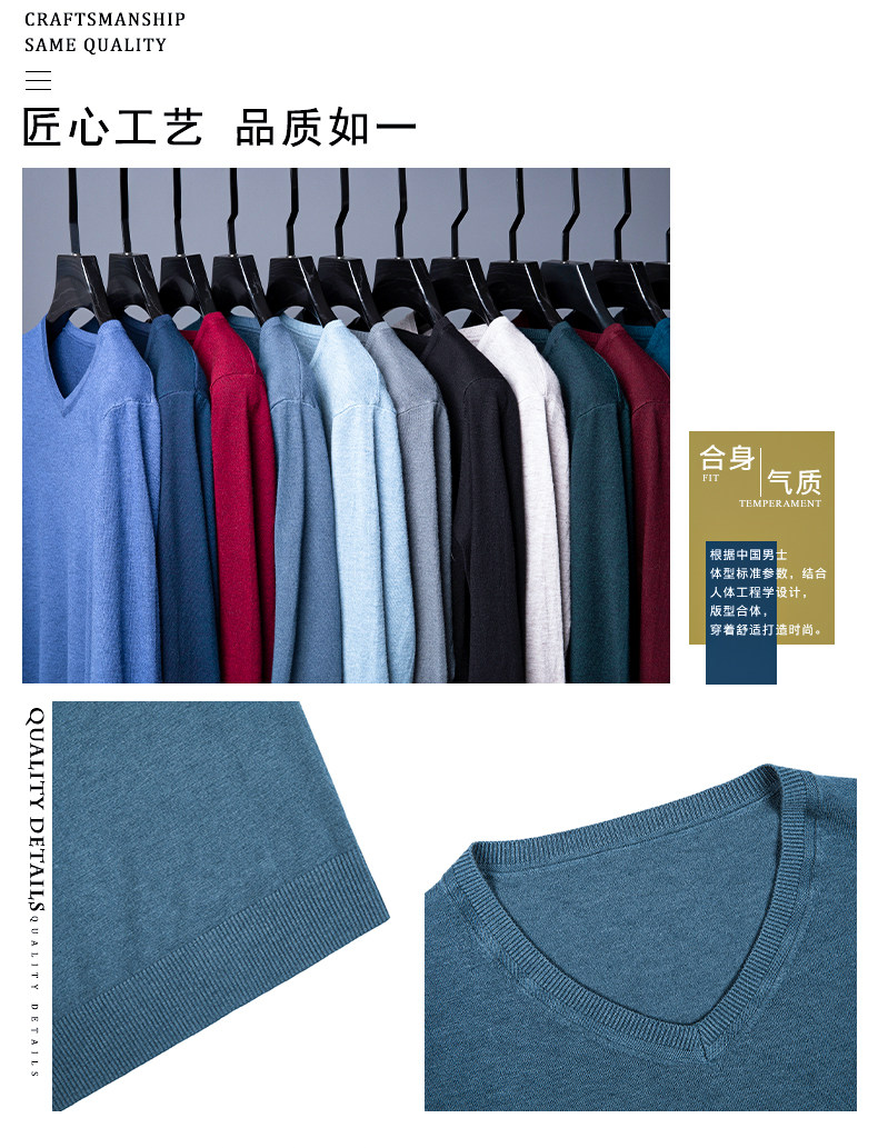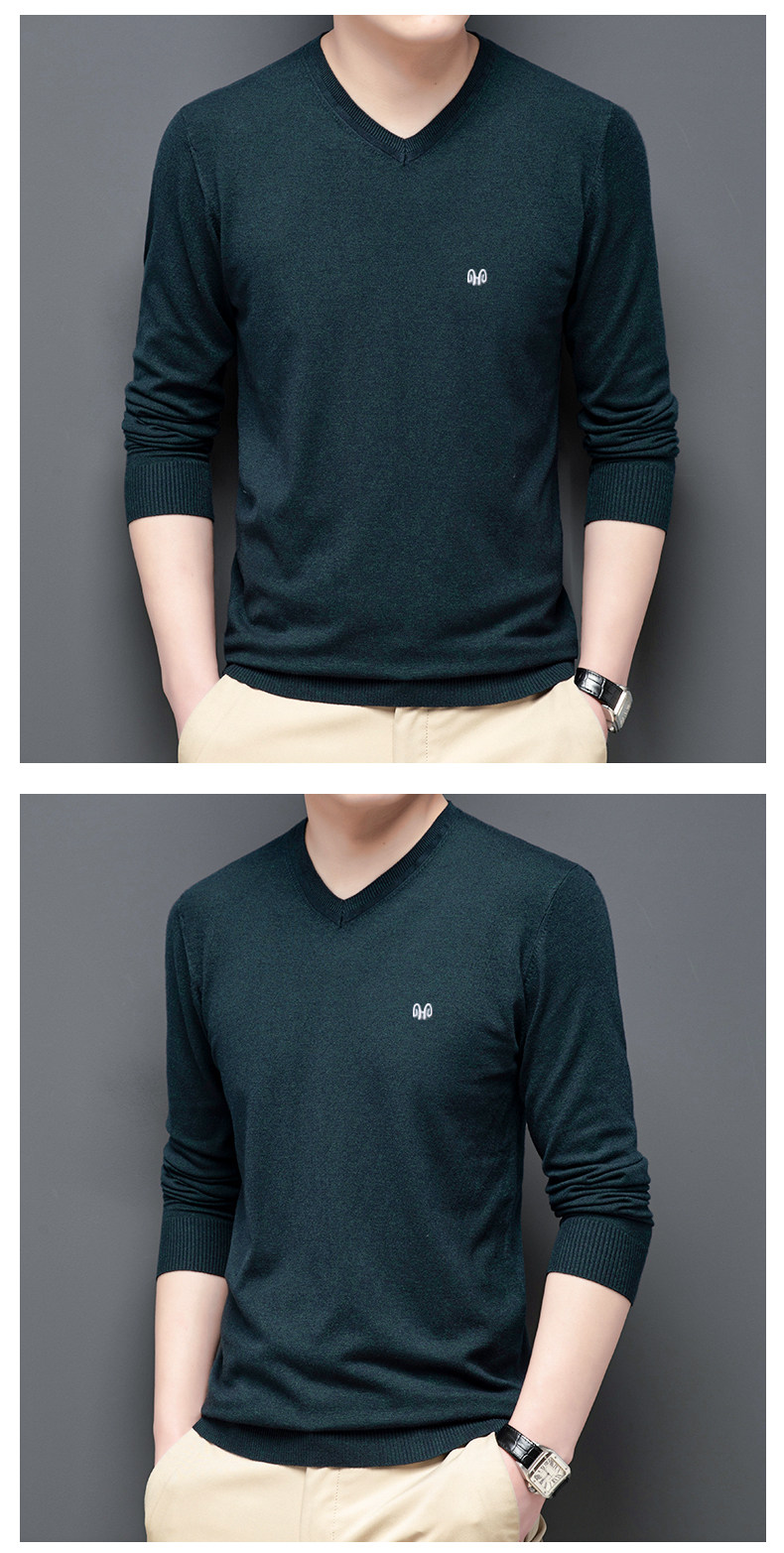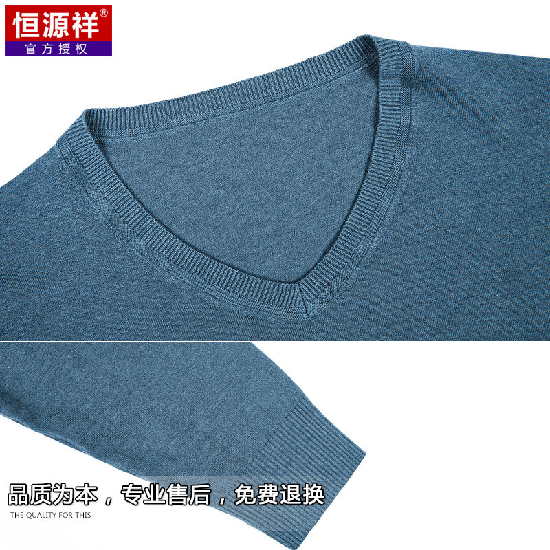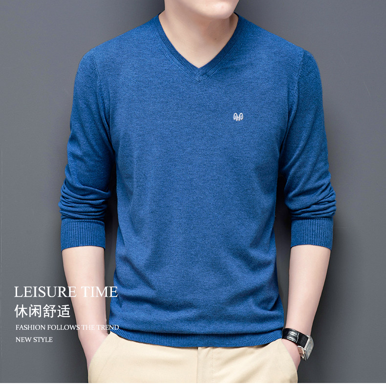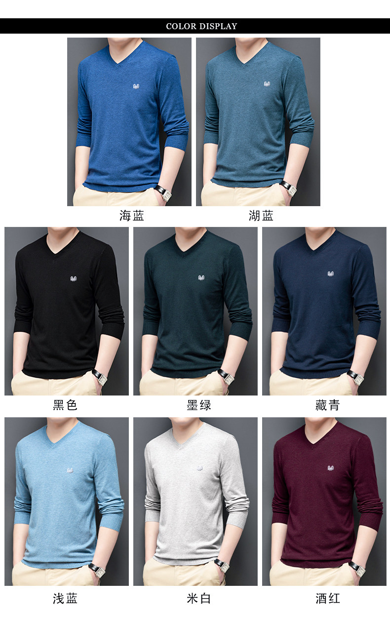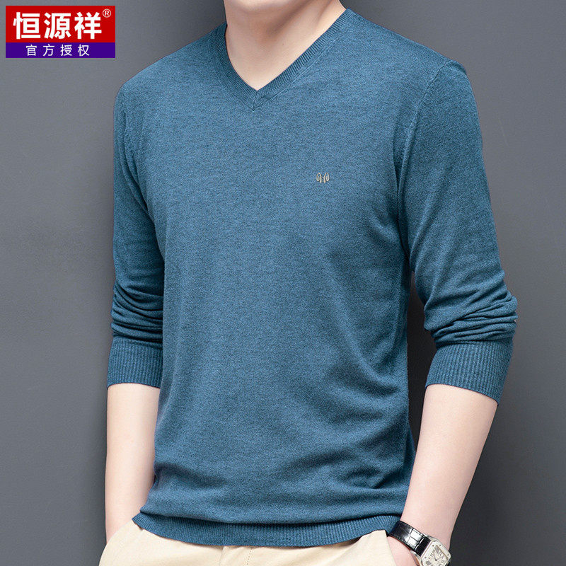 恒源祥 Цветной тонкий лонгслив, мужской трендовый осенний трикотажный свитер, V-образный вырез