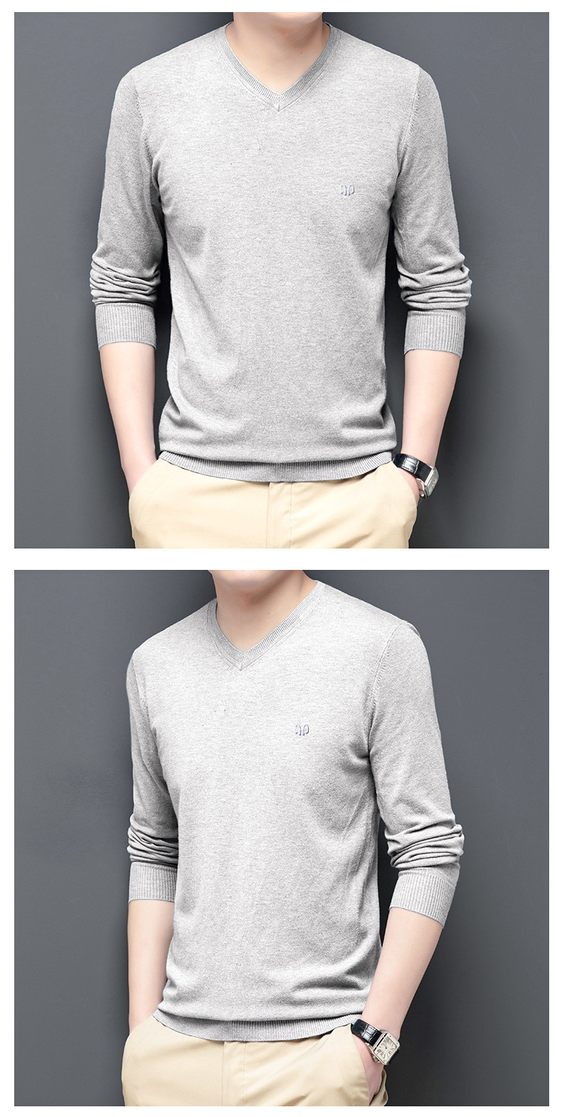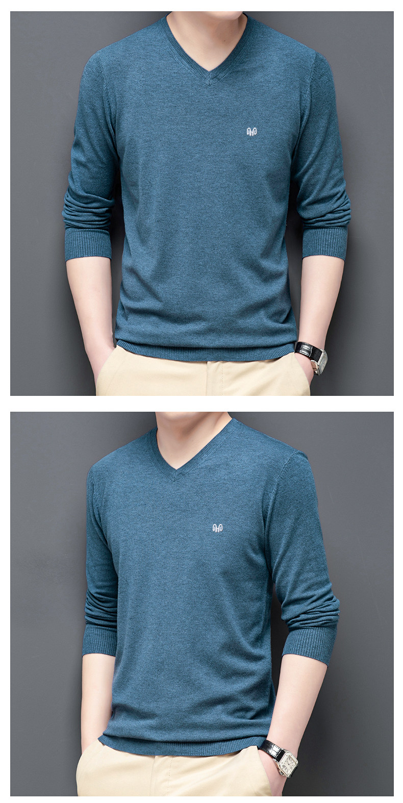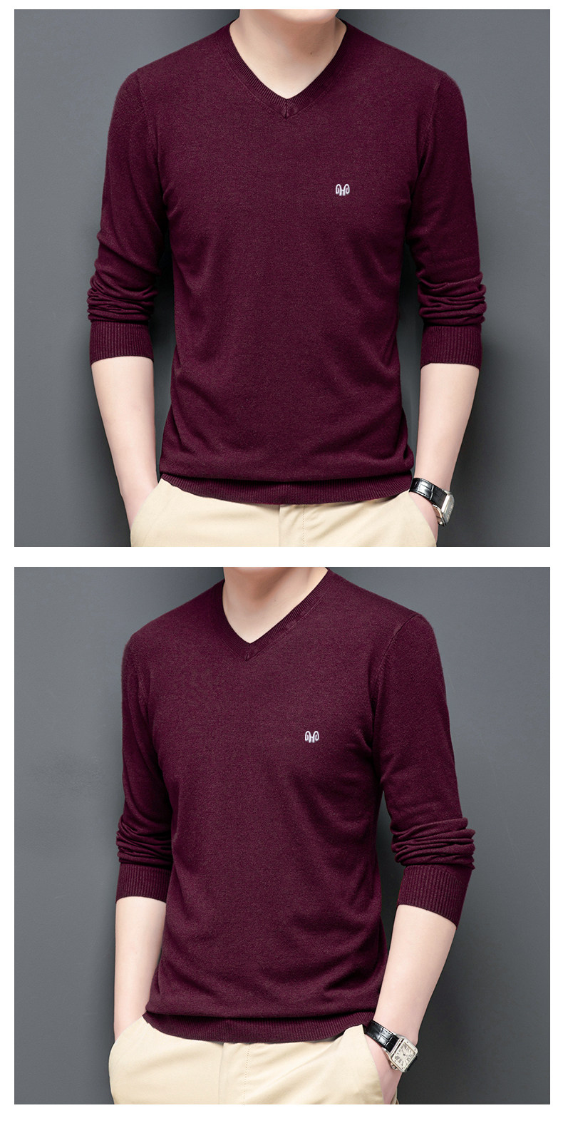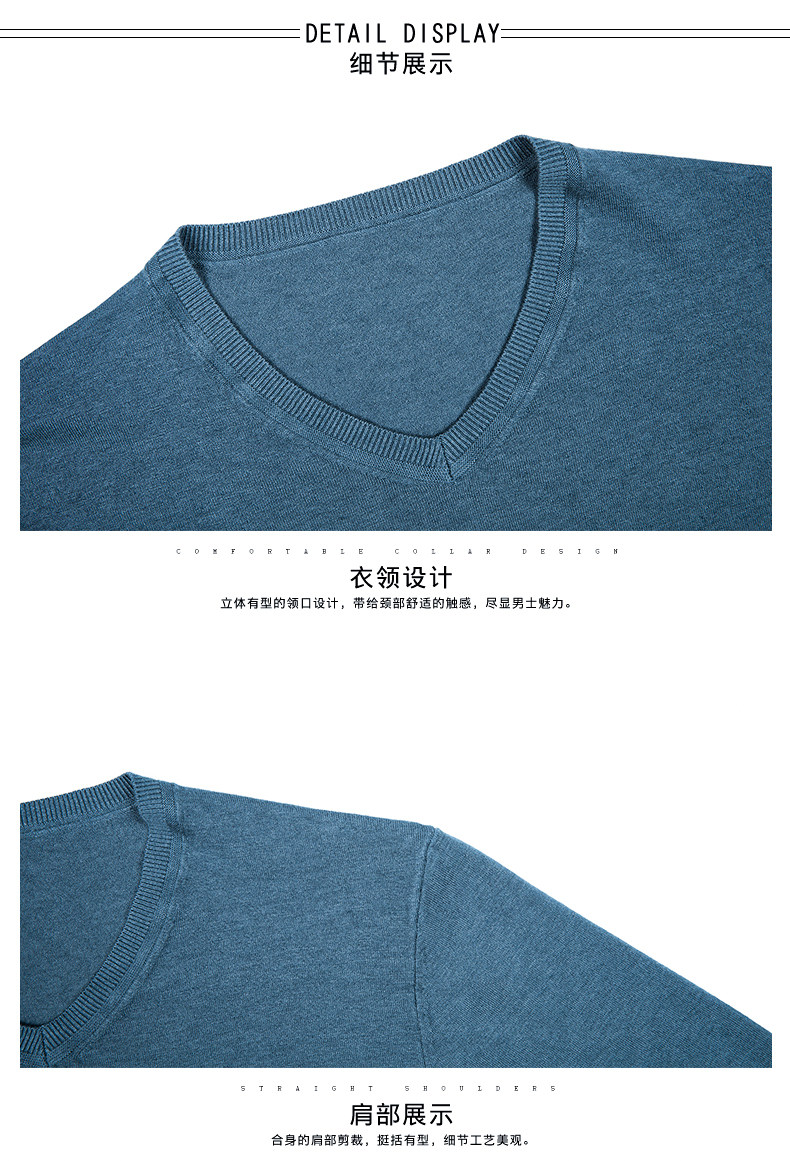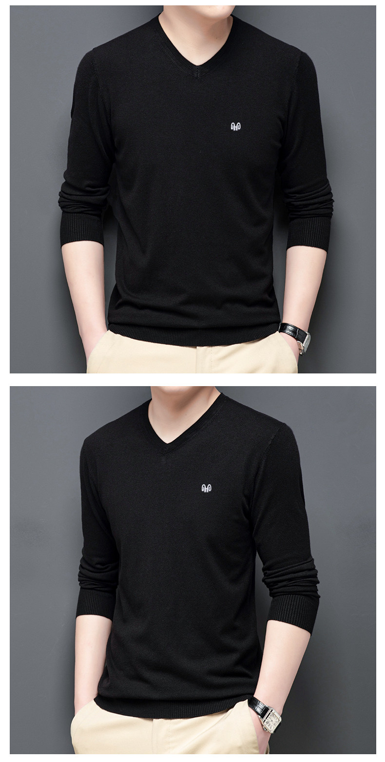 恒源祥 Цветной тонкий лонгслив, мужской трендовый осенний трикотажный свитер, V-образный вырез