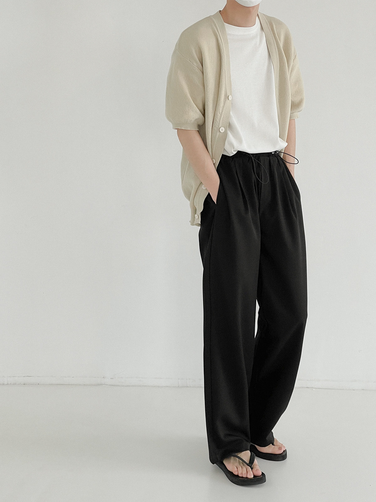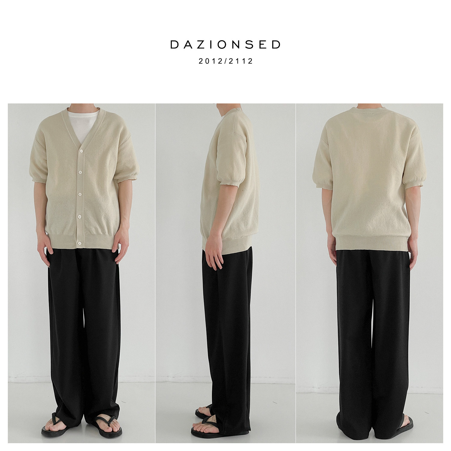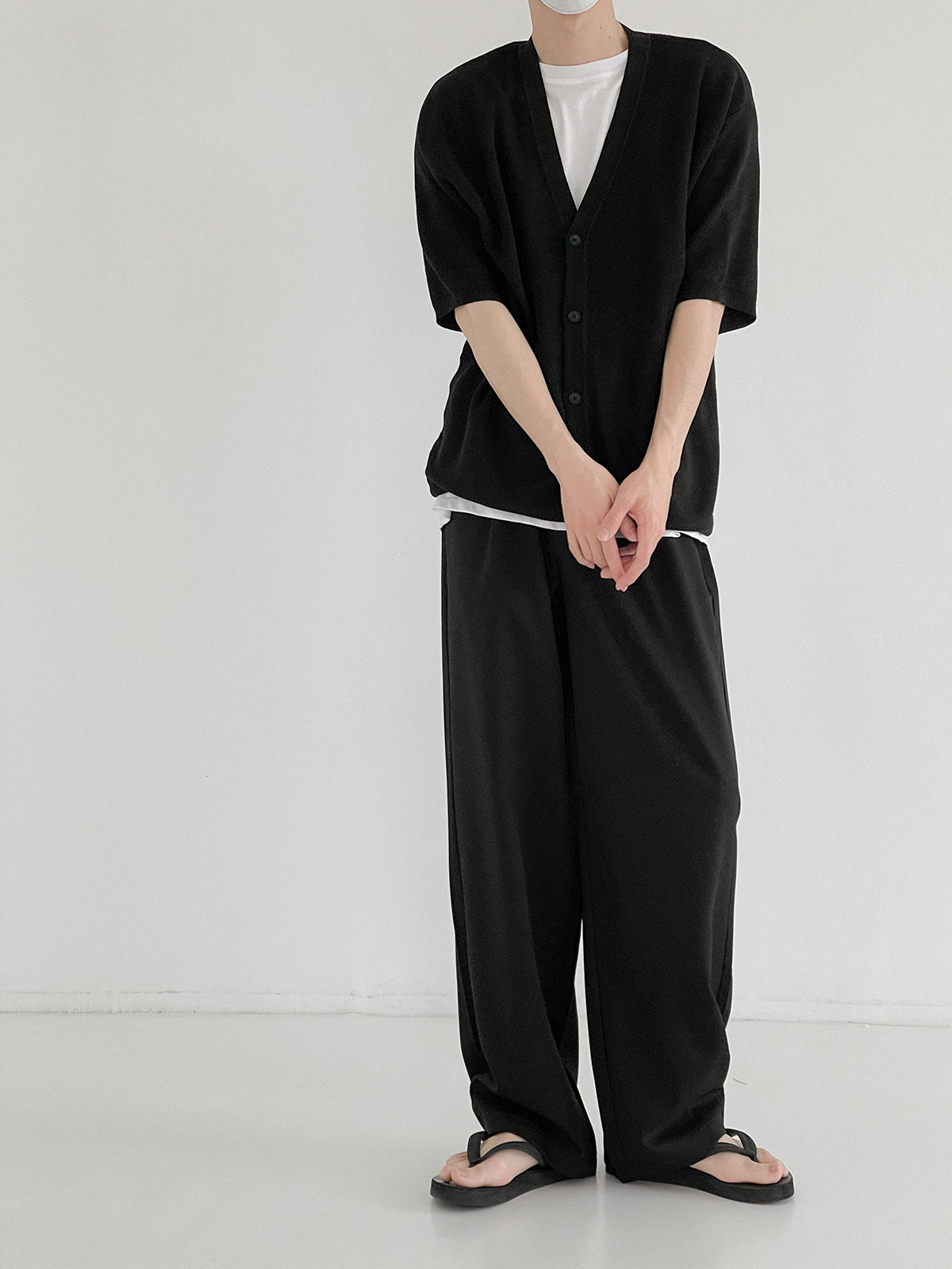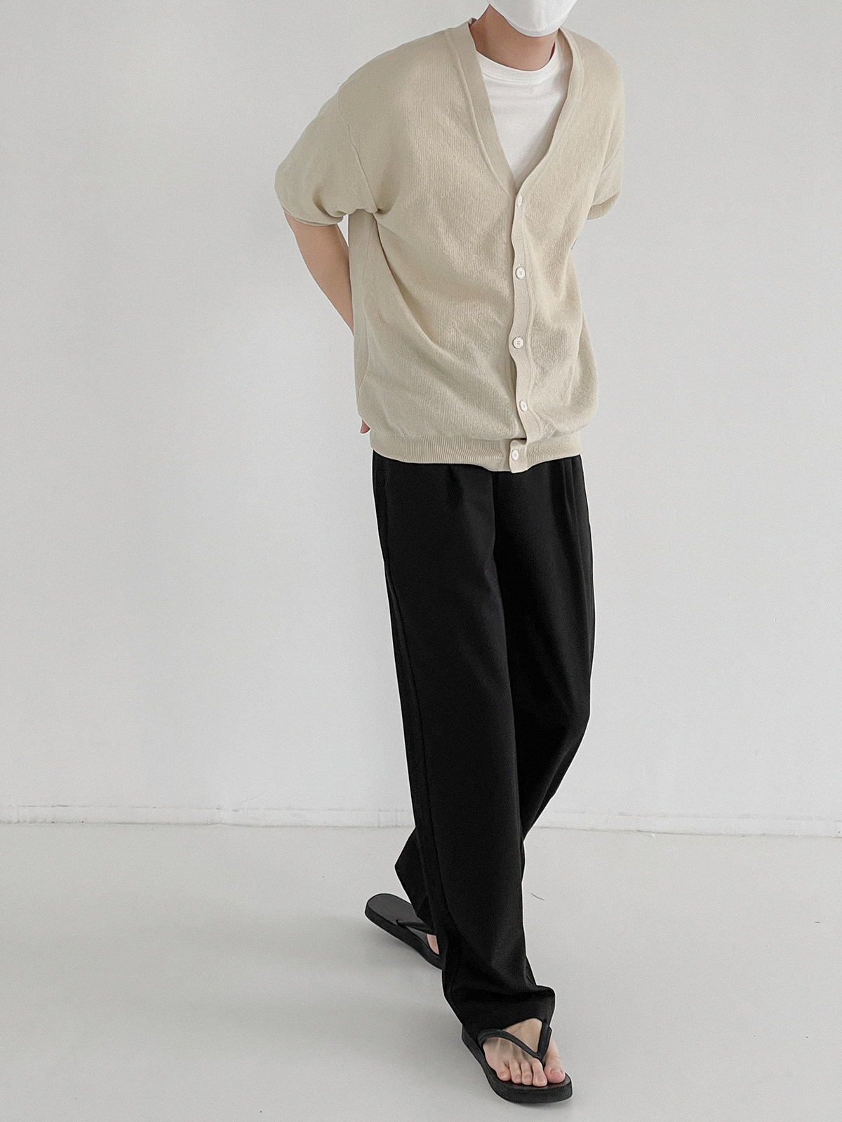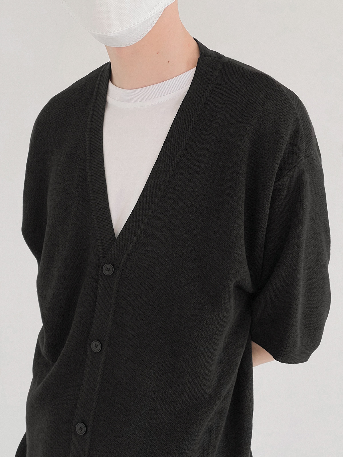 Мужской летний кардиган, тонкий трикотажный цветной трендовый свитер, короткий рукав, облегающий крой, V-образный вырез, в корейском стиле