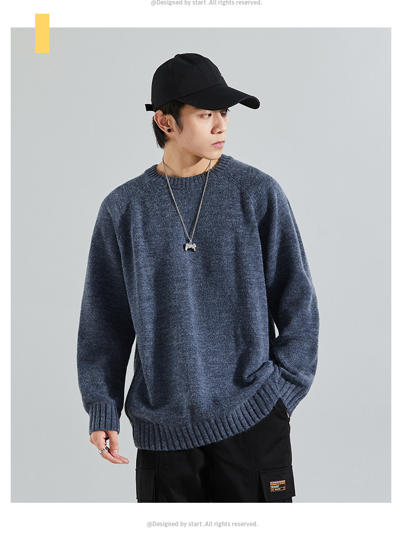 Японский осенний базовый шерстяной свитер с круглым воротником, оверсайз, большой размер, коллекция 2021