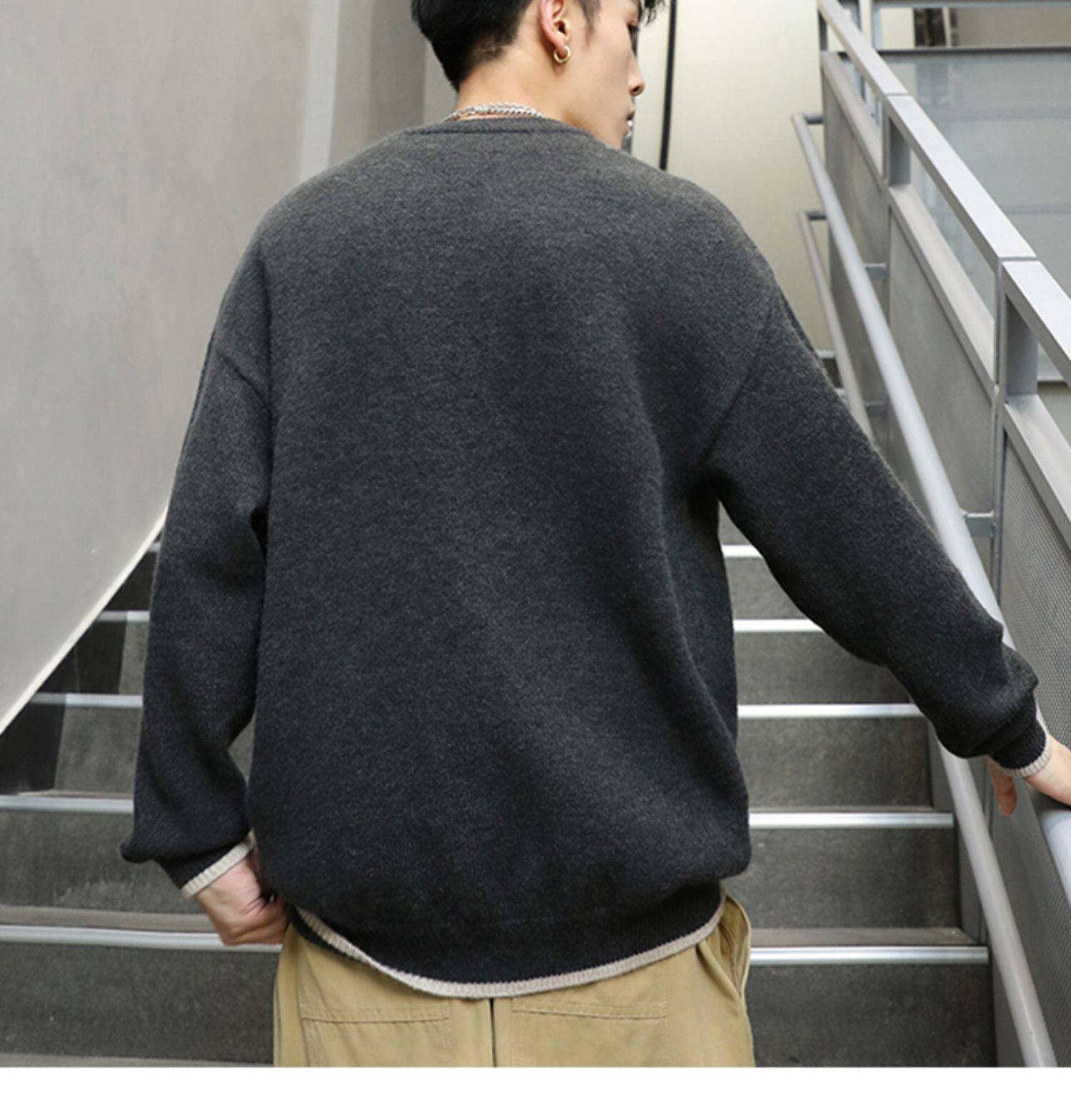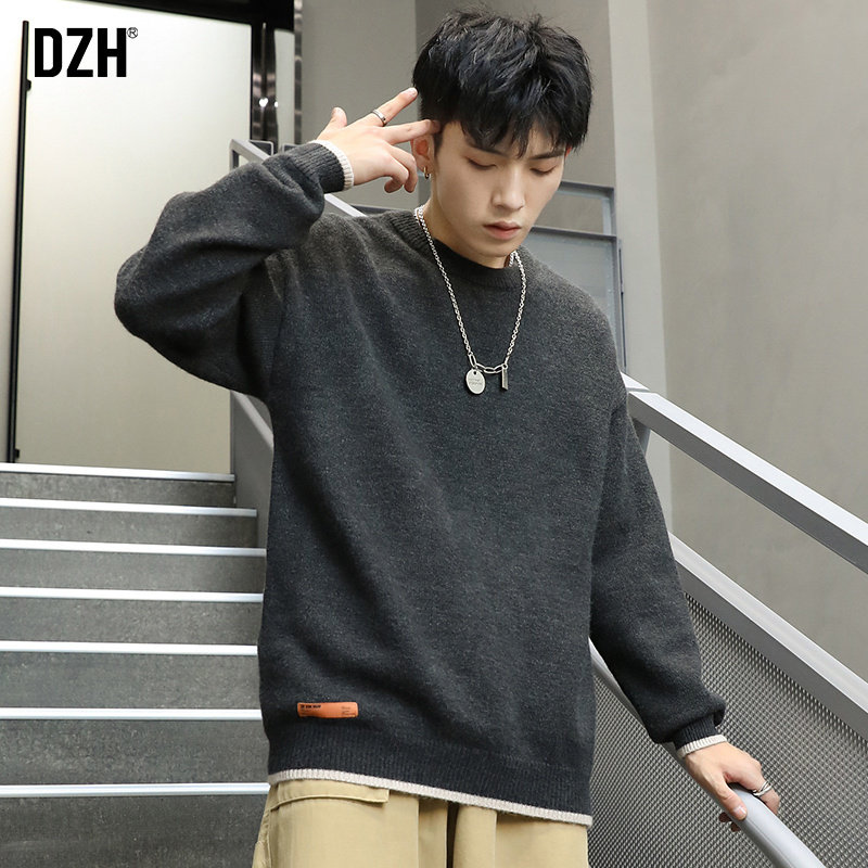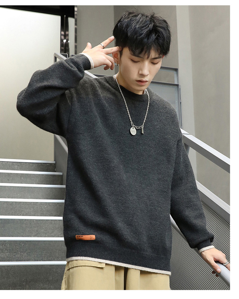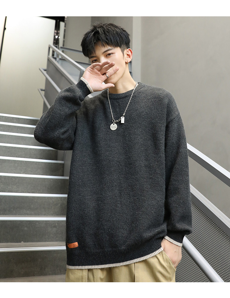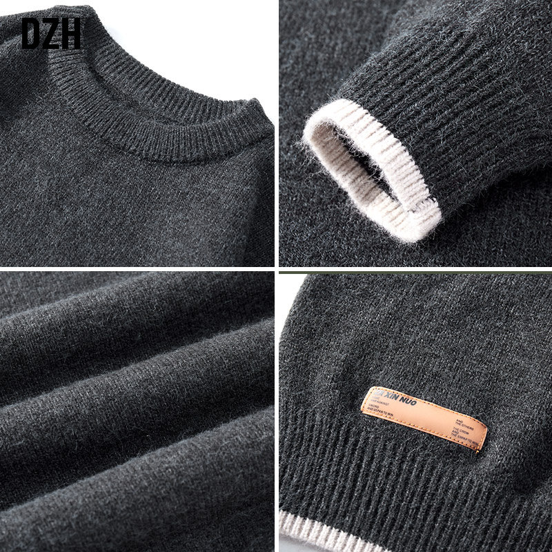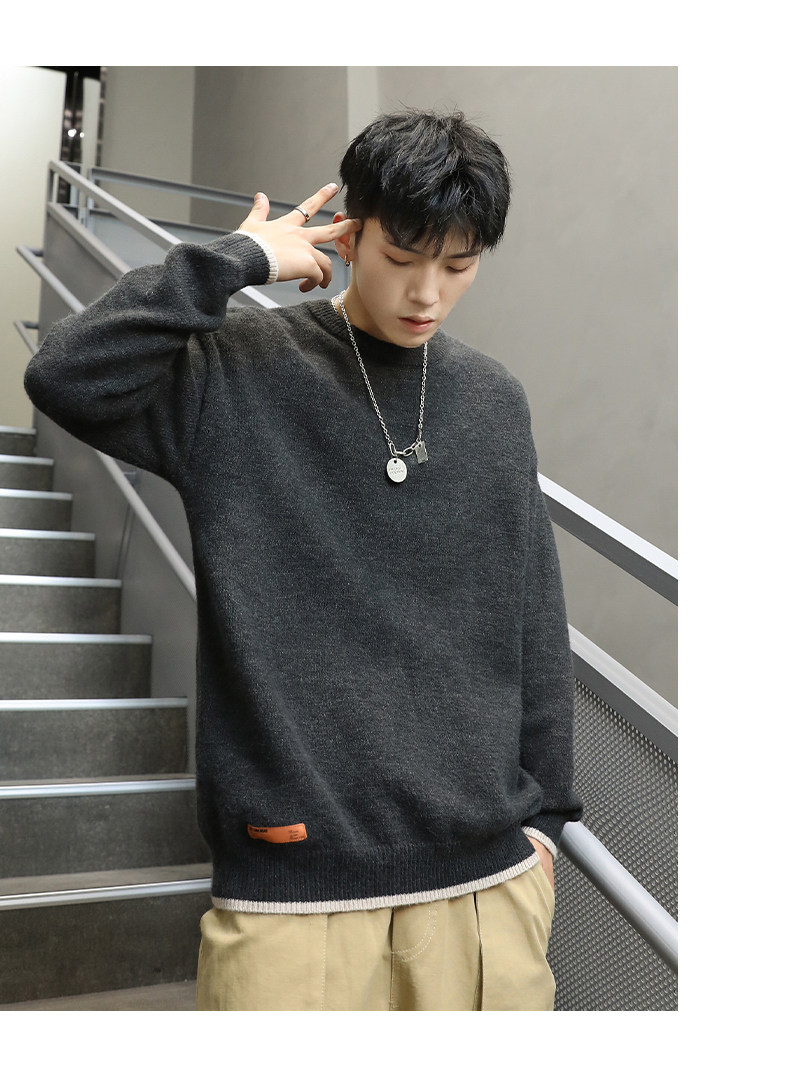 Зимний демисезонный трикотажный базовый свитер с круглым воротником