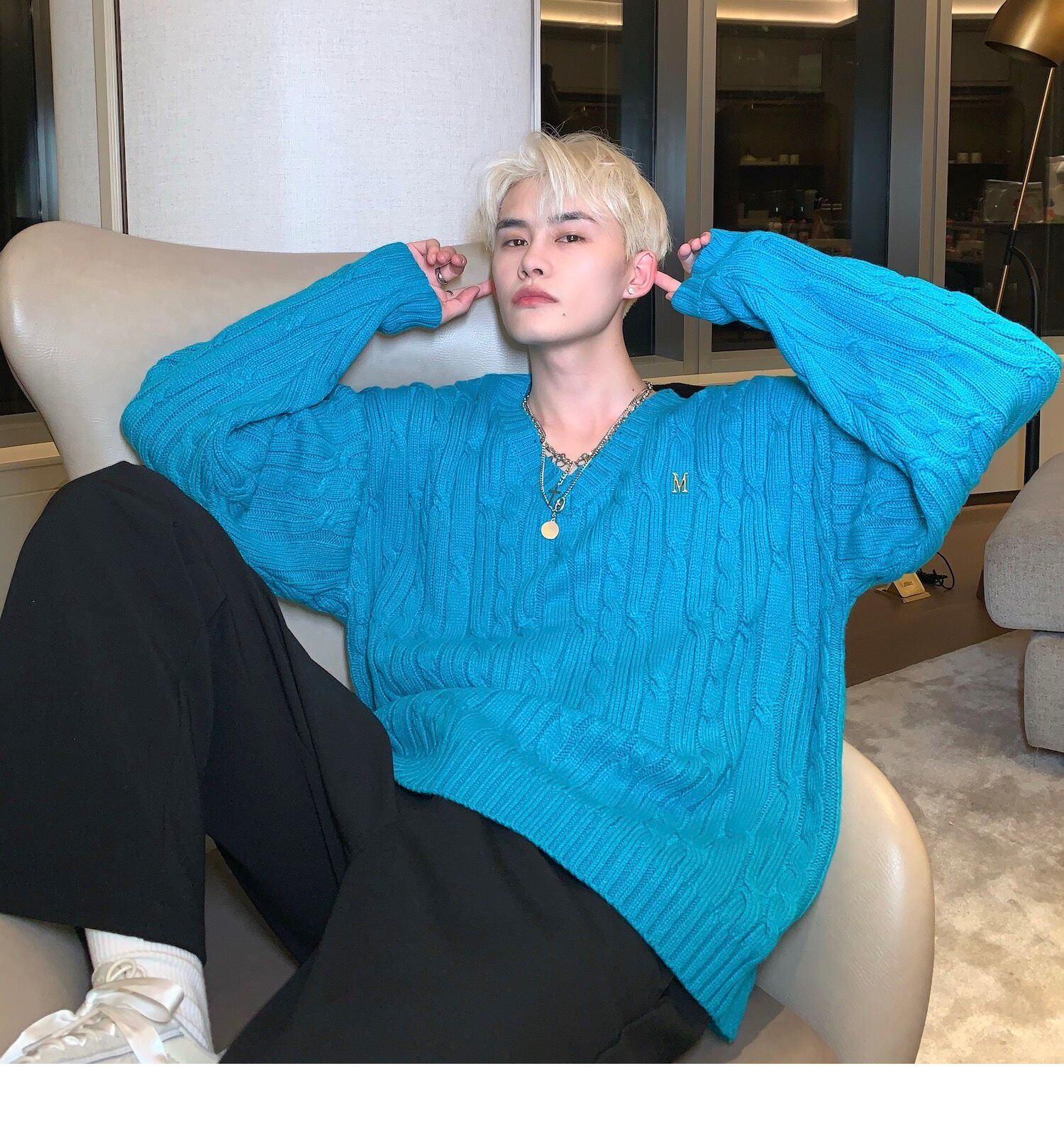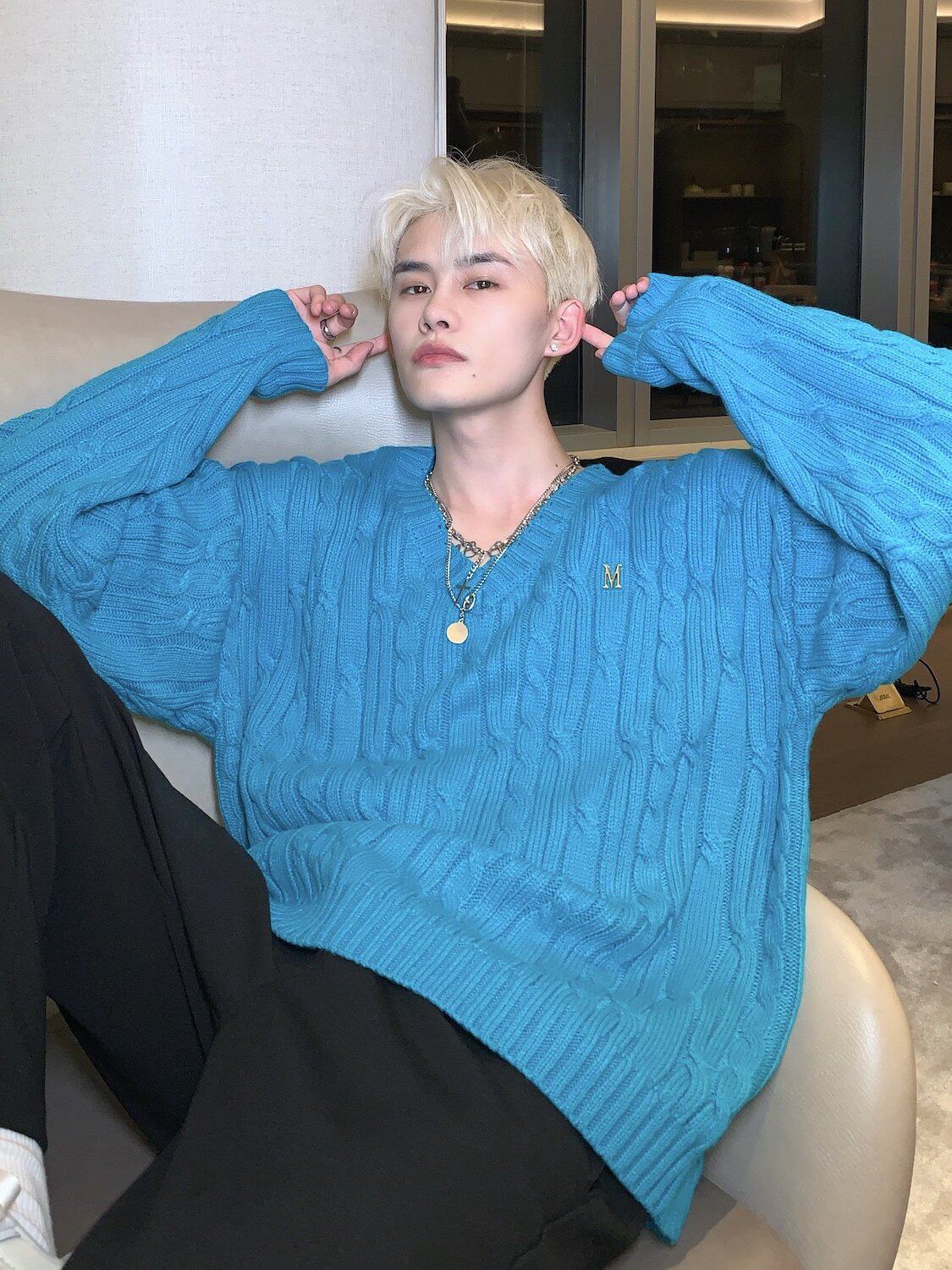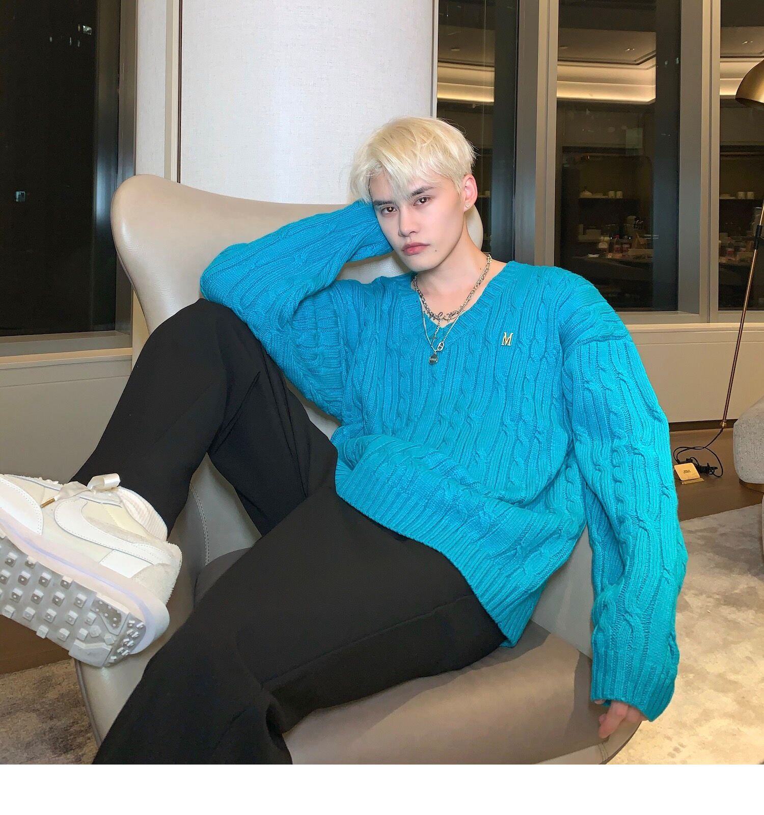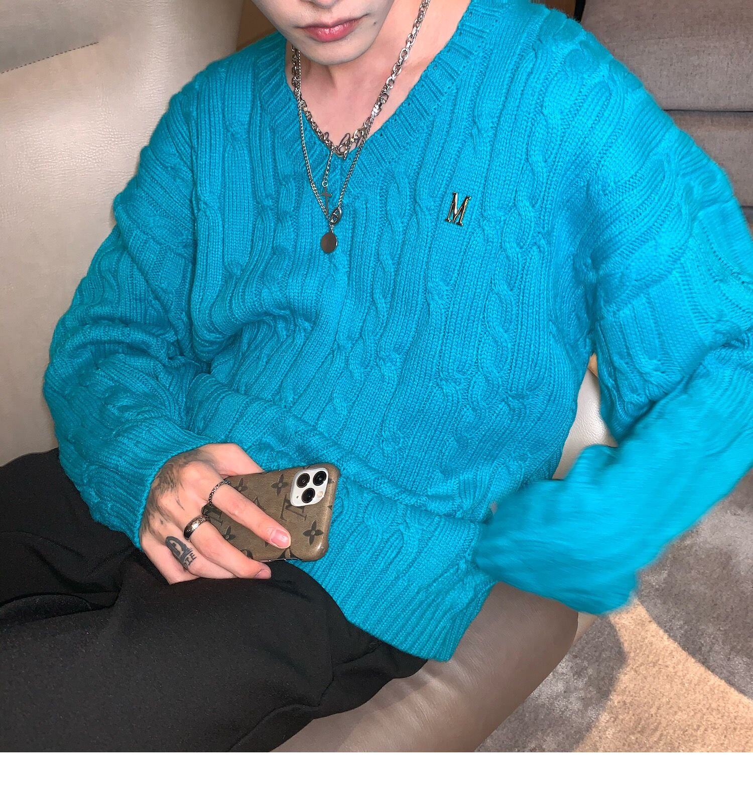 Cuibuju/21Aw Advanced Ice Blue V -neck Sweater мужской номинальный дизайн буквы
