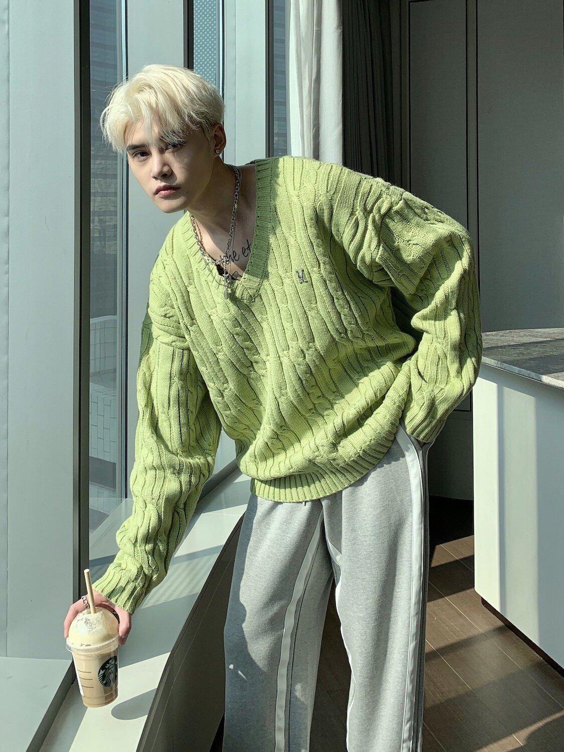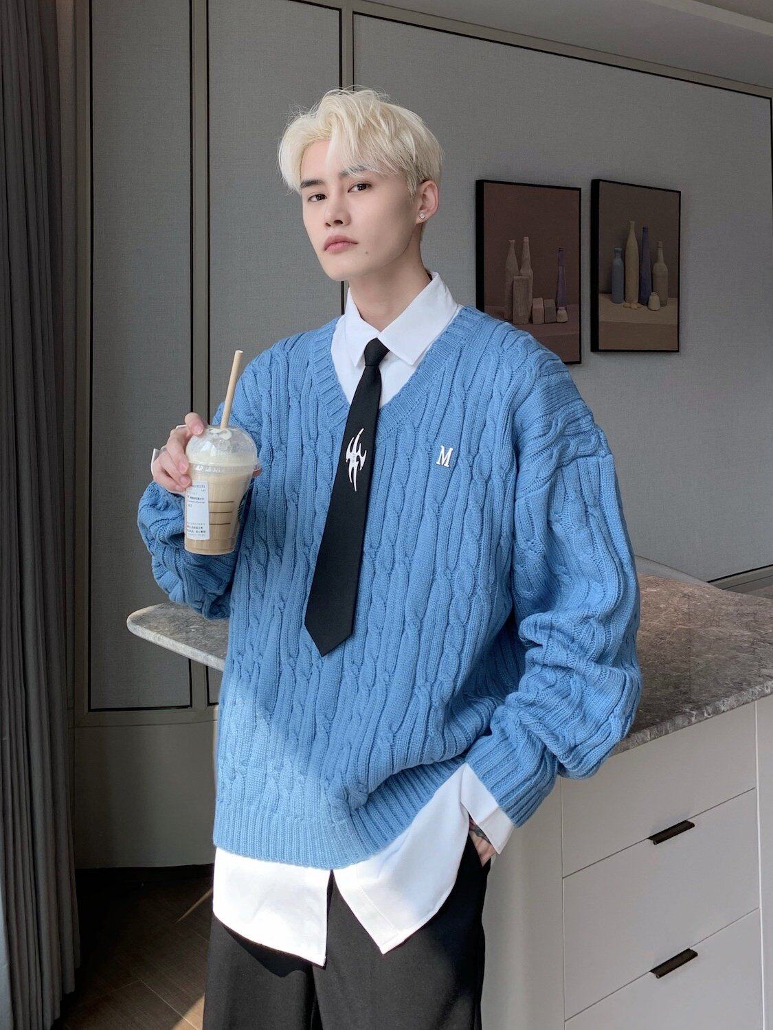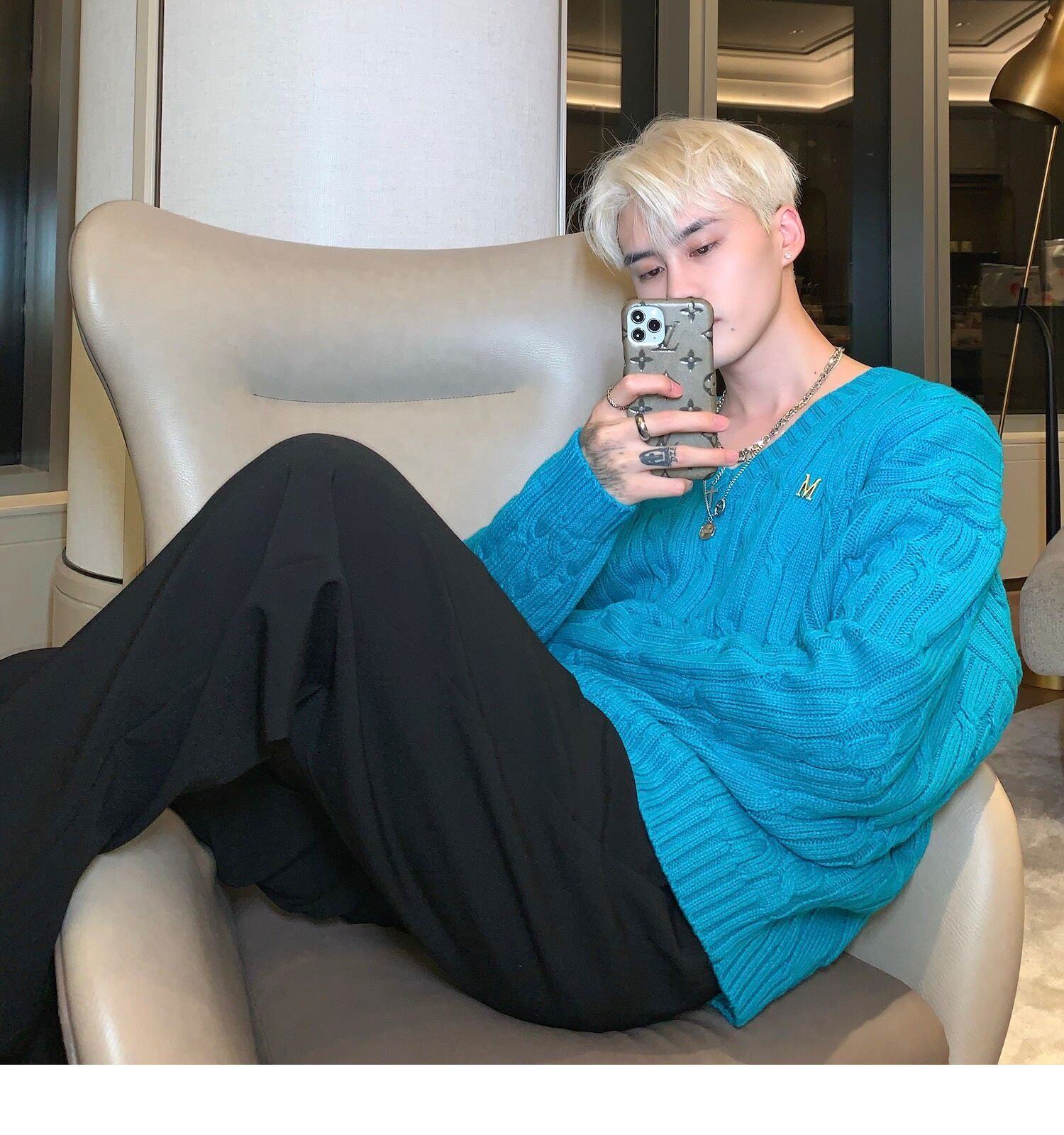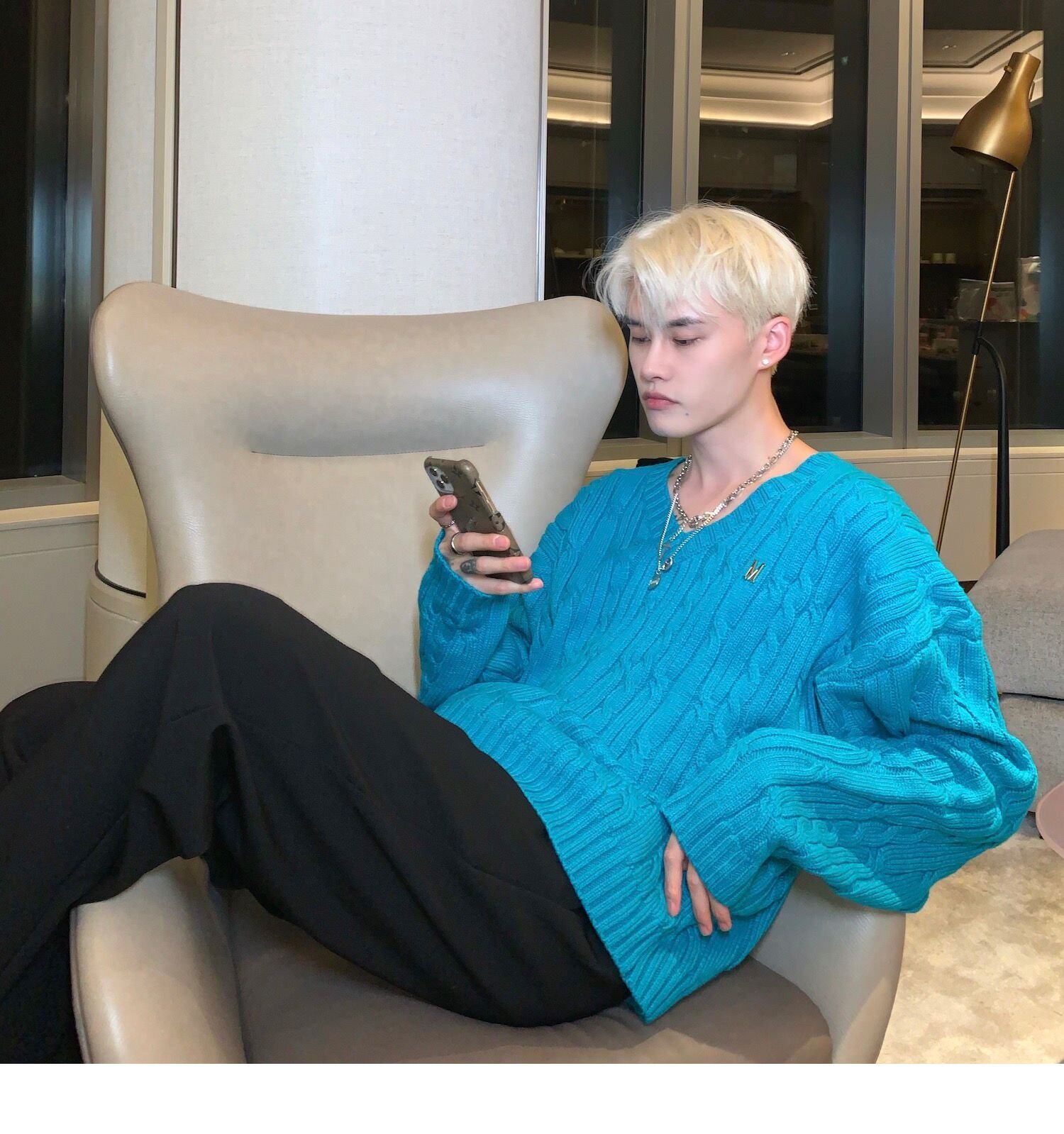 Cuibuju/21Aw Advanced Ice Blue V -neck Sweater мужской номинальный дизайн буквы