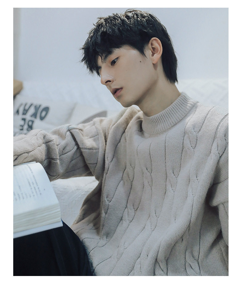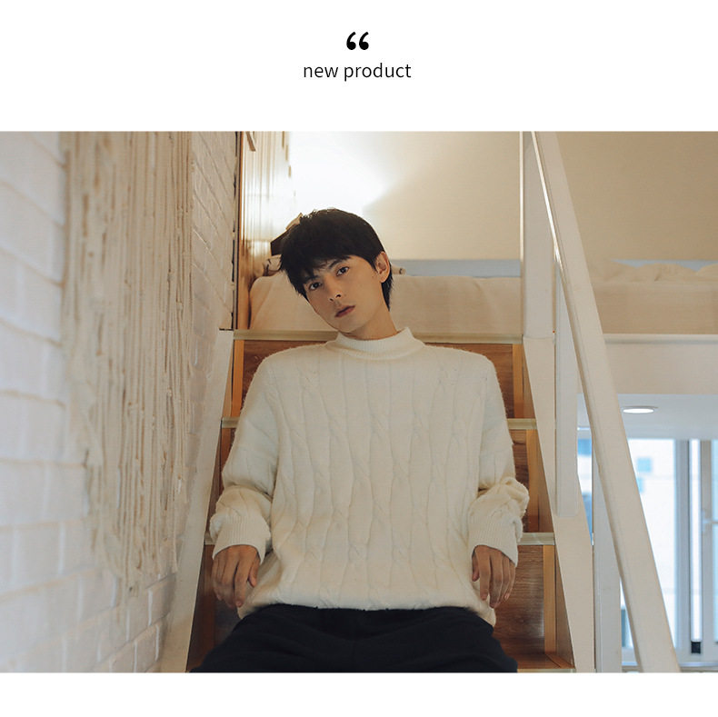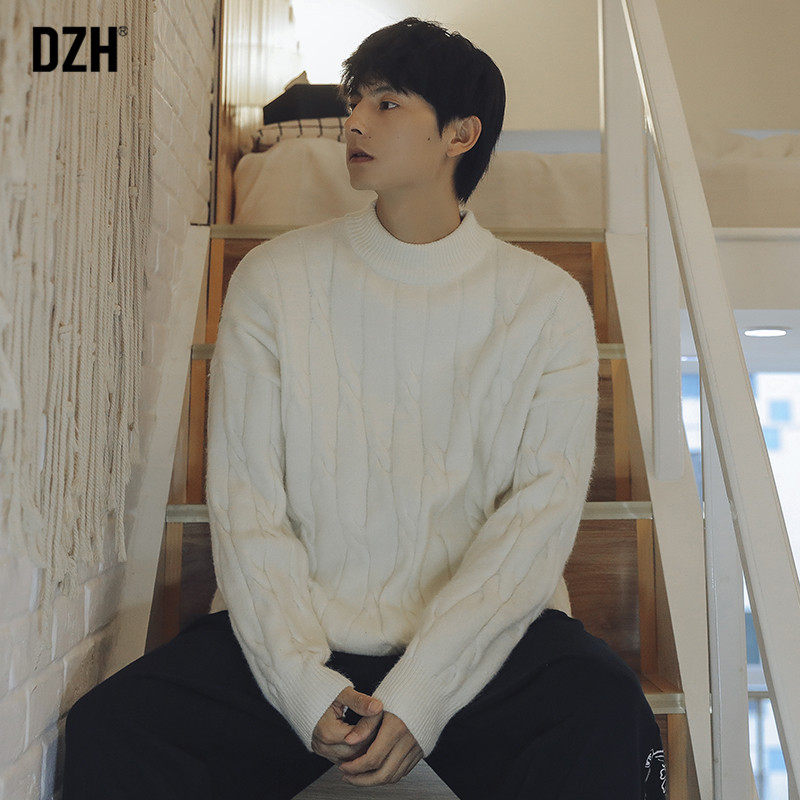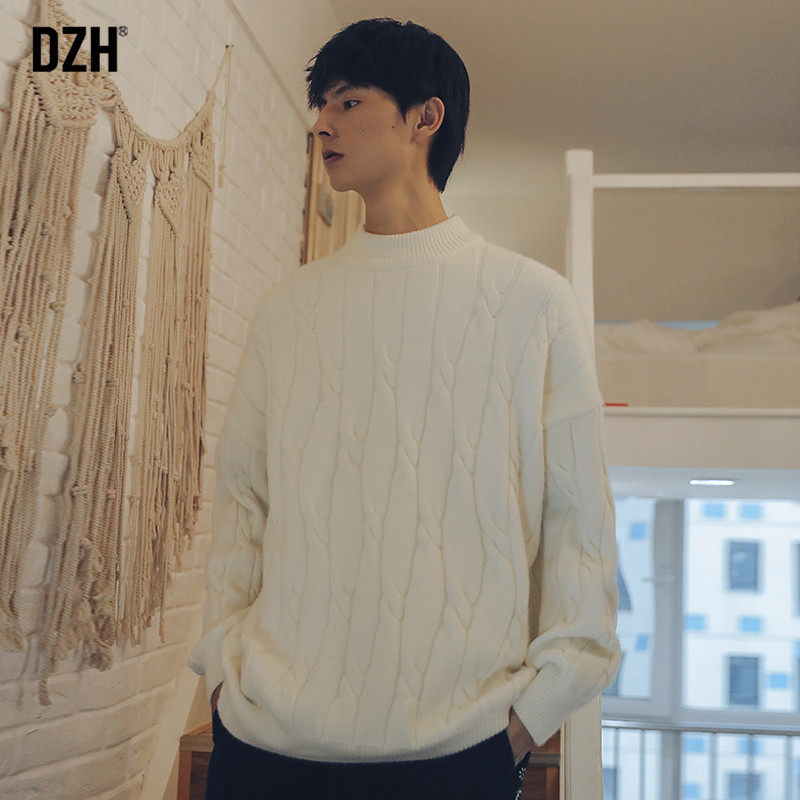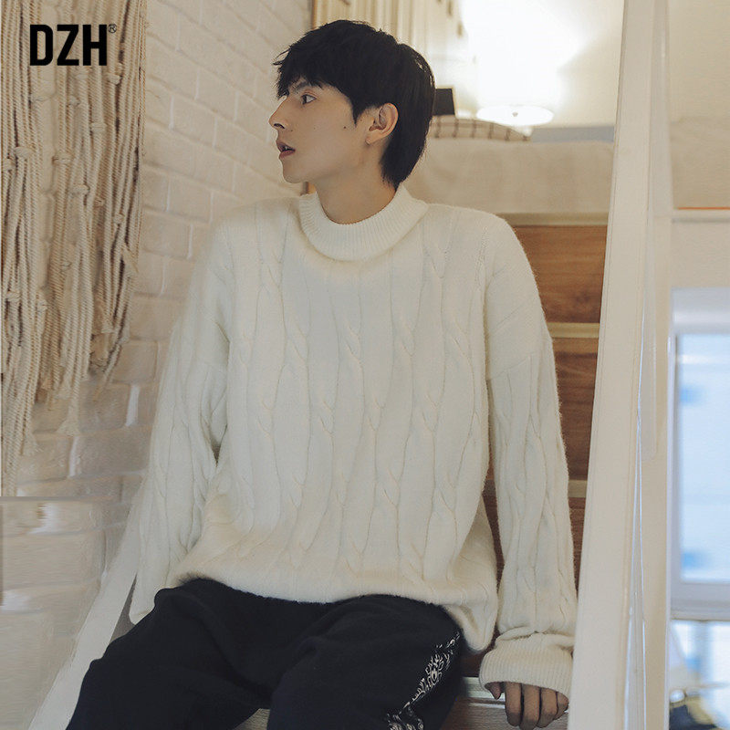 Tide, осенний свитер, белая трикотажная осенняя куртка, высокий воротник, свободный крой