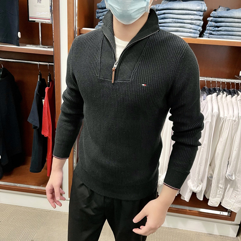 Tommy hilfiger, демисезонный кашемировый трикотажный свитер с молнией