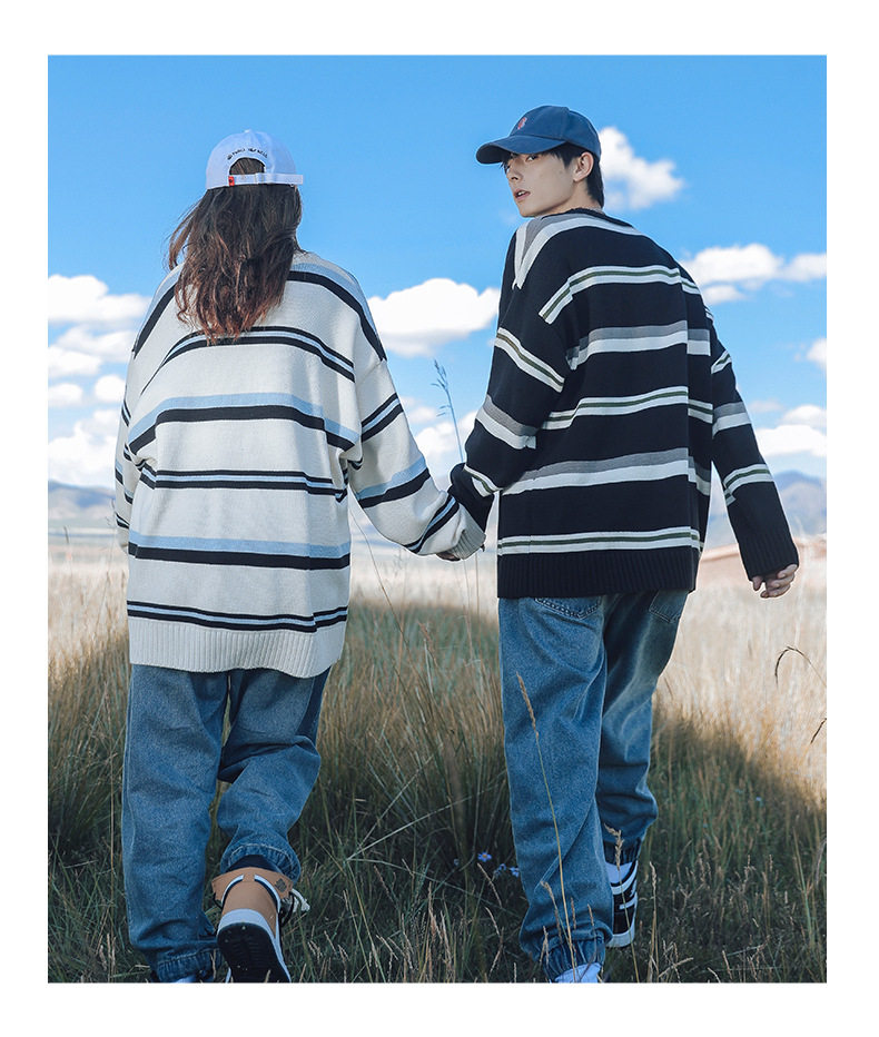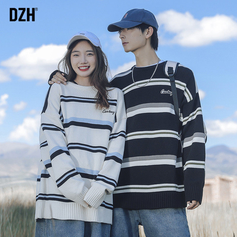 Демисезонный свитер с круглым воротником, зимняя трикотажная парная одежда, свободный крой, для влюбленных, коллекция 2021