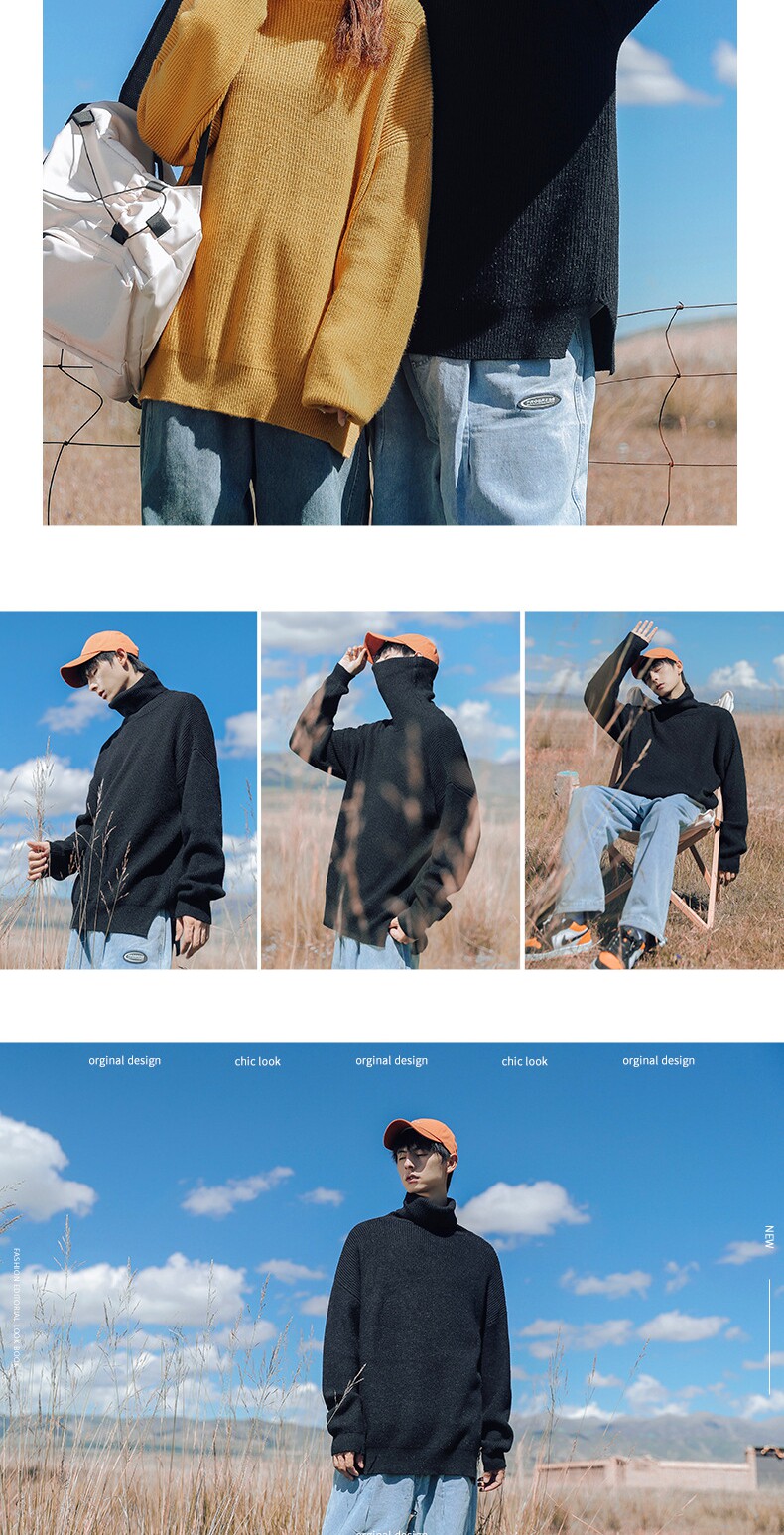 Tide, черный цветной свитер, трикотажная шерстяная утепленный лонгслив, оверсайз