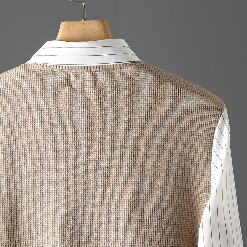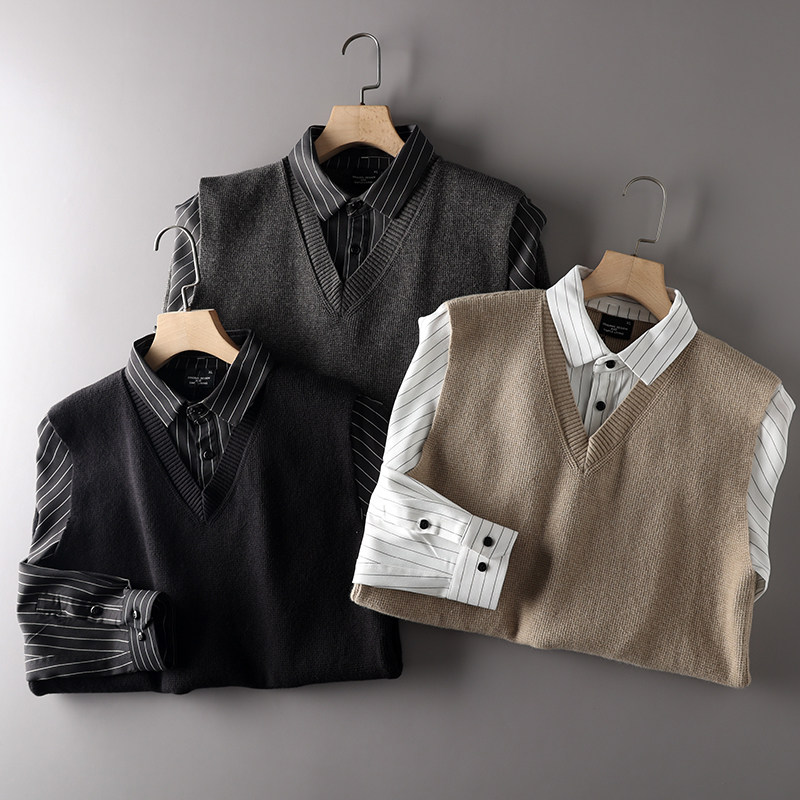 Элегантный демисезонный комплект в английском стиле, трикотажная рубашка, свитер, в британском стиле, имитация рубашки